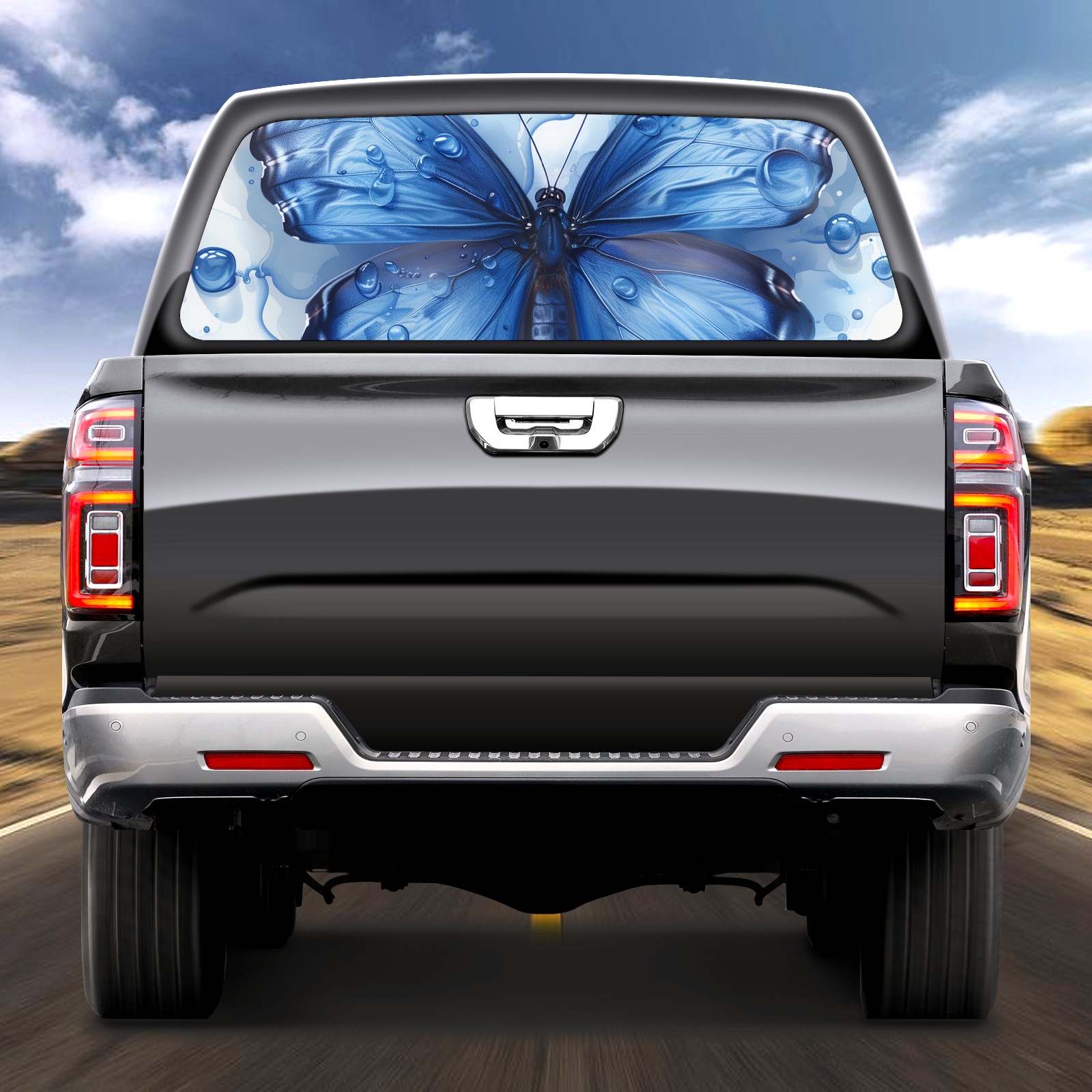 Truck Rear Window Graphics Decals Pickup Trucks Back Window Sticker Full Window Film Decal One Way Visual Waterproof Car Rear Tint Blue Butterfly
