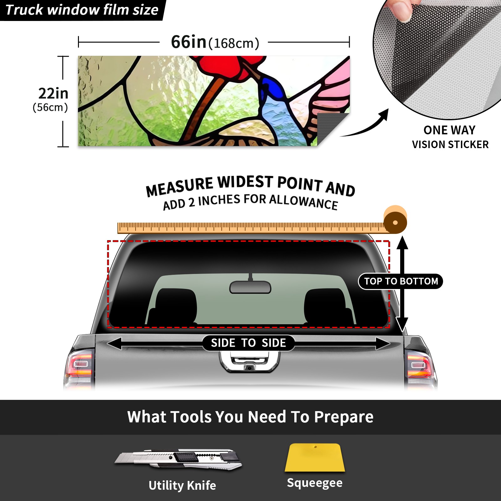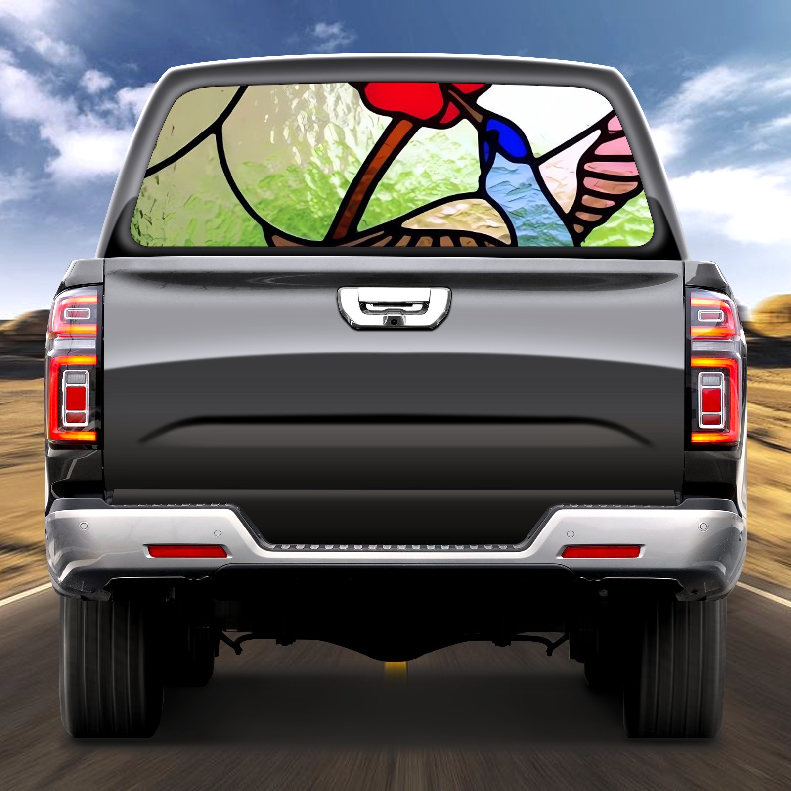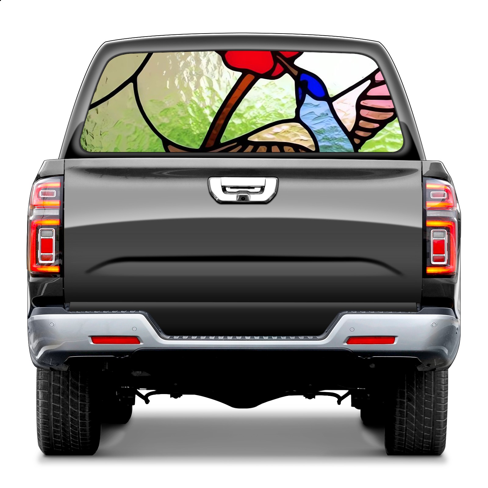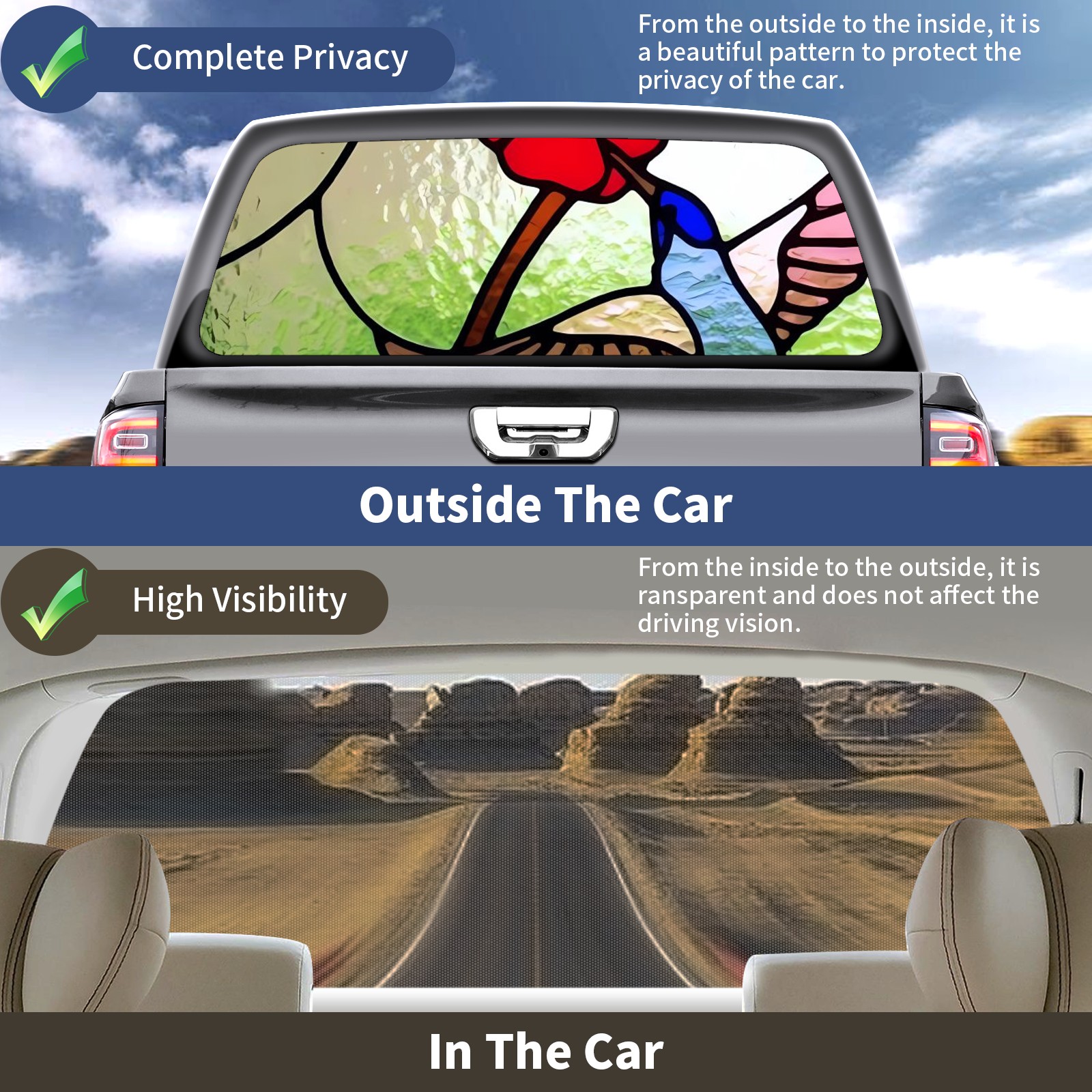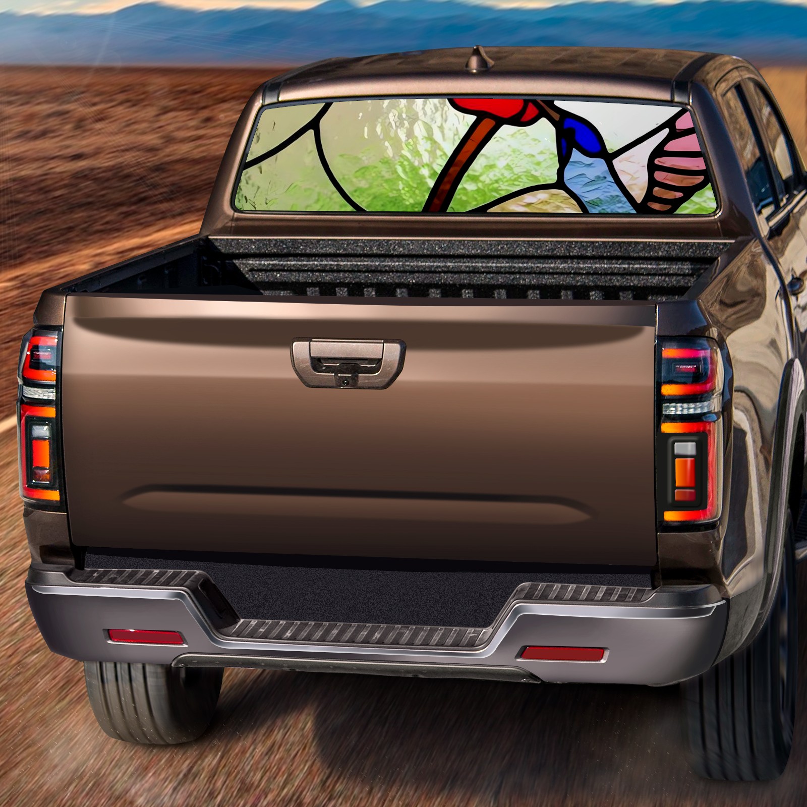 Truck Rear Window Graphics Decals Pickup Trucks Back Window Sticker Full Window Film Decal One Way Visual Waterproof Car Rear Tint Hummingbirds Window Stained Glass (1)