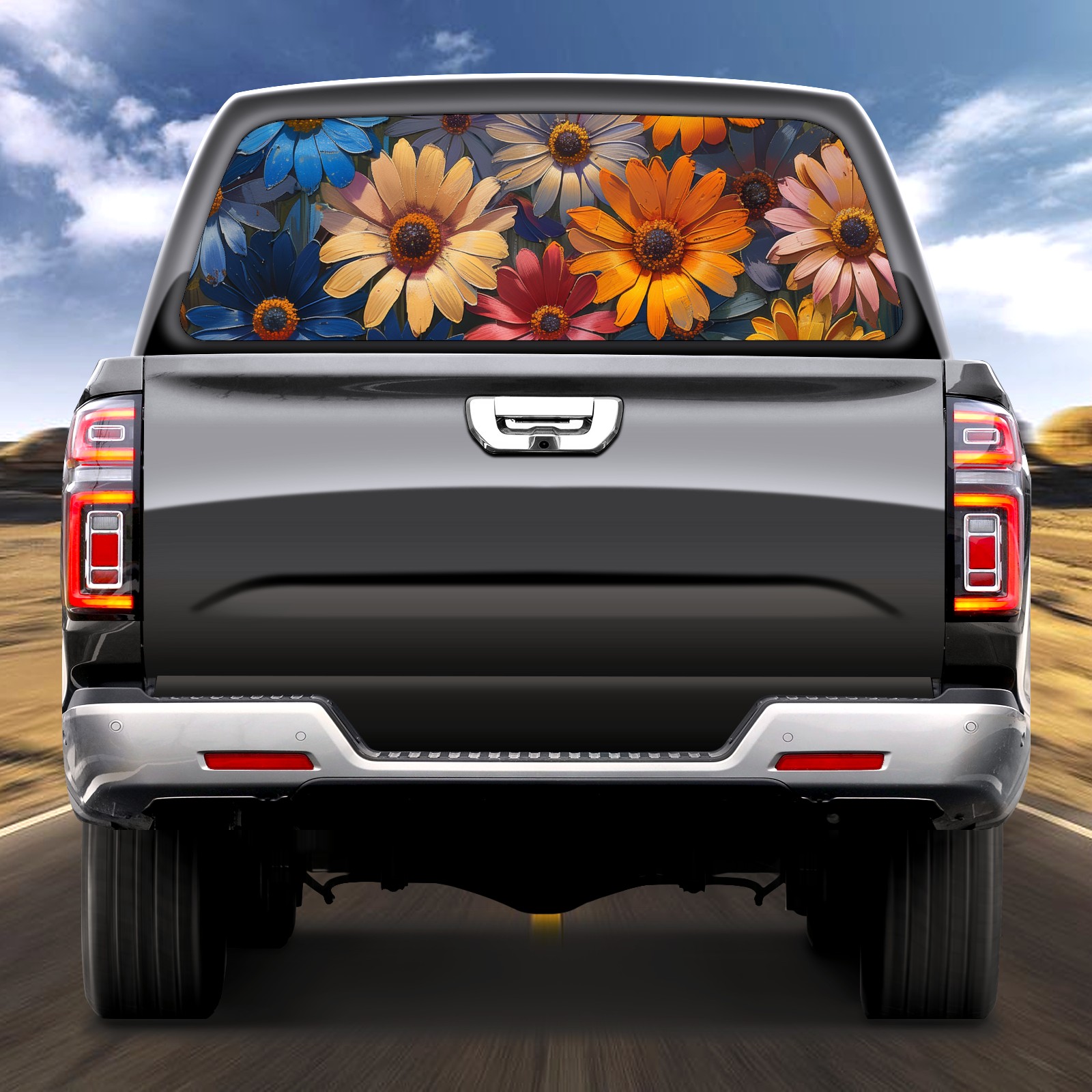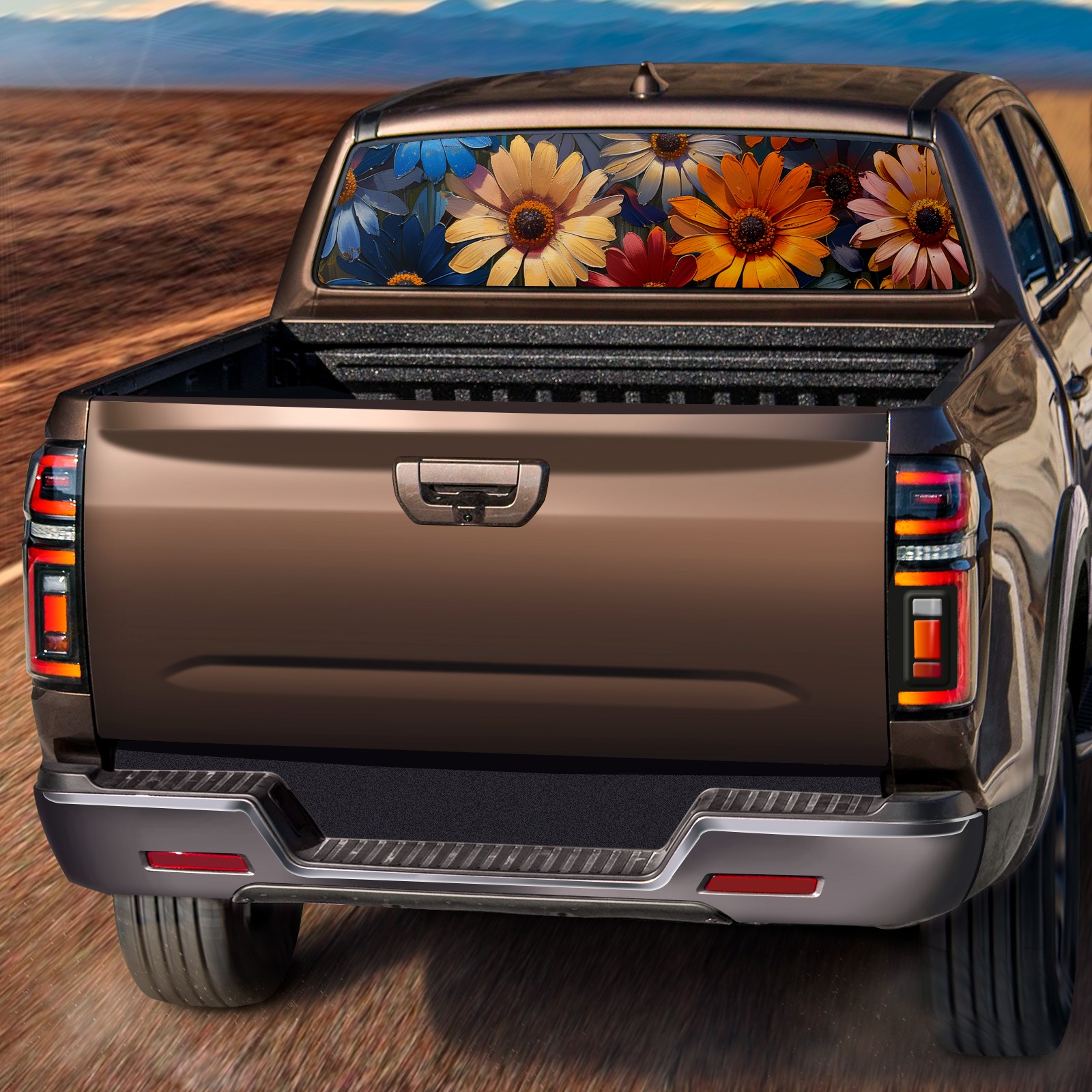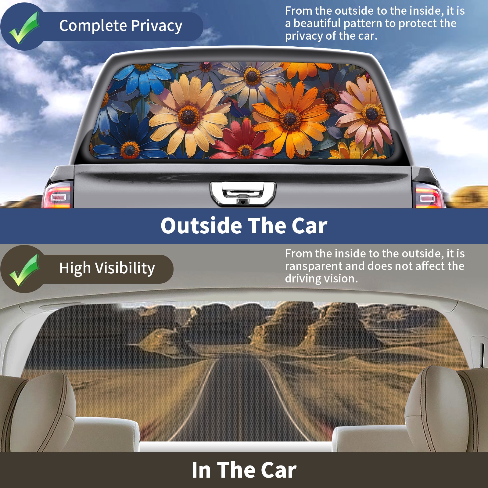 Truck Rear Window Graphics Decals Pickup Trucks Back Window Sticker Full Window Film Decal One Way Visual Waterproof Car Rear Tint Garden Colorful Daisies