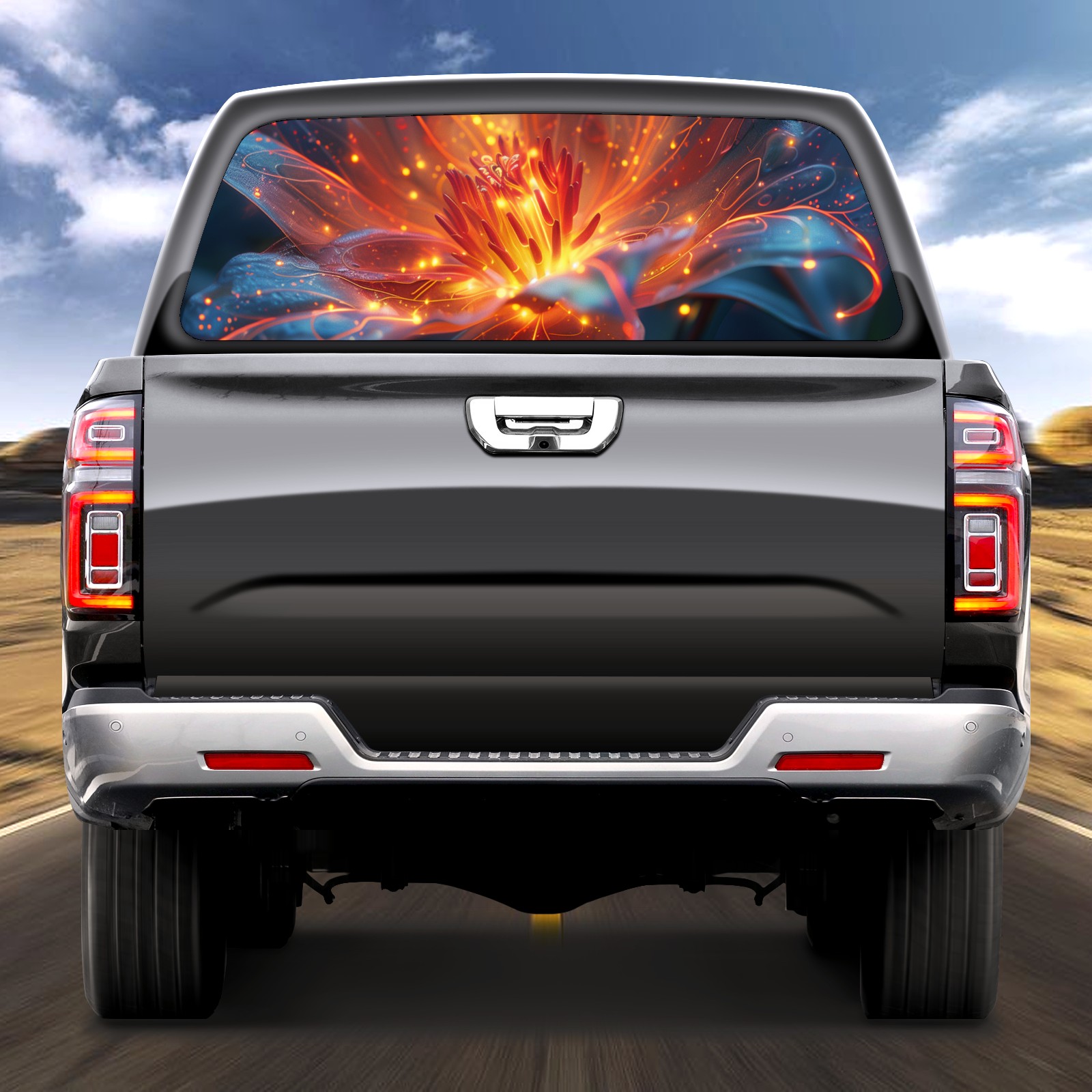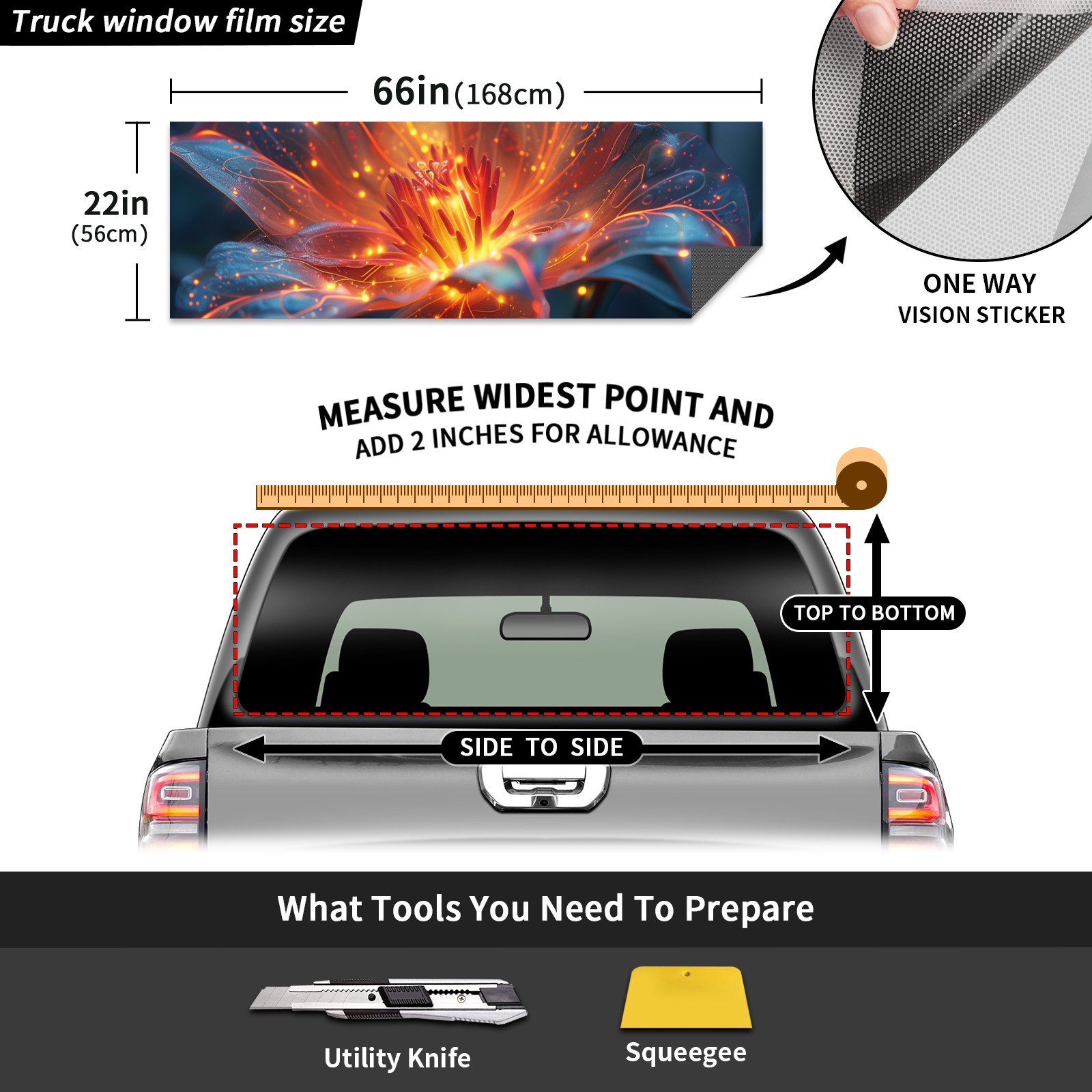Truck Rear Window Graphics Decals Pickup Trucks Back Window Sticker Full Window Film Decal One Way Visual Waterproof Car Rear Tint Flower