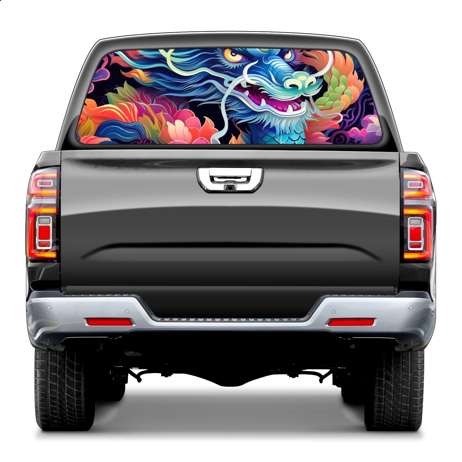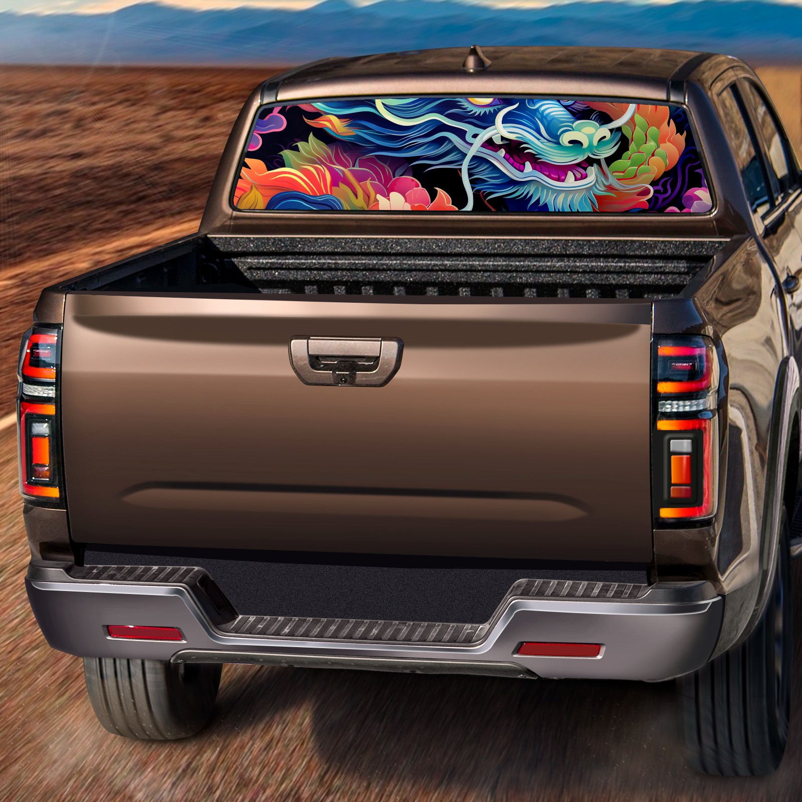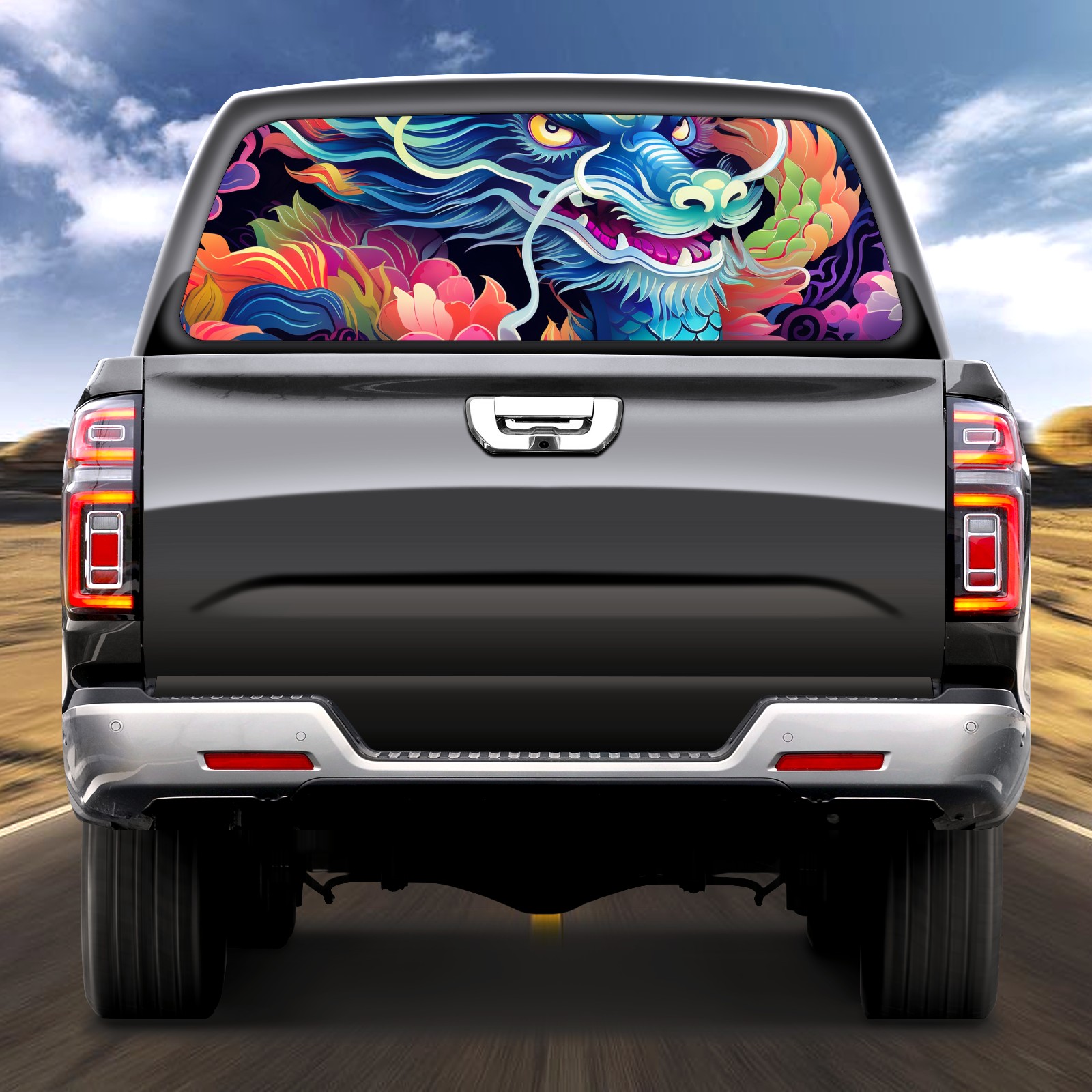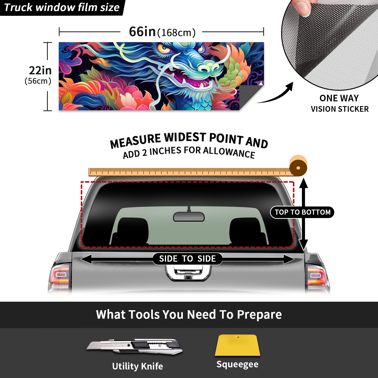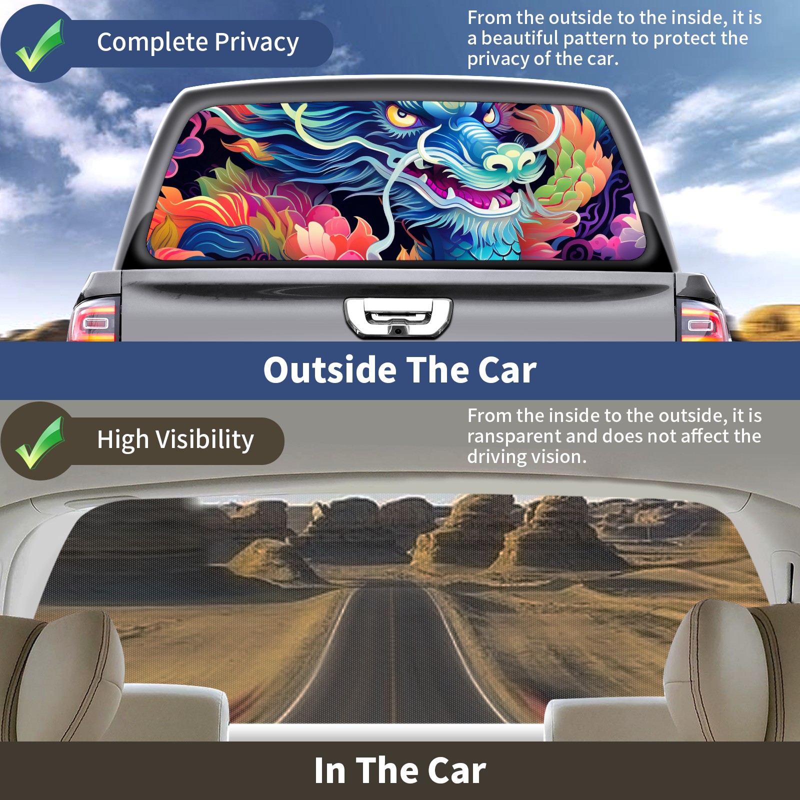 Truck Rear Window Graphics Decals Pickup Trucks Back Window Sticker Full Window Film Decal One Way Visual Waterproof Car Rear Tint Chinese Dragon (6)