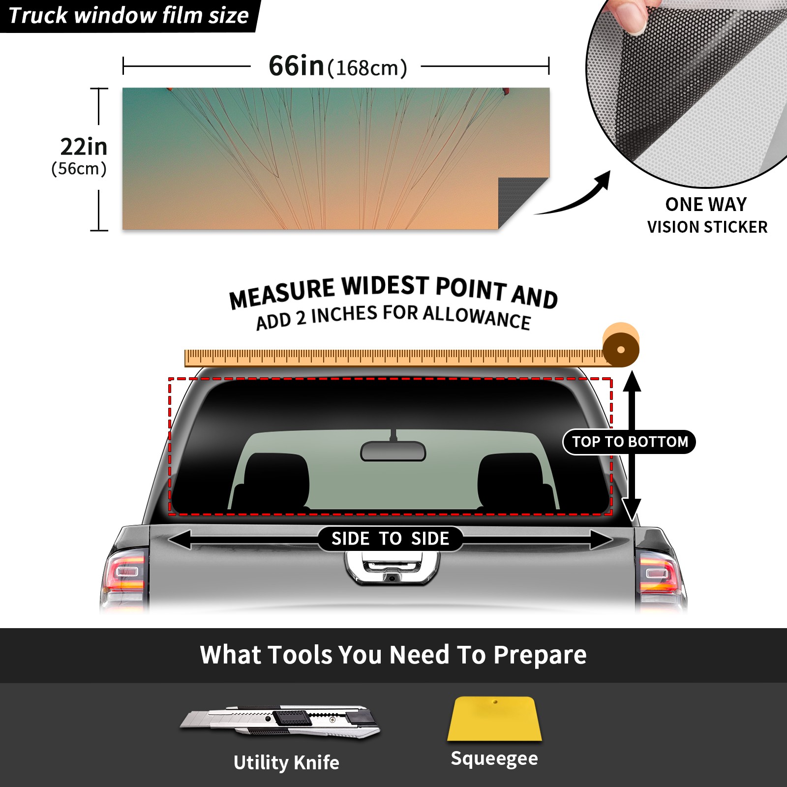Truck Rear Window Graphics Decals Pickup Trucks Back Window Sticker Full Window Film Decal One Way Visual Waterproof Car Rear Tint Paraglider Sea
