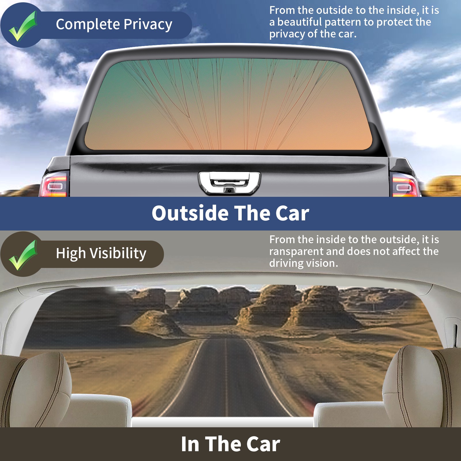 • </b>Window film one-way light transmission Protect your privacy while allowing you to enjoy the scenery outside your window!</b> <br> </b>●Decals Instructions Usage--Teach You To Use Quickly</b> <br> 1.Clean the window galss thoroughly <br> 2.Use a Squeegee or other card to scrape off the remaining water and bumps(don't use too much force) <br> 3.Remove the film's back cover .Use a knife to cut out a suitable contour and wipe off the remaining water(you can also use a hair dryer to blow dry) <br> 4.Find a suitable location and stick a sticker <br> </b>●Unique Design</b> <br> ZXIVGOQFR Back window stickers ‘s smart looking and unique cute design makes your vehicle special under sunshine. Makes your car easy to identify, perfect for finding your car in crowded parking lots and garages.funny visor reflects personality and attitude. <br> </b>●Perfect Gift for all Drivers<br></b> We create all the gifts and accessories you only need to choose what you like. Get full tailgate wraps, rear window decals, and everything you need to make your pickup truck look awesome. <br> </b> Decorate Your Pickup Truck With Rear Window Decal Today!</b>