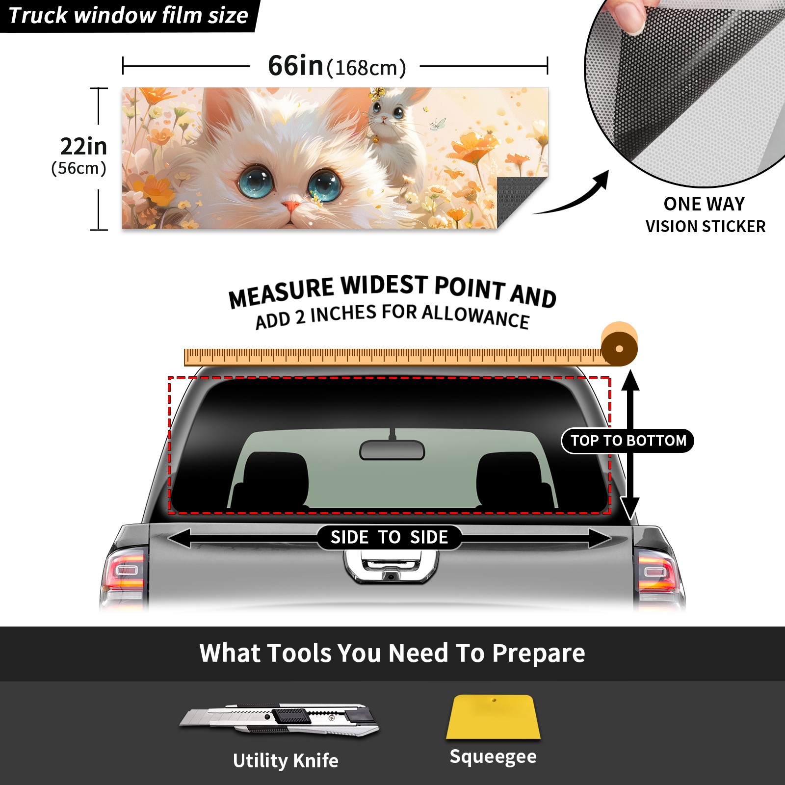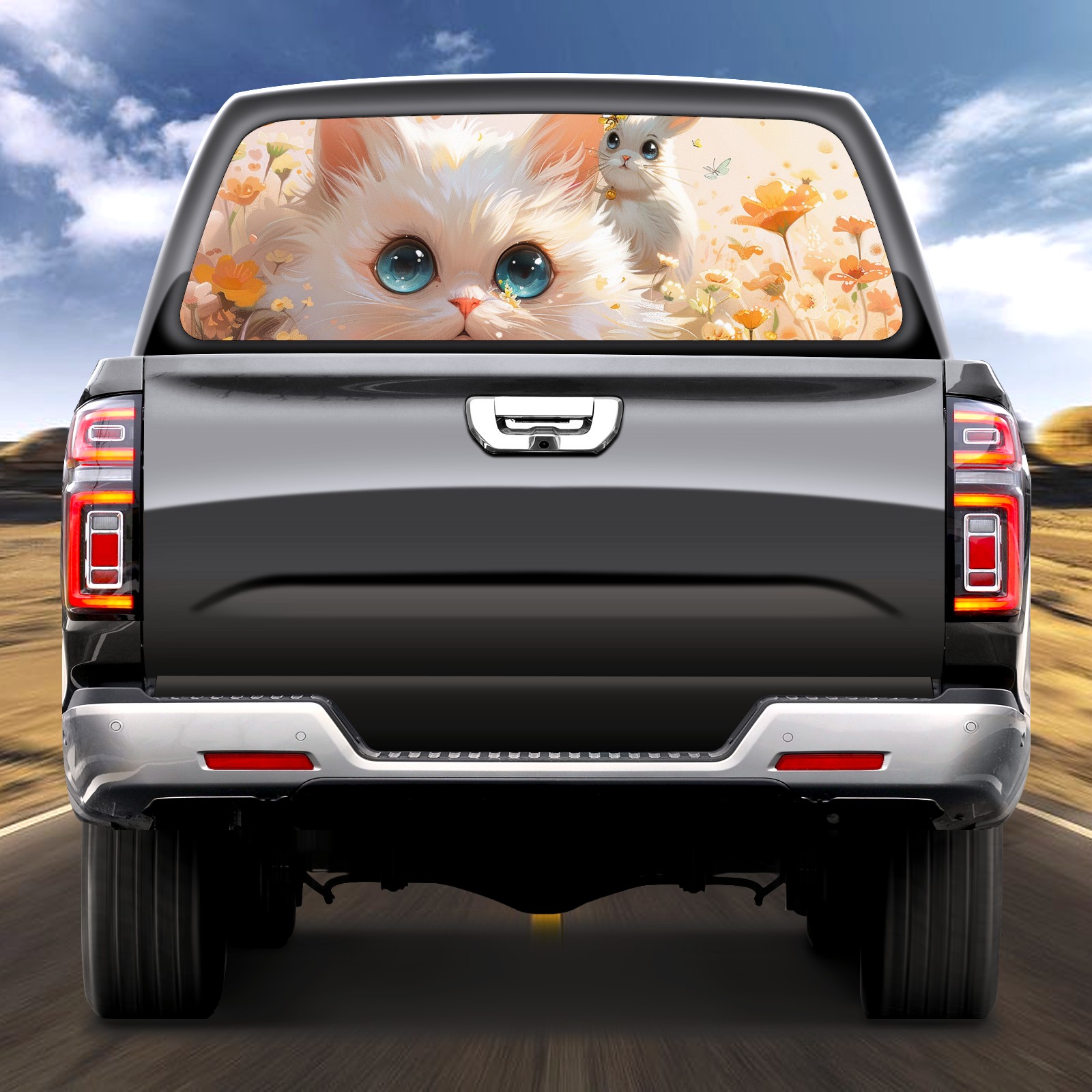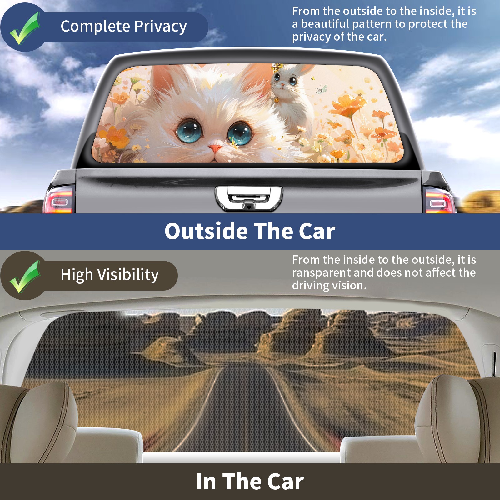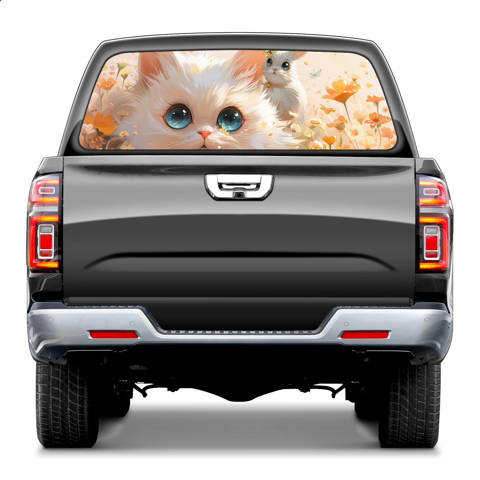 Truck Rear Window Graphics Decals Pickup Trucks Back Window Sticker Full Window Film Decal One Way Visual Waterproof Car Rear Tint Cat Rabbit