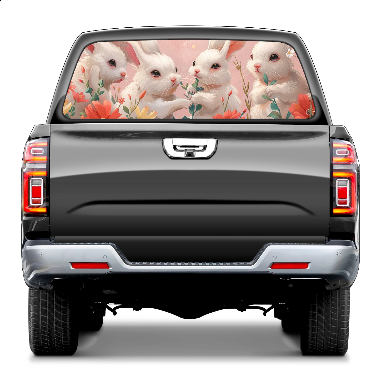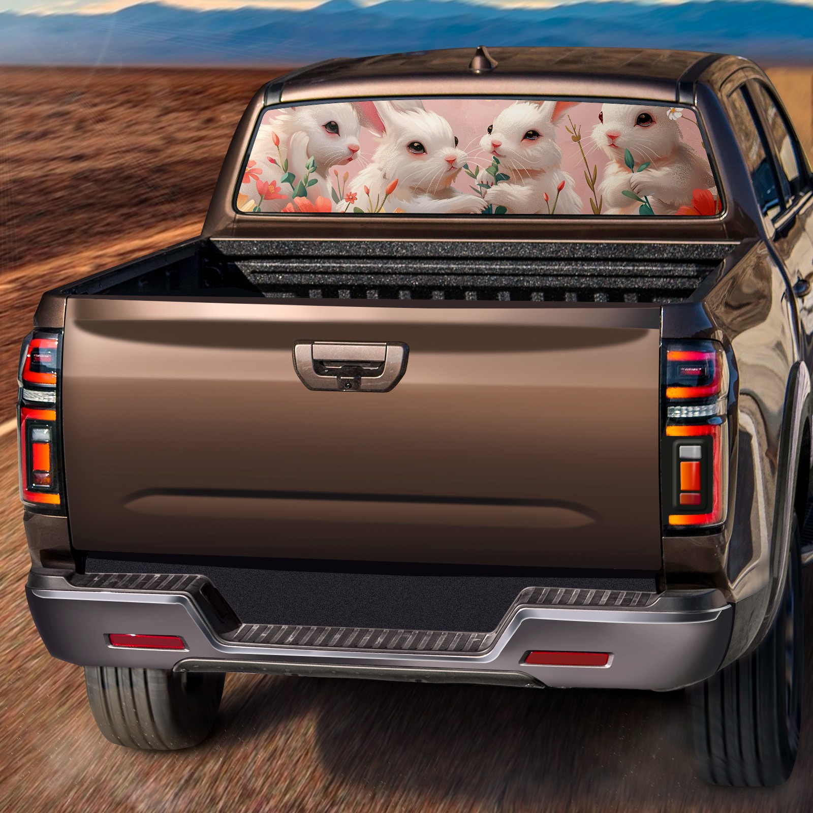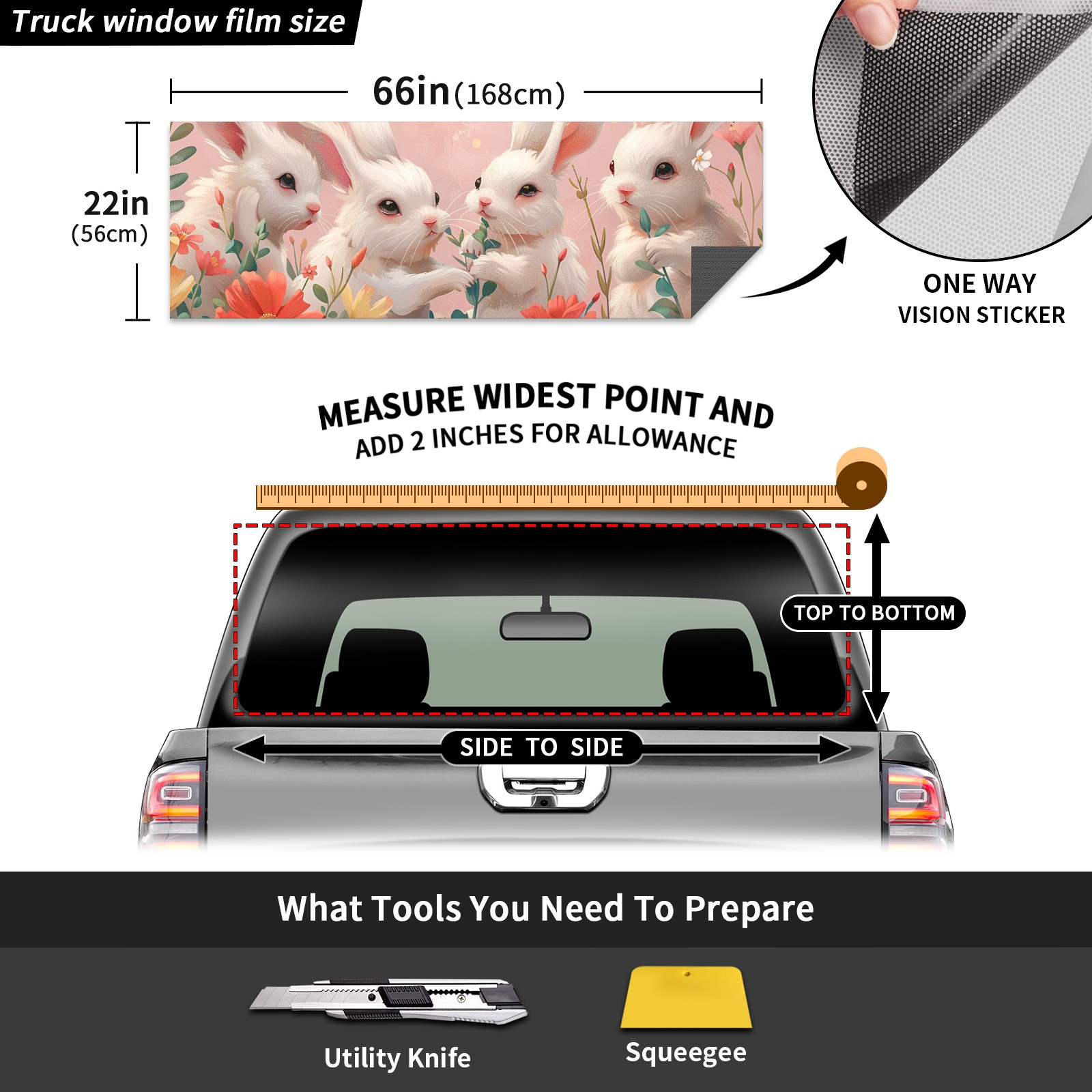 Truck Rear Window Graphics Decals Pickup Trucks Back Window Sticker Full Window Film Decal One Way Visual Waterproof Car Rear Tint Rabbit Safflower