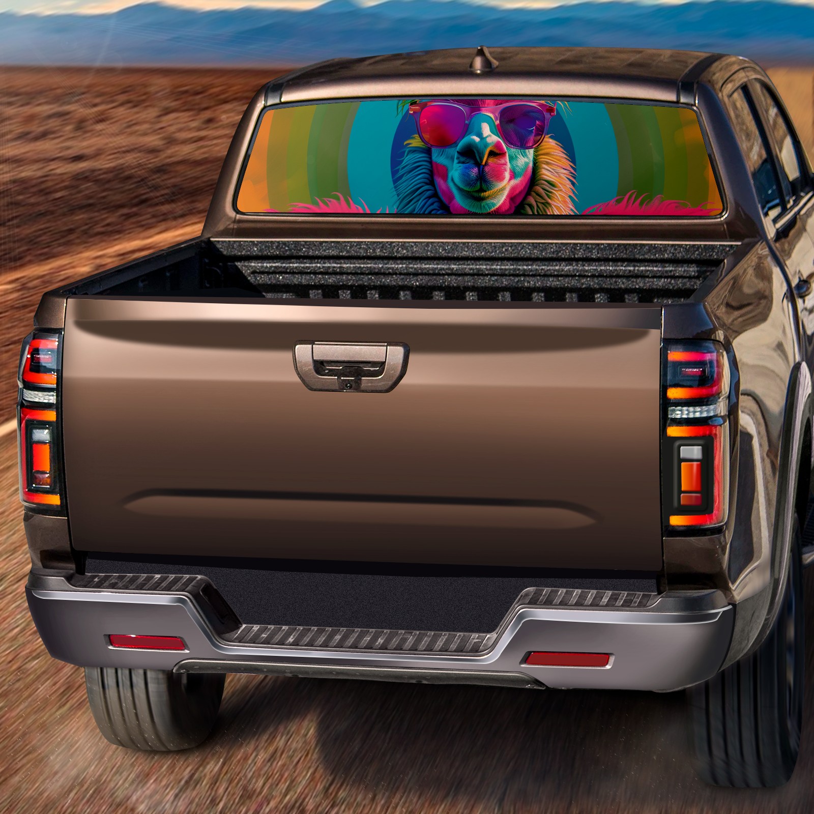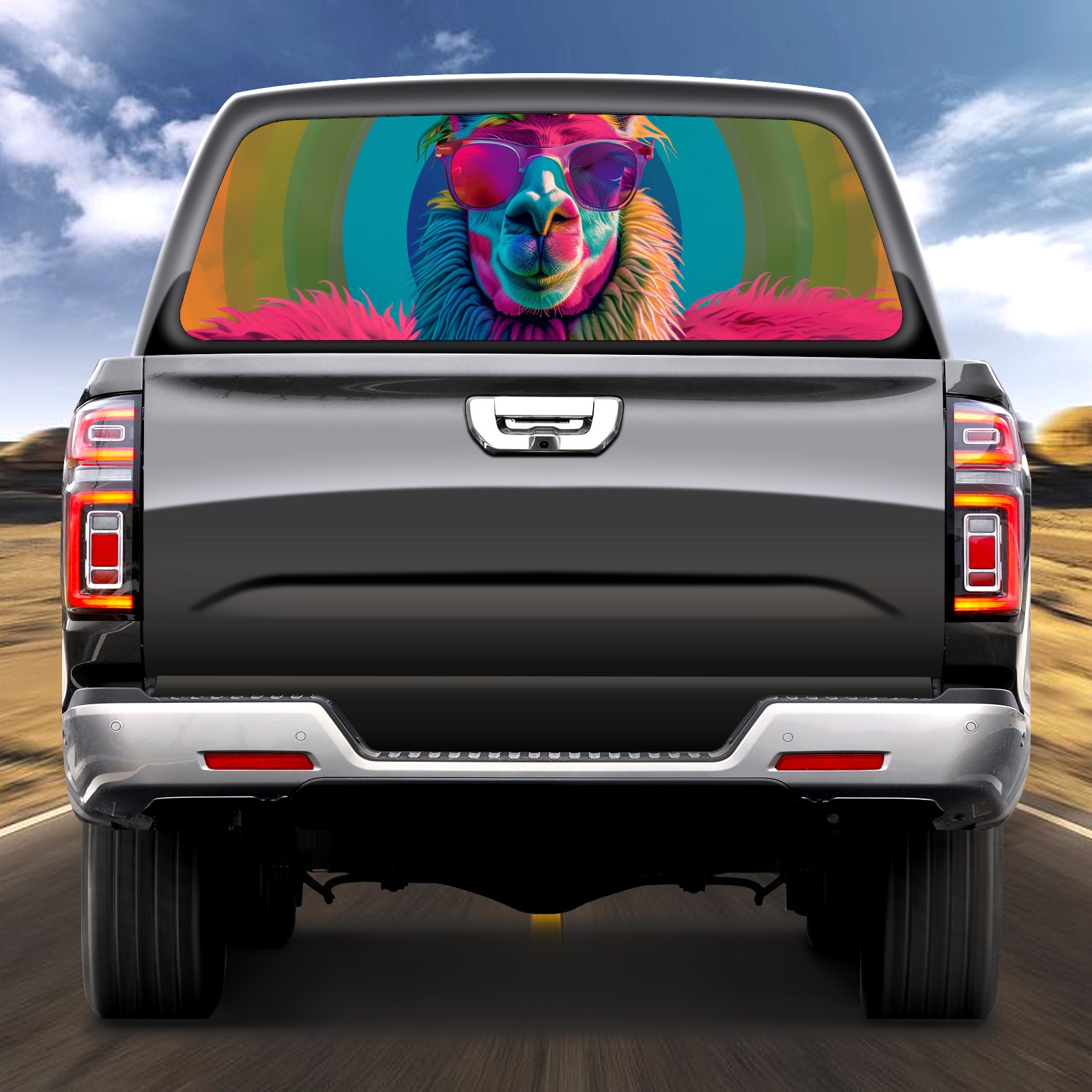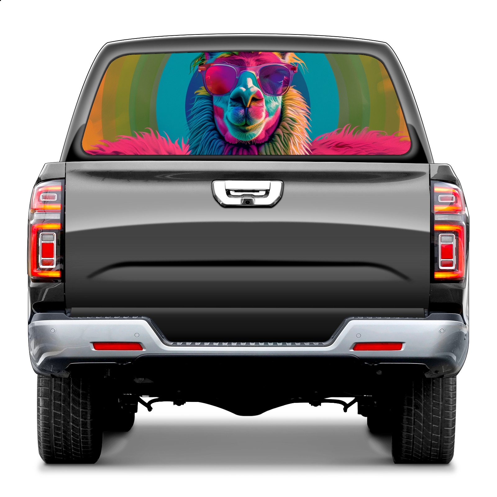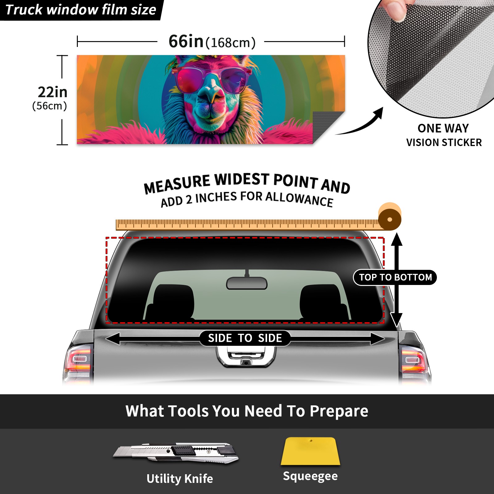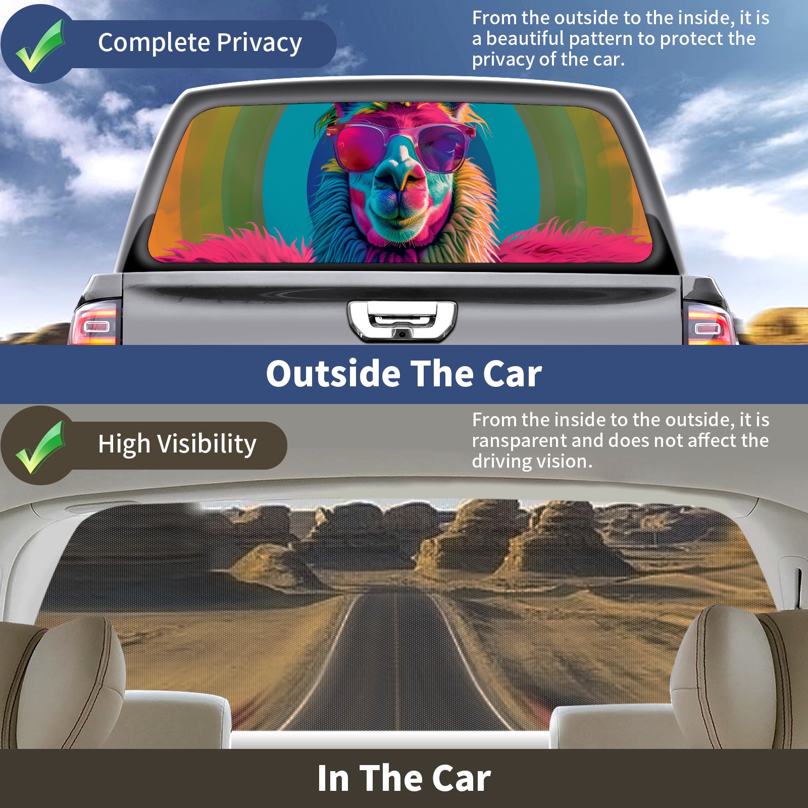 Truck Rear Window Graphics Decals Pickup Trucks Back Window Sticker Full Window Film Decal One Way Visual Waterproof Car Rear Tint Colored Alpaca