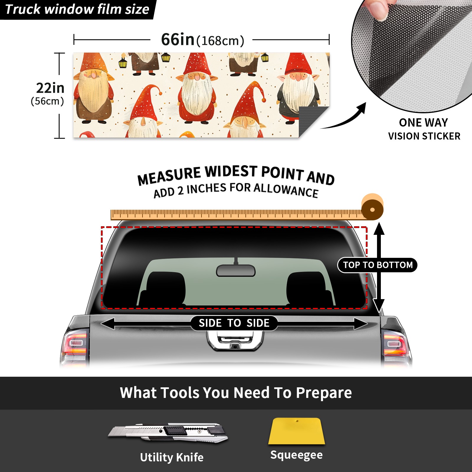Truck Rear Window Graphics Decals Pickup Trucks Back Window Sticker Full Window Film Decal One Way Visual Waterproof Car Rear Tint Dwarves