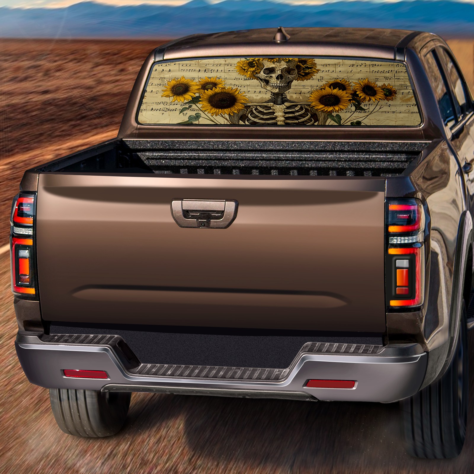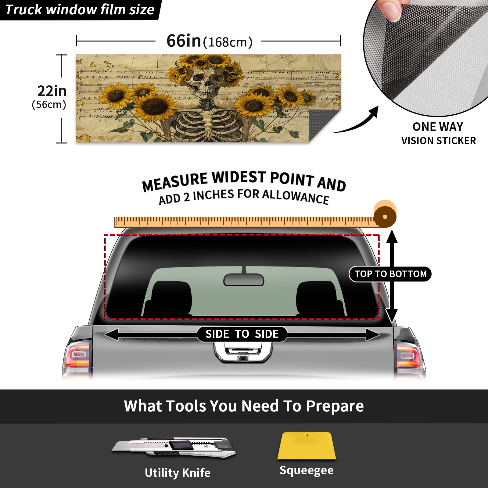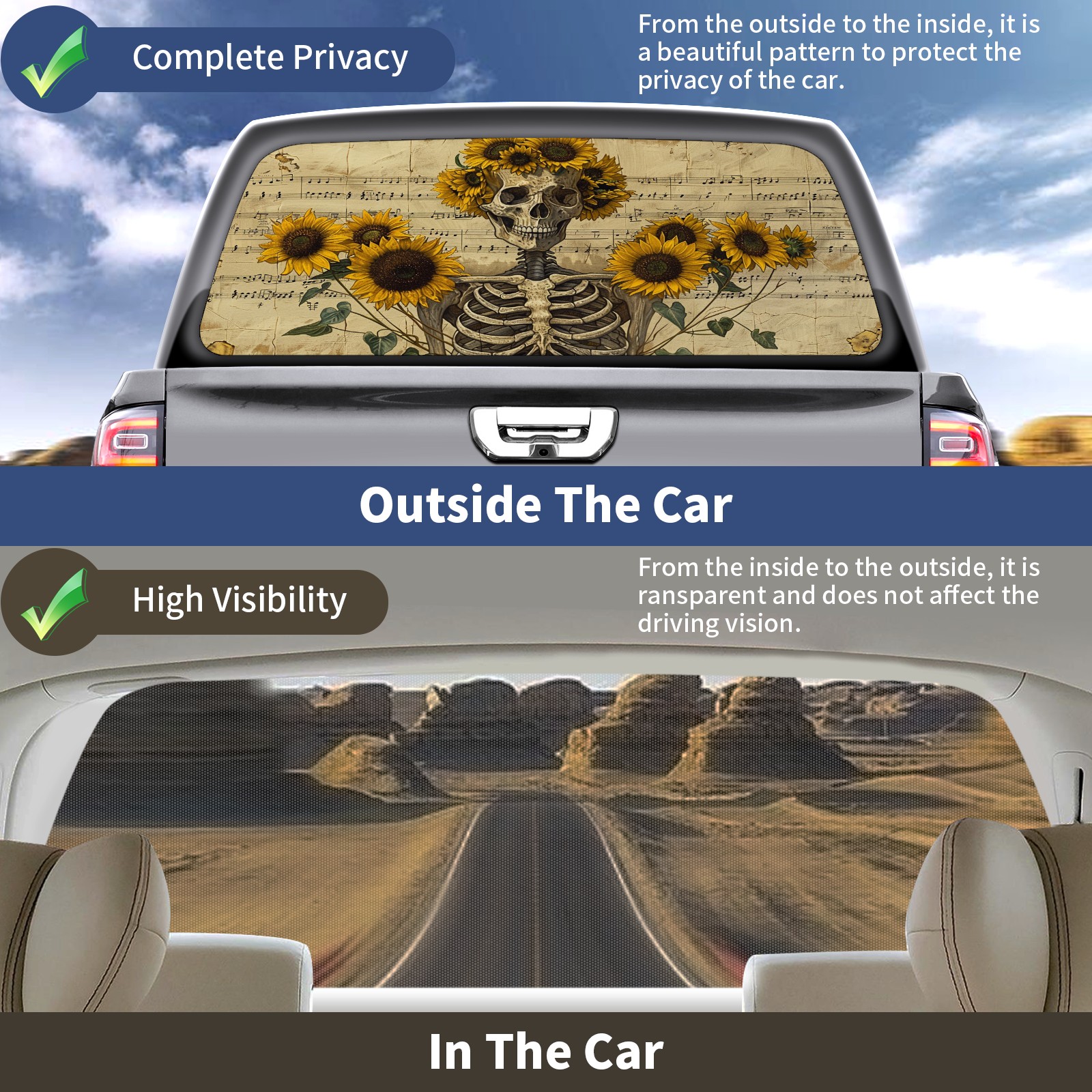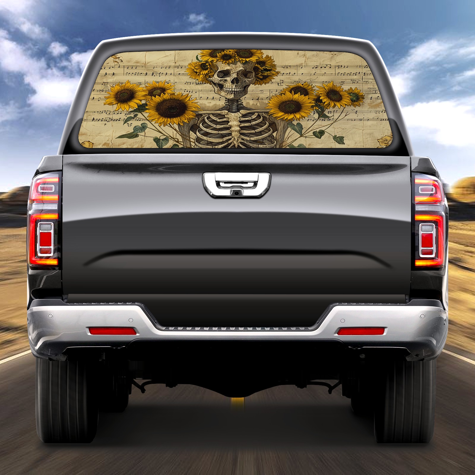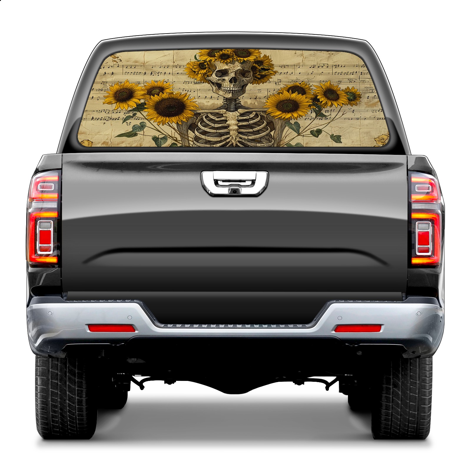 Truck Rear Window Graphics Decals Pickup Trucks Back Window Sticker Full Window Film Decal One Way Visual Waterproof Car Rear Tint Skull Sunflower