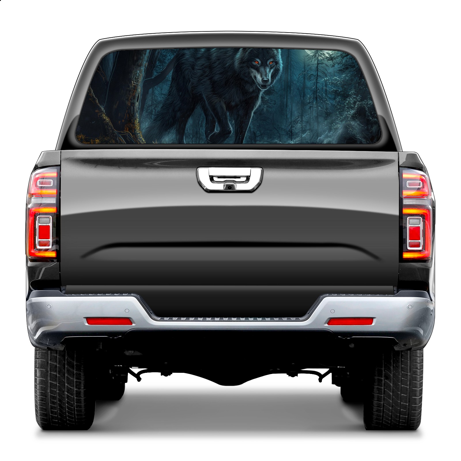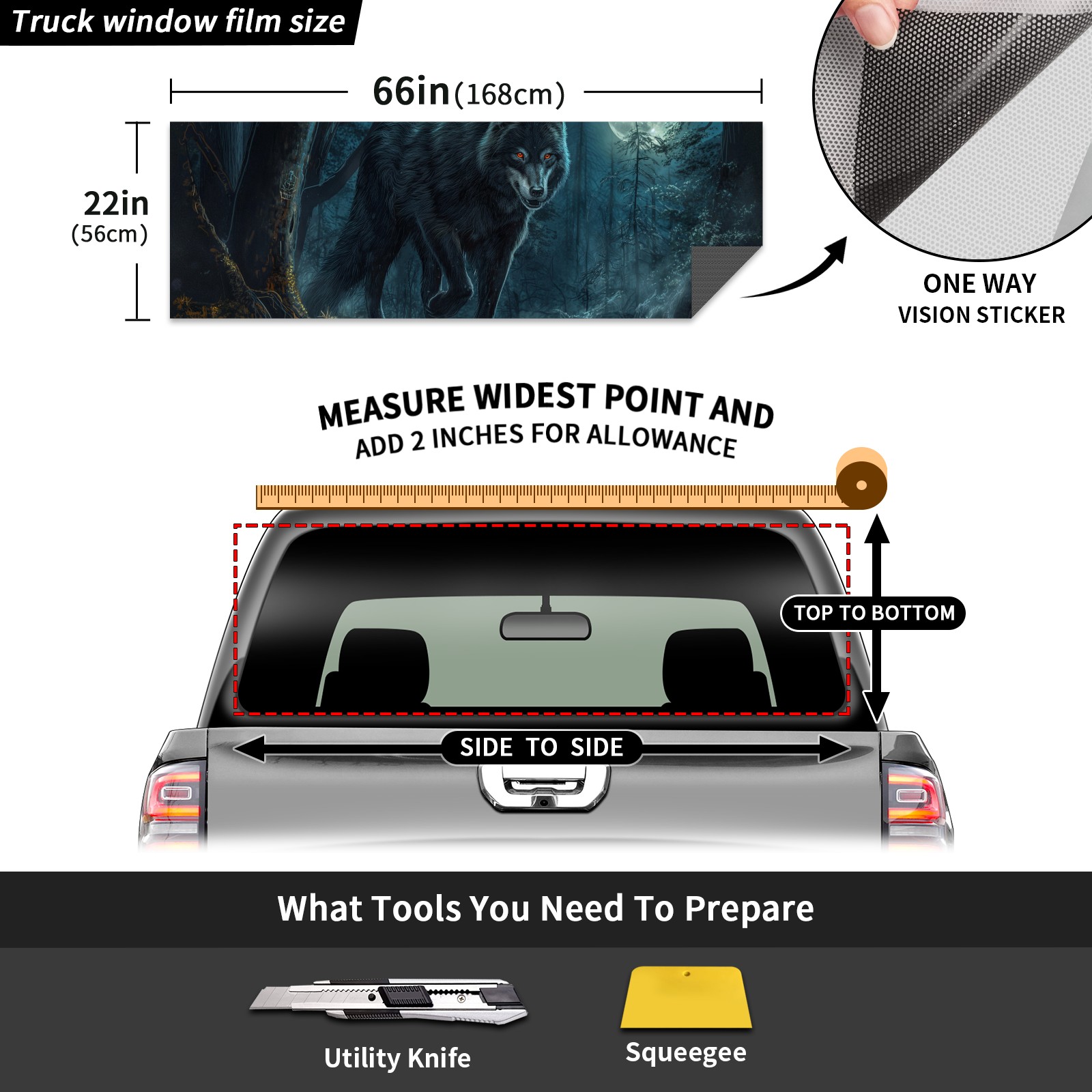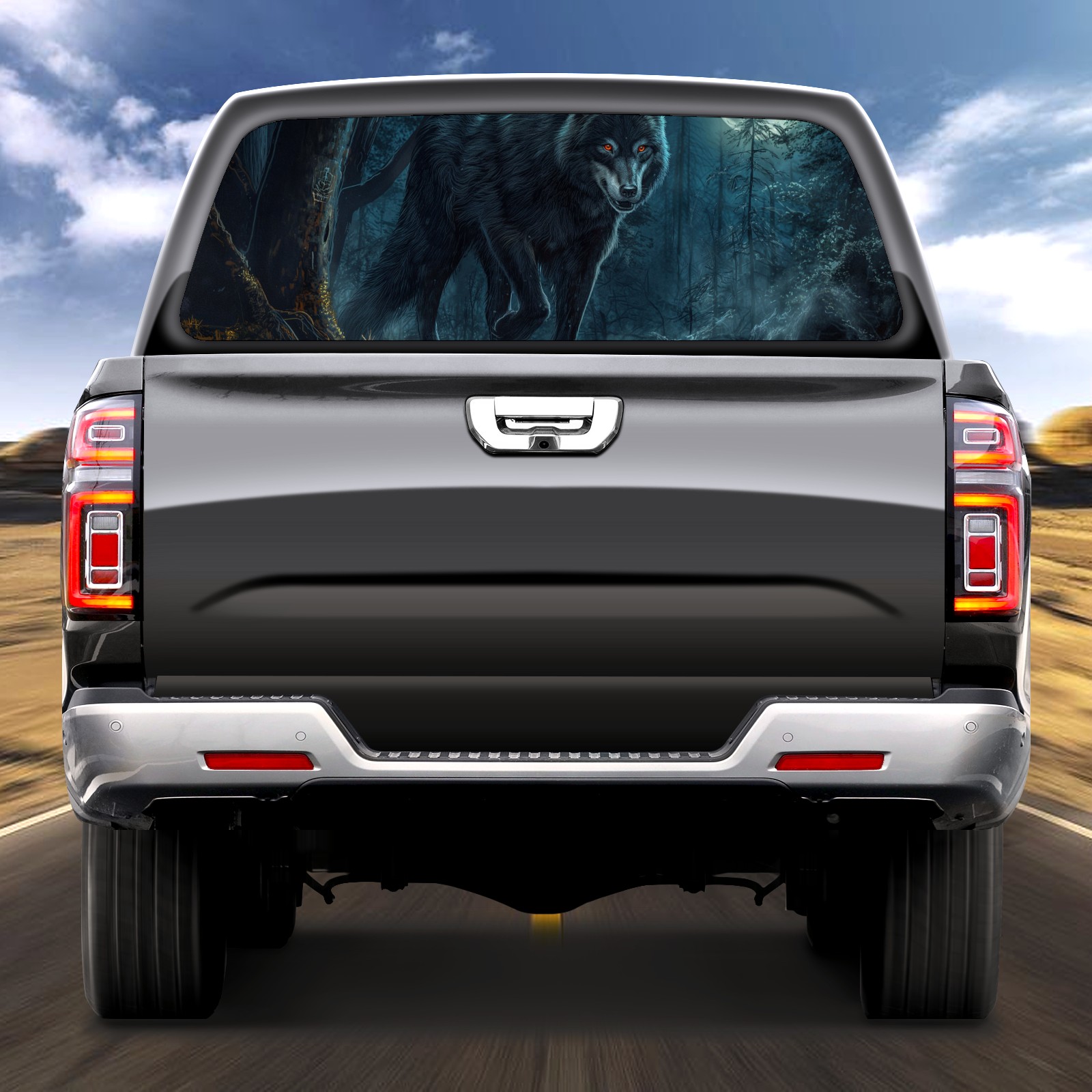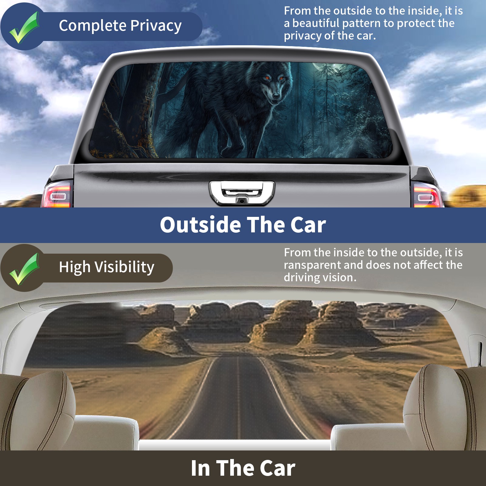 Truck Rear Window Graphics Decals Pickup Trucks Back Window Sticker Full Window Film Decal One Way Visual Waterproof Car Rear Tint Black Wolf In Forest (C)