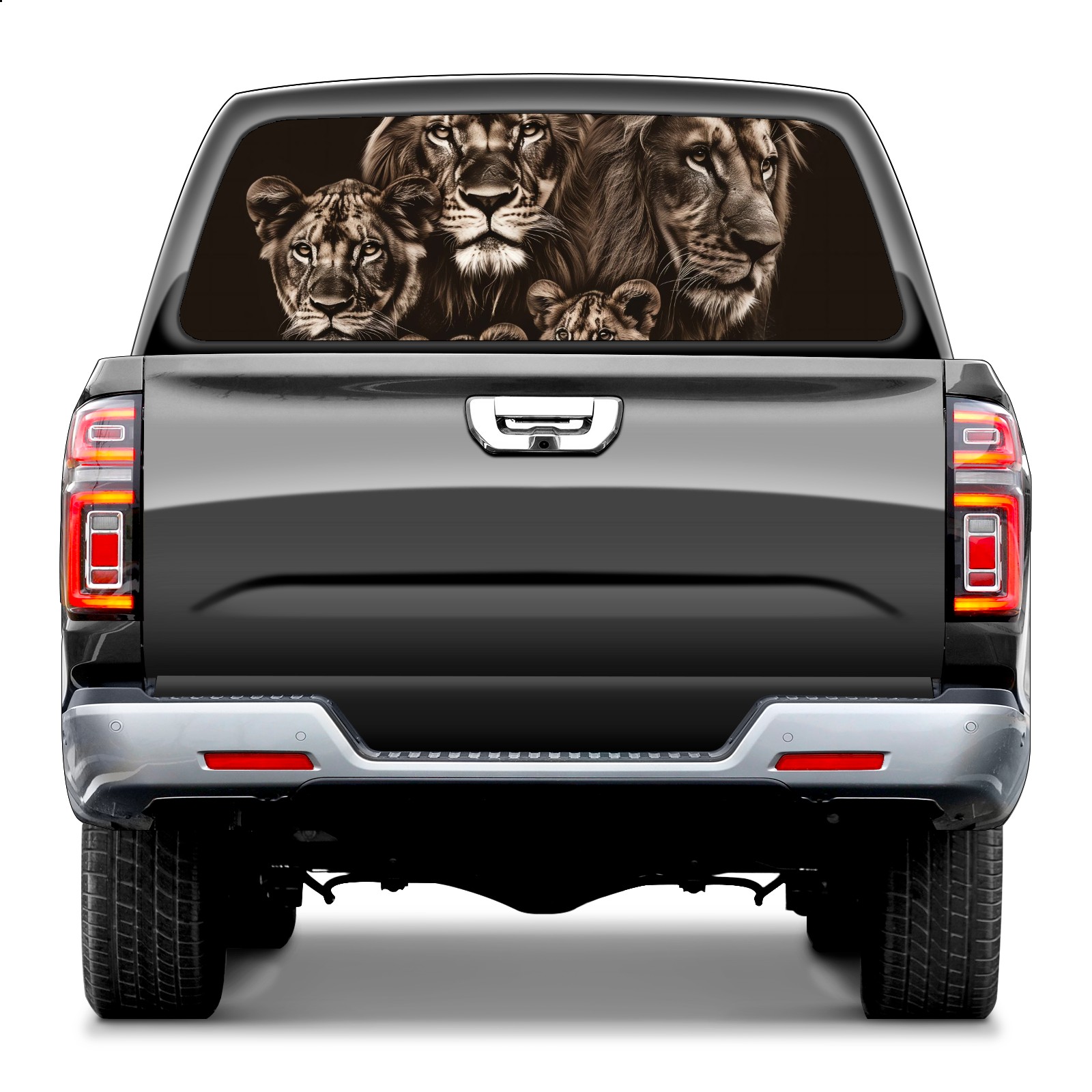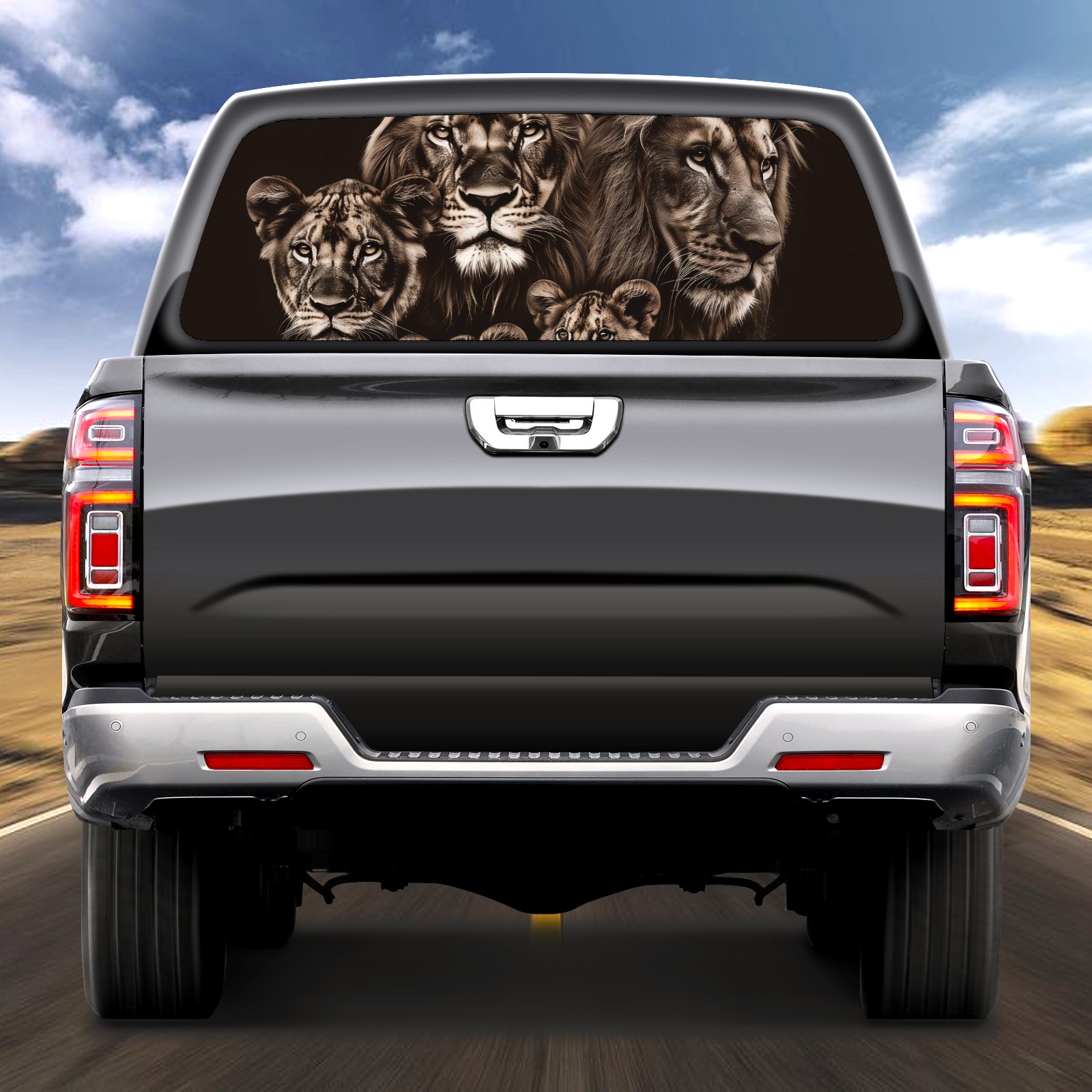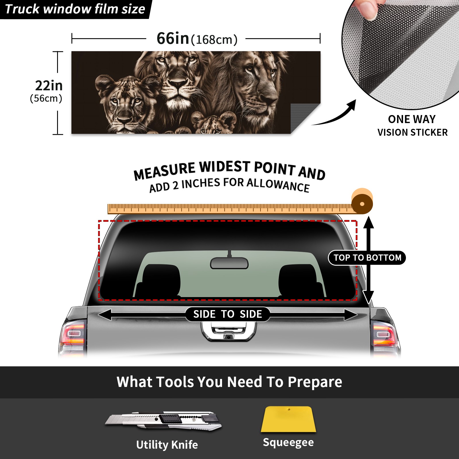 Truck Rear Window Graphics Decals Pickup Trucks Back Window Sticker Full Window Film Decal One Way Visual Waterproof Car Rear Tint Lions (S) (1)