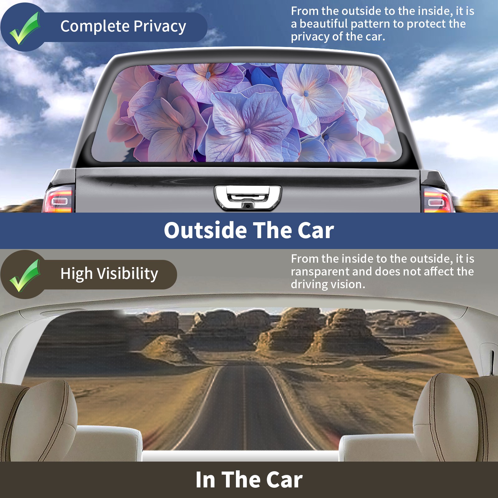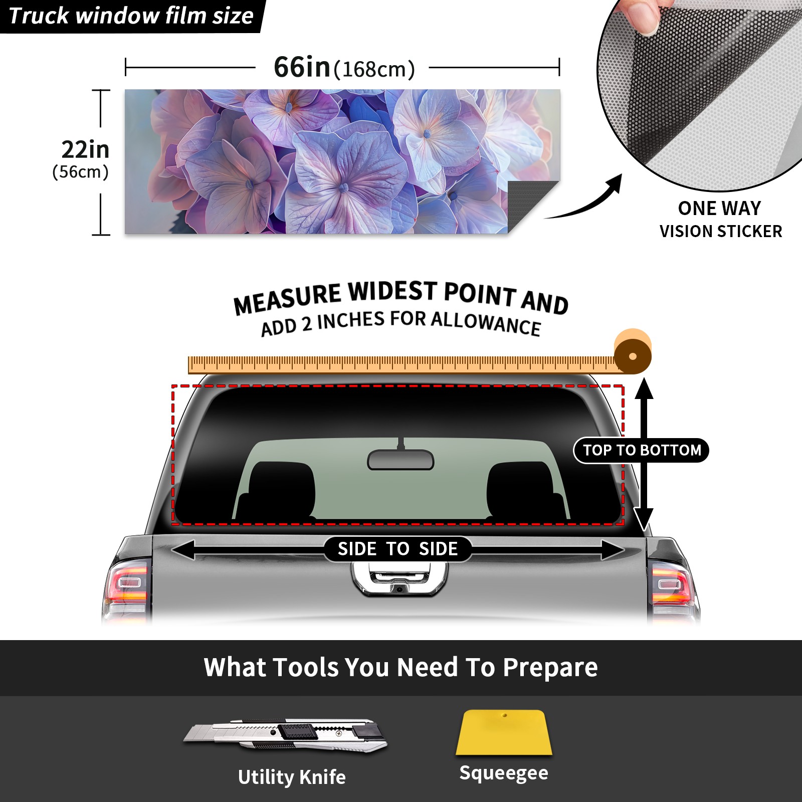 Truck Rear Window Graphics Decals Pickup Trucks Back Window Sticker Full Window Film Decal One Way Visual Waterproof Car Rear Tint Hydrangea