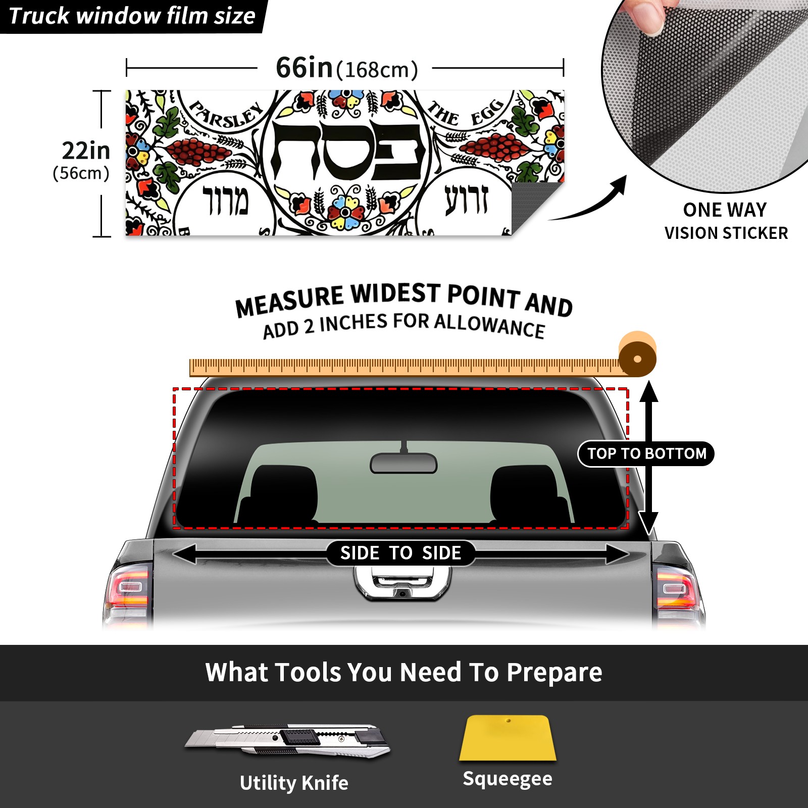 Truck Rear Window Graphics Decals Pickup Trucks Back Window Sticker Full Window Film Decal One Way Visual Waterproof Car Rear Tint Passover (1)