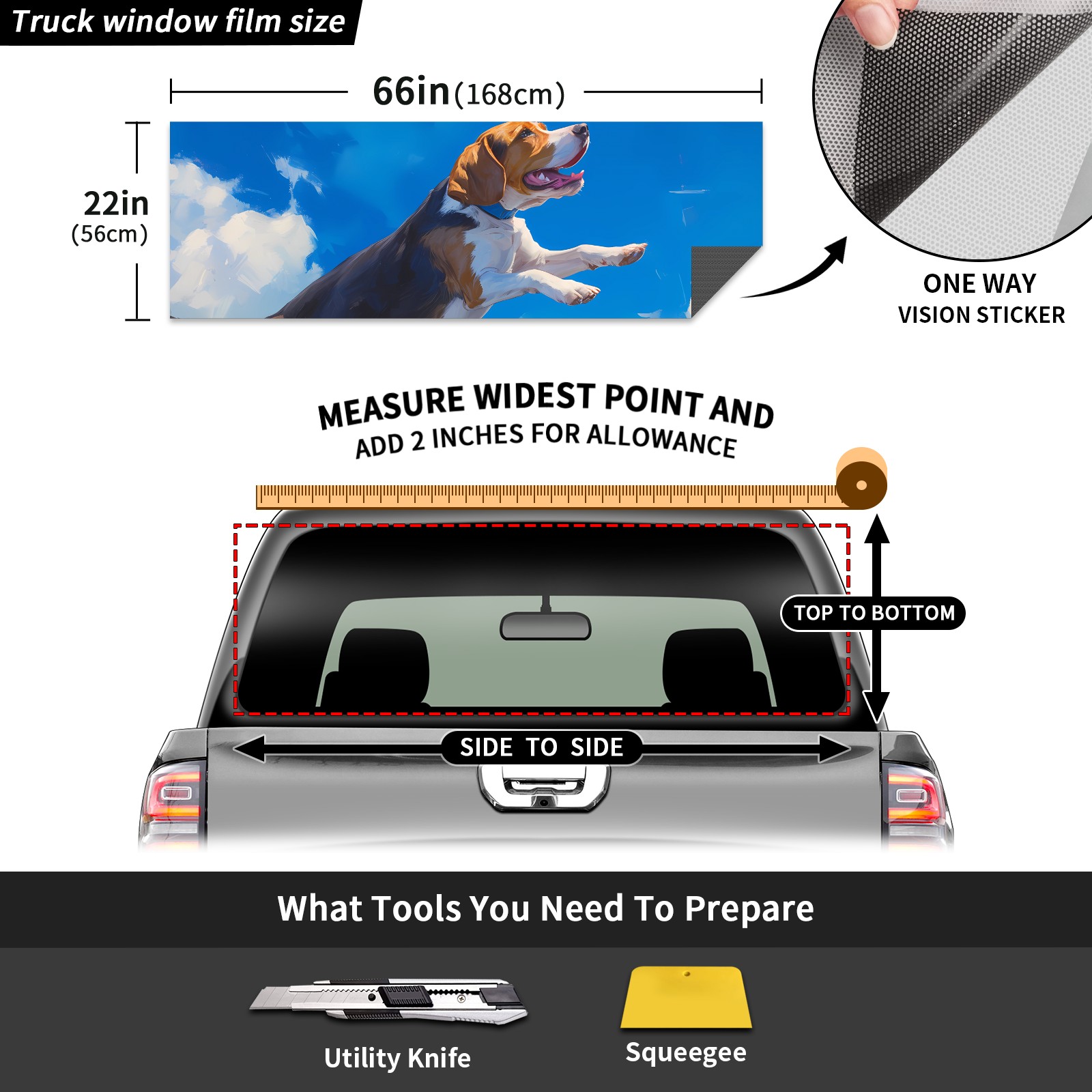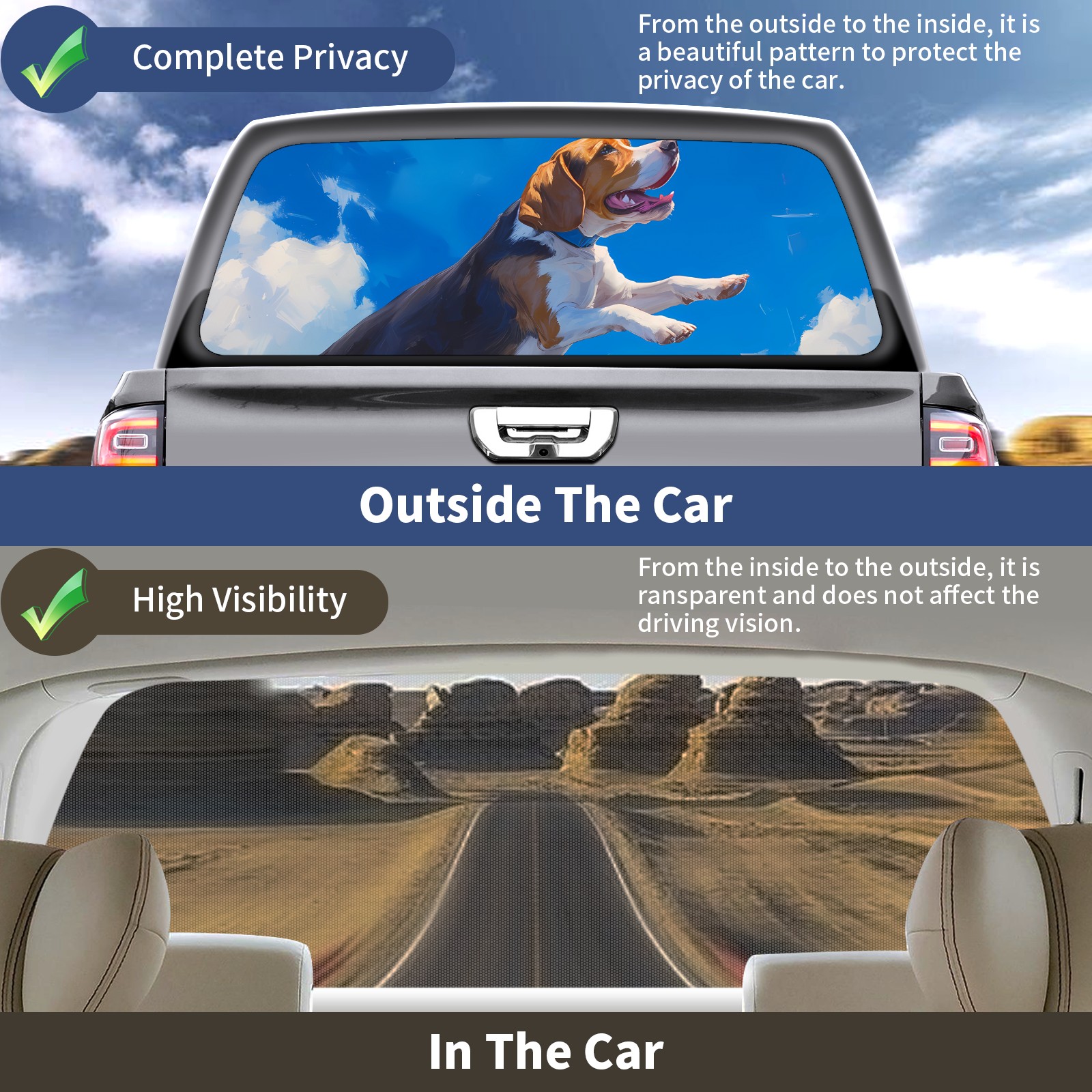 Truck Rear Window Graphics Decals Pickup Trucks Back Window Sticker Full Window Film Decal One Way Visual Waterproof Car Rear Tint Dog 7 (1)
