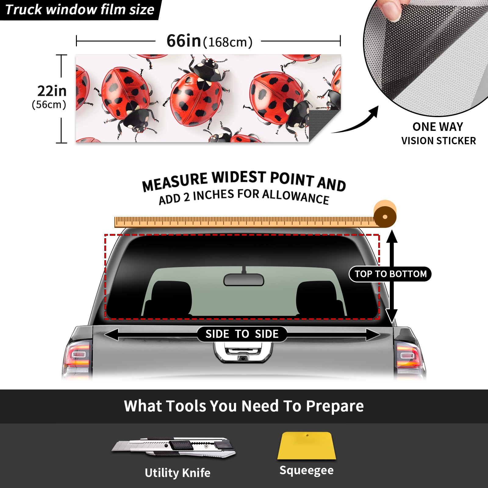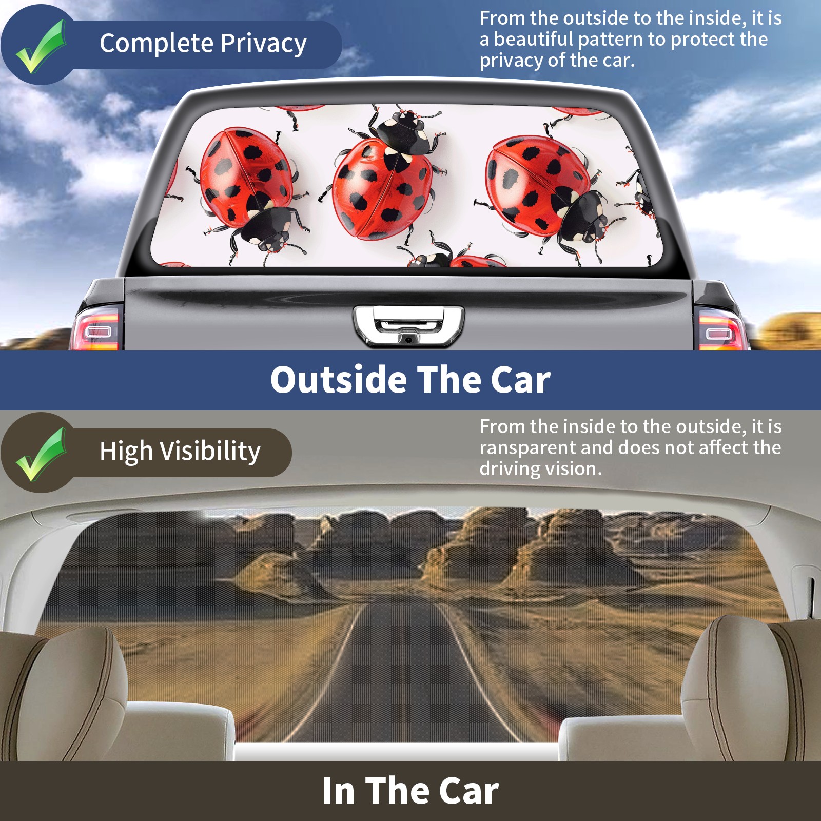 Truck Rear Window Graphics Decals Pickup Trucks Back Window Sticker Full Window Film Decal One Way Visual Waterproof Car Rear Tint Ladybugs
