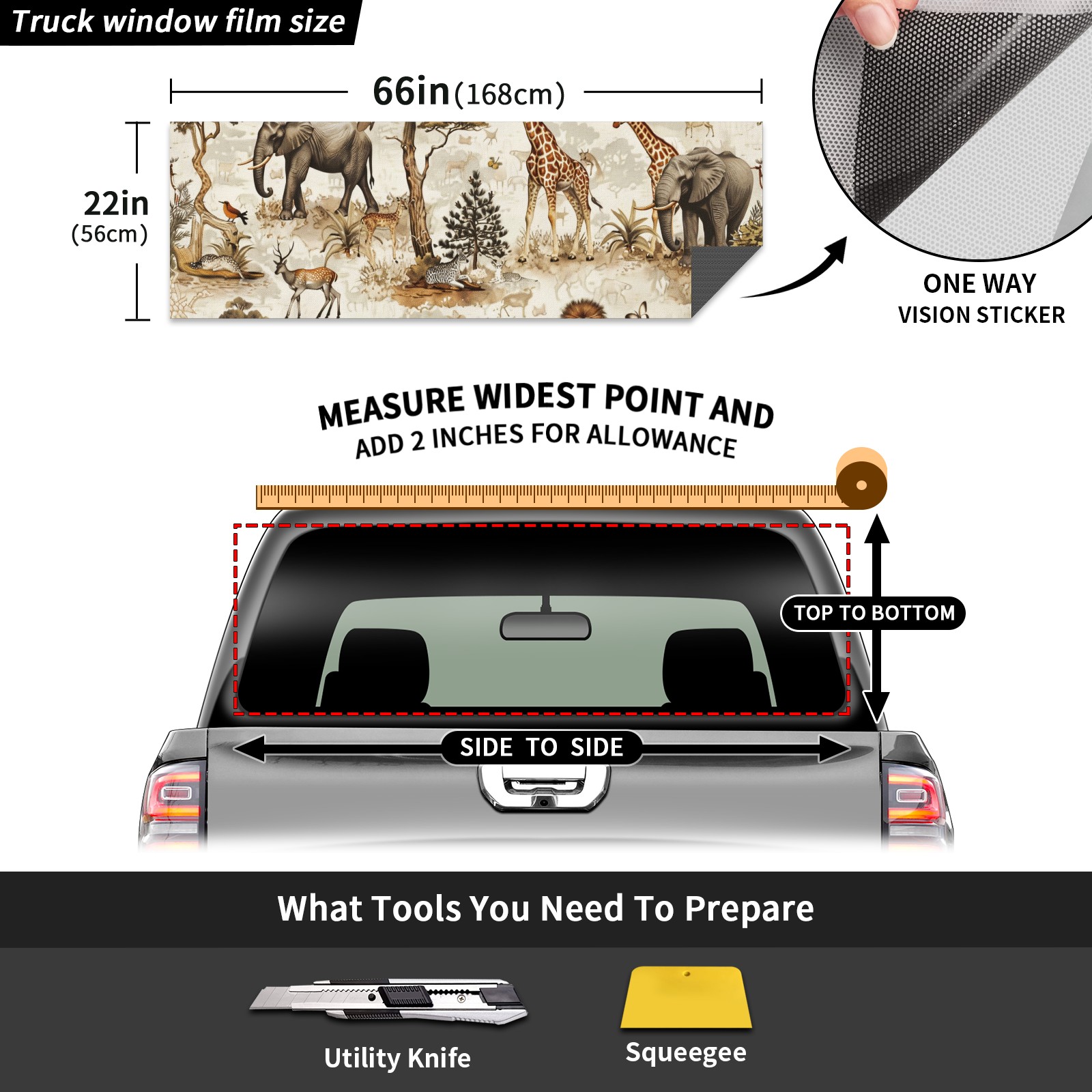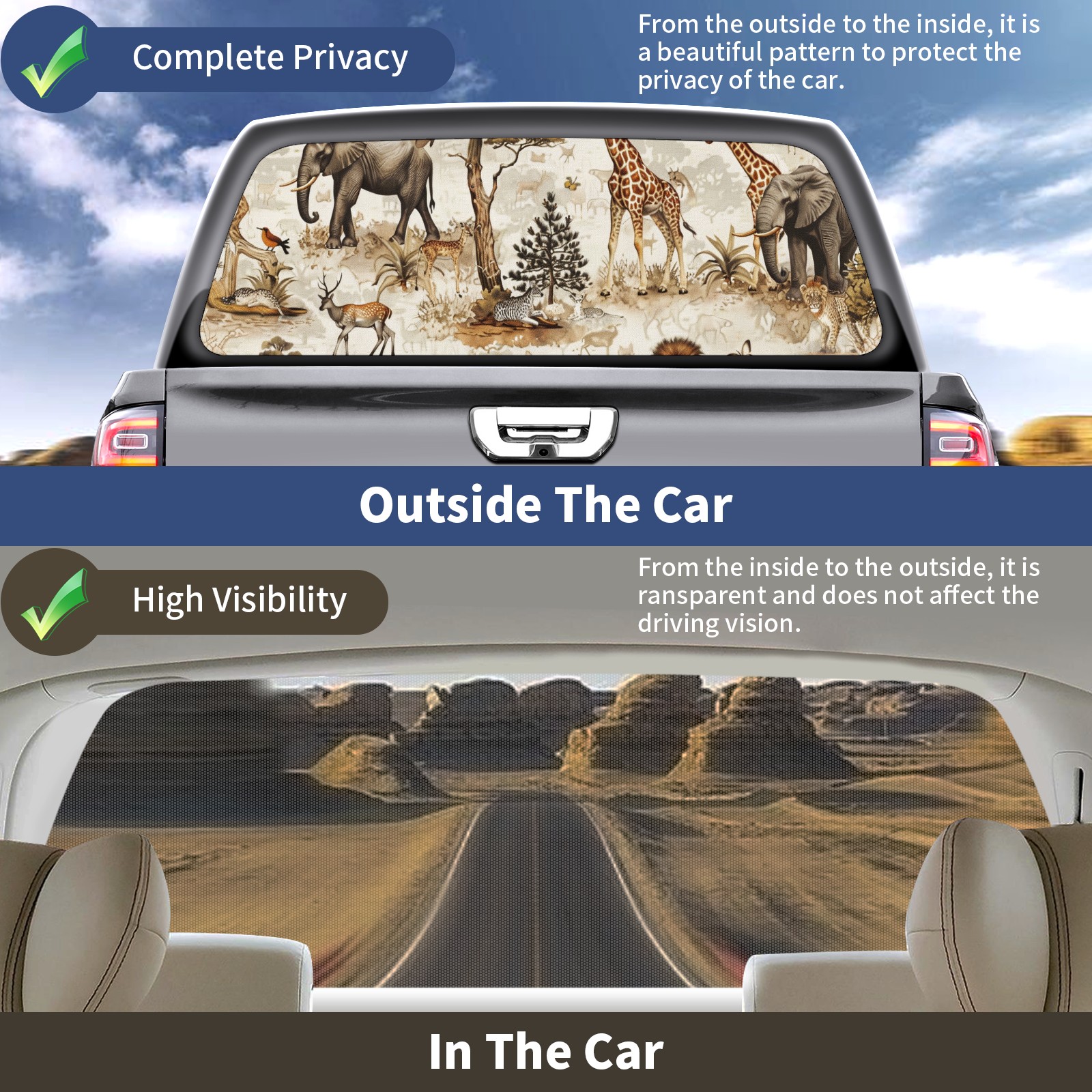 Truck Rear Window Graphics Decals Pickup Trucks Back Window Sticker Full Window Film Decal One Way Visual Waterproof Car Rear Tint Giraffe