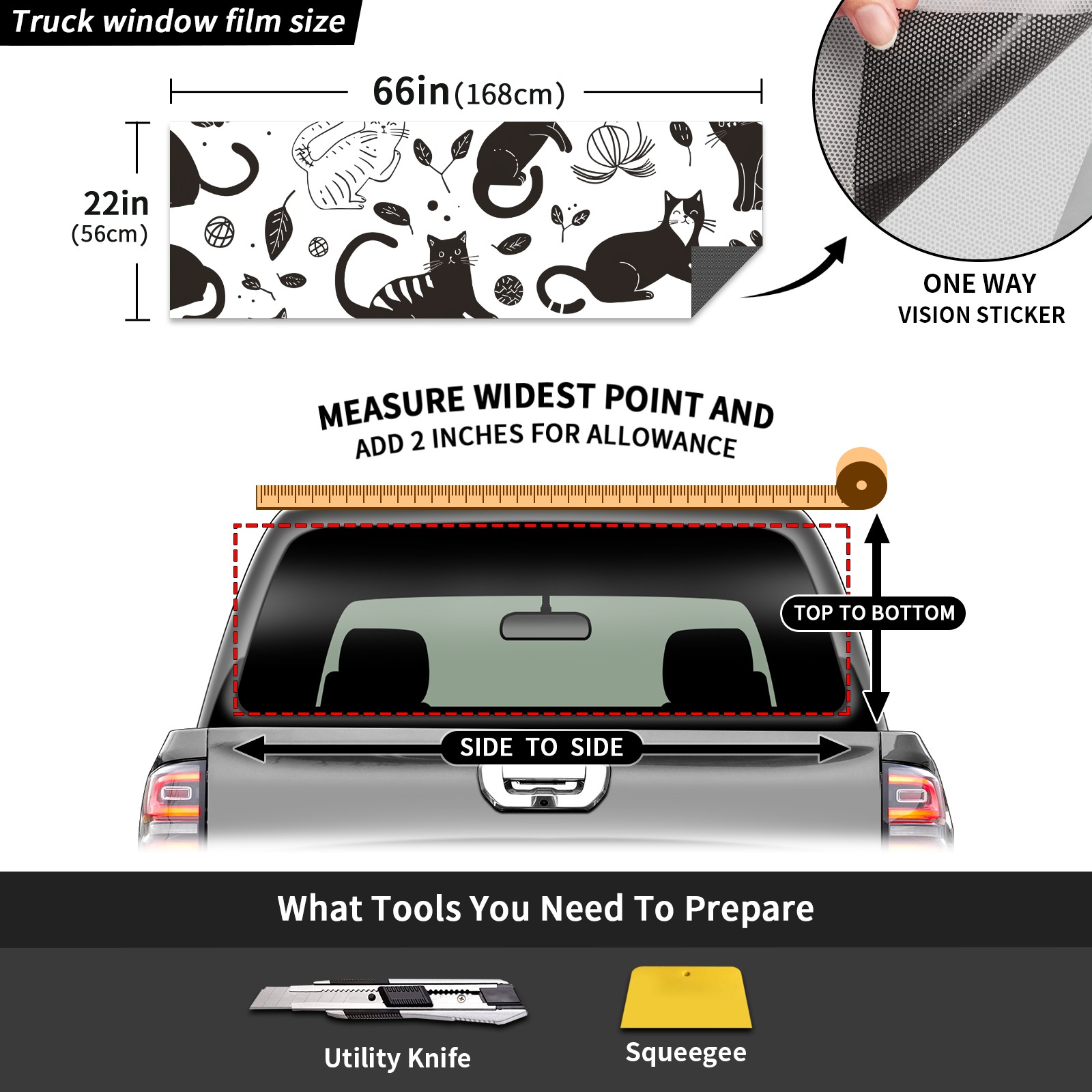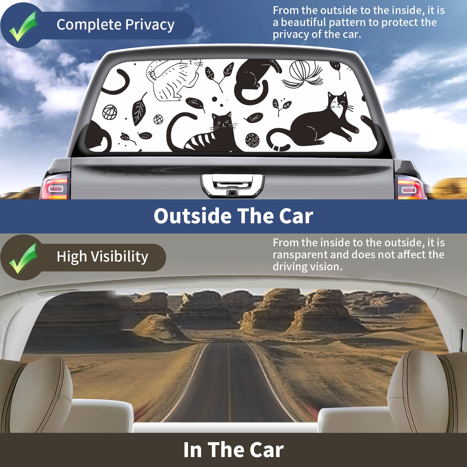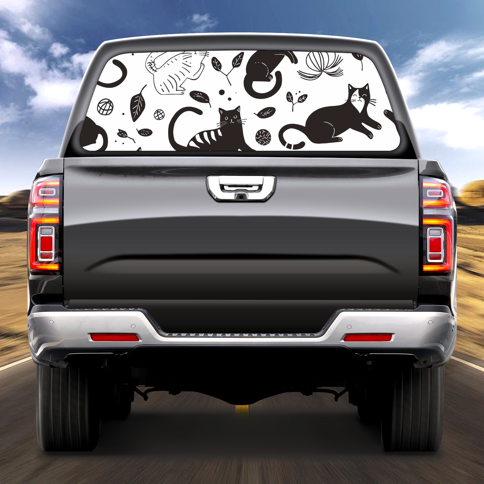 Truck Rear Window Graphics Decals Pickup Trucks Back Window Sticker Full Window Film Decal One Way Visual Waterproof Car Rear Tint Black Cat