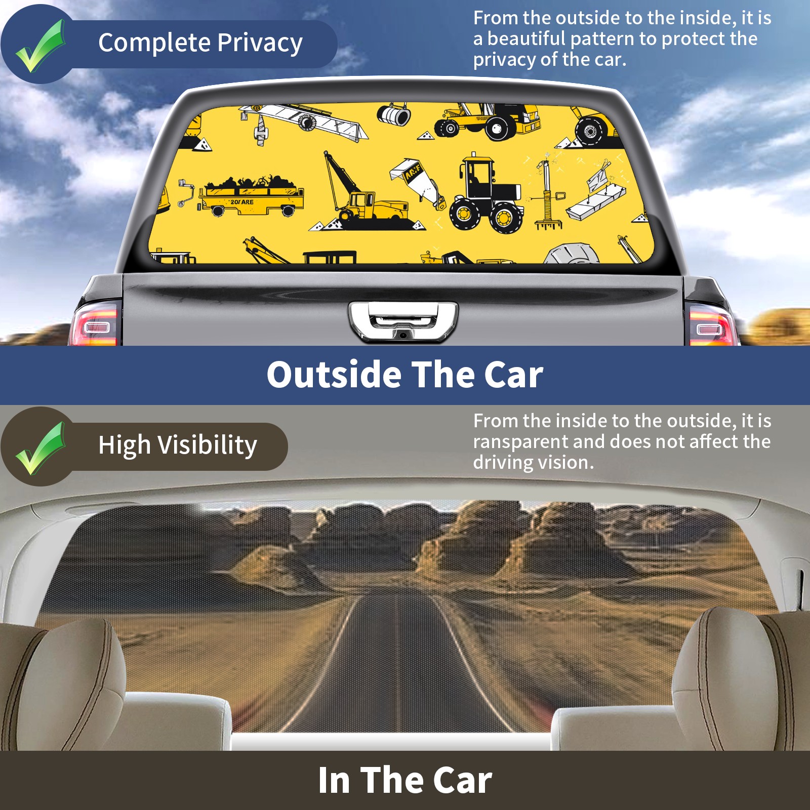 Truck Rear Window Graphics Decals Pickup Trucks Back Window Sticker Full Window Film Decal One Way Visual Waterproof Car Rear Tint Toy Car