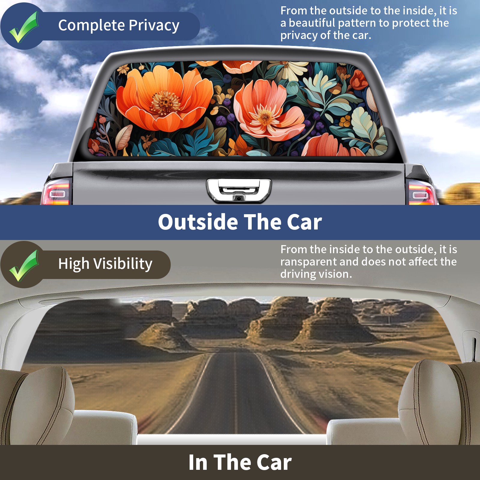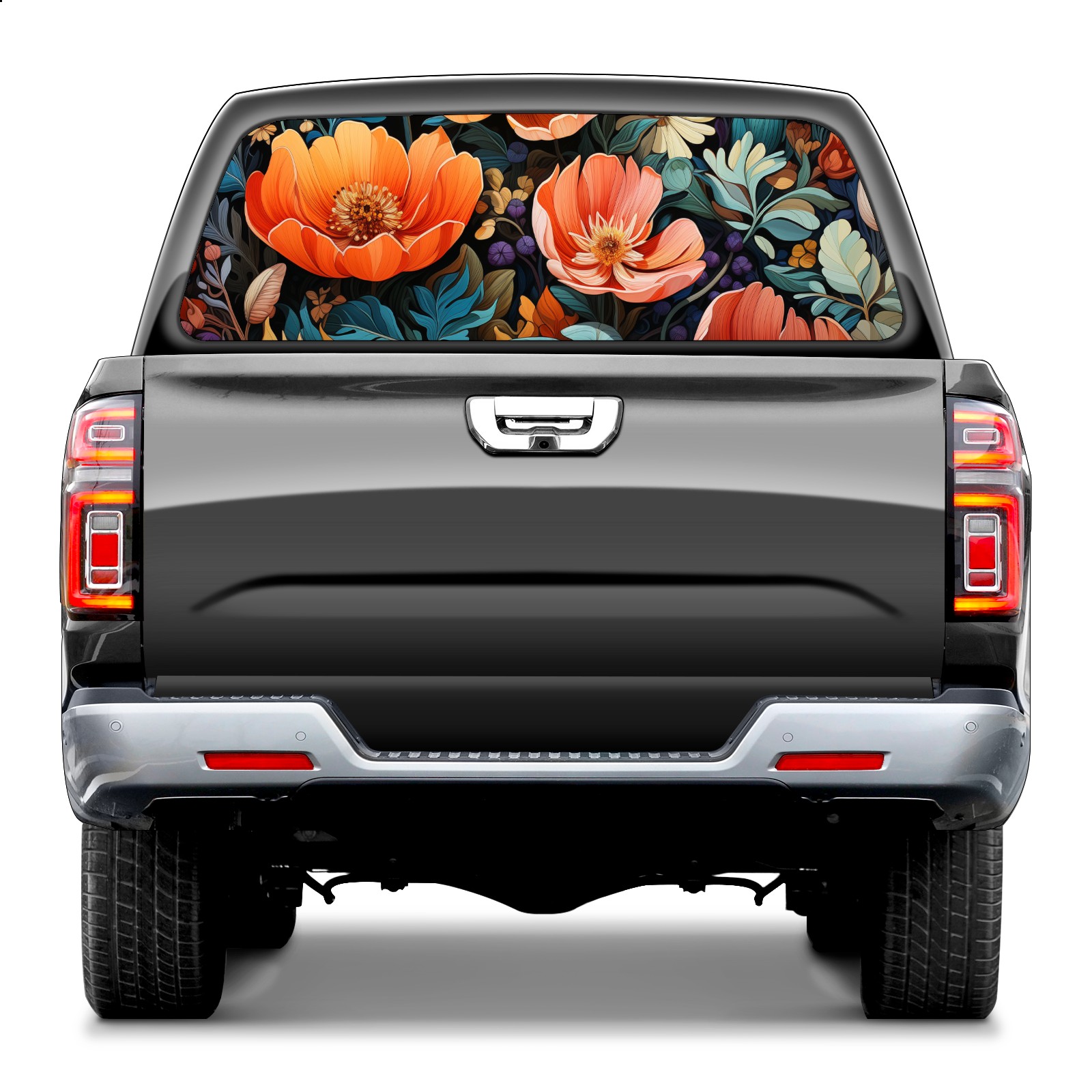 Truck Rear Window Graphics Decals Pickup Trucks Back Window Sticker Full Window Film Decal One Way Visual Waterproof Car Rear Tint Colorful Flowers