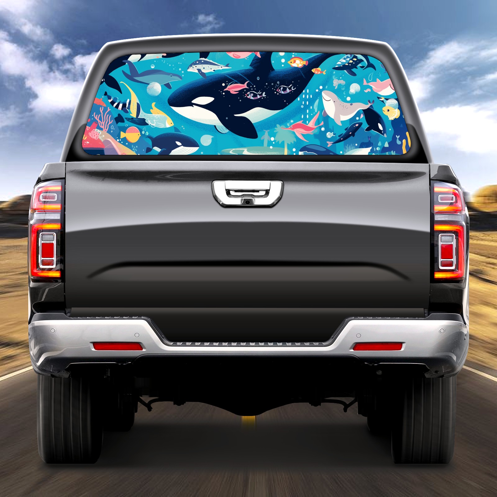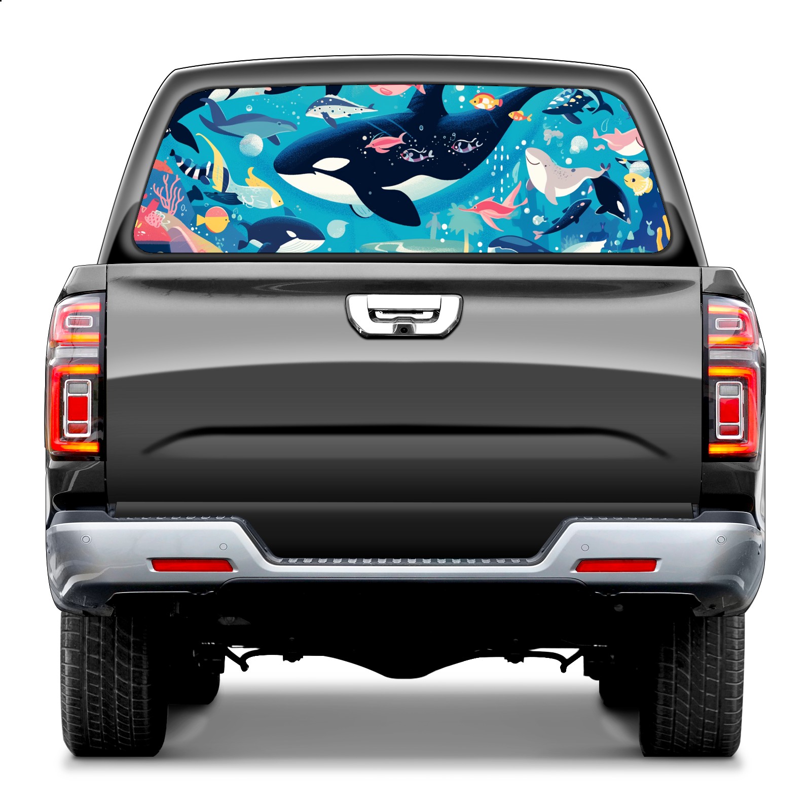 Truck Rear Window Graphics Decals Pickup Trucks Back Window Sticker Full Window Film Decal One Way Visual Waterproof Car Rear Tint Whale