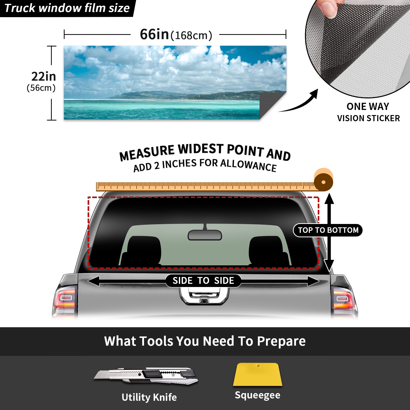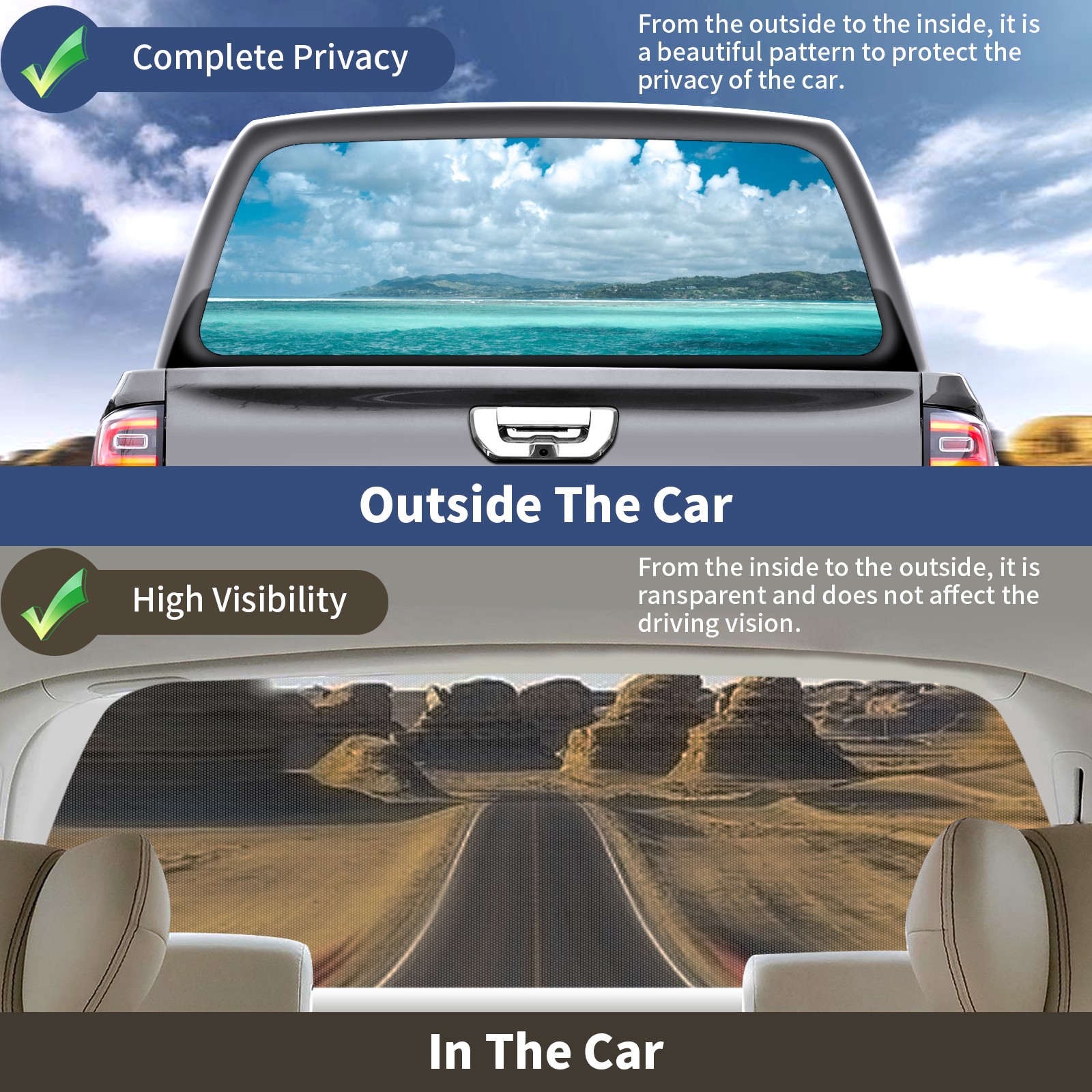 Truck Rear Window Graphics Decals Pickup Trucks Back Window Sticker Full Window Film Decal One Way Visual Waterproof Car Rear Tint BEACH