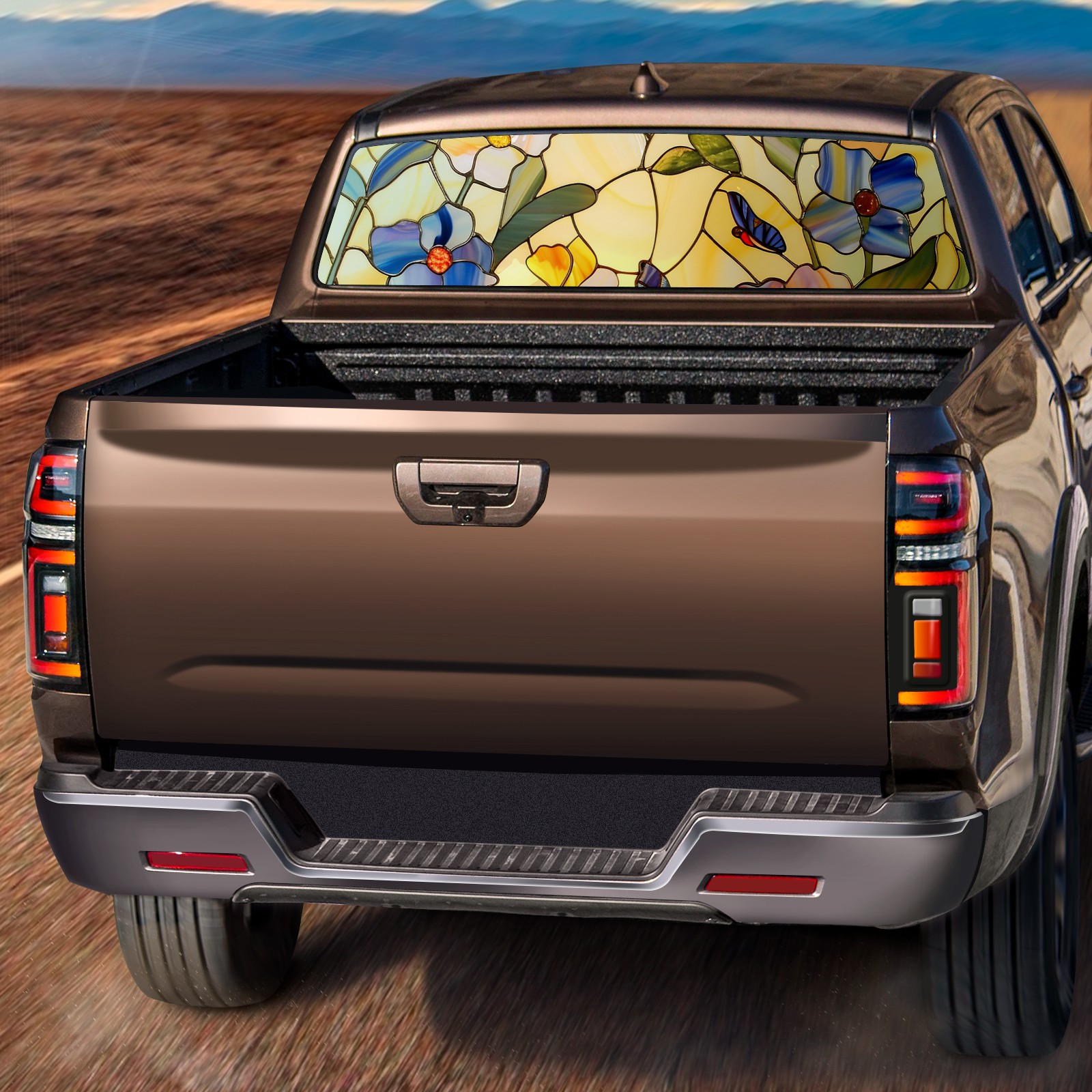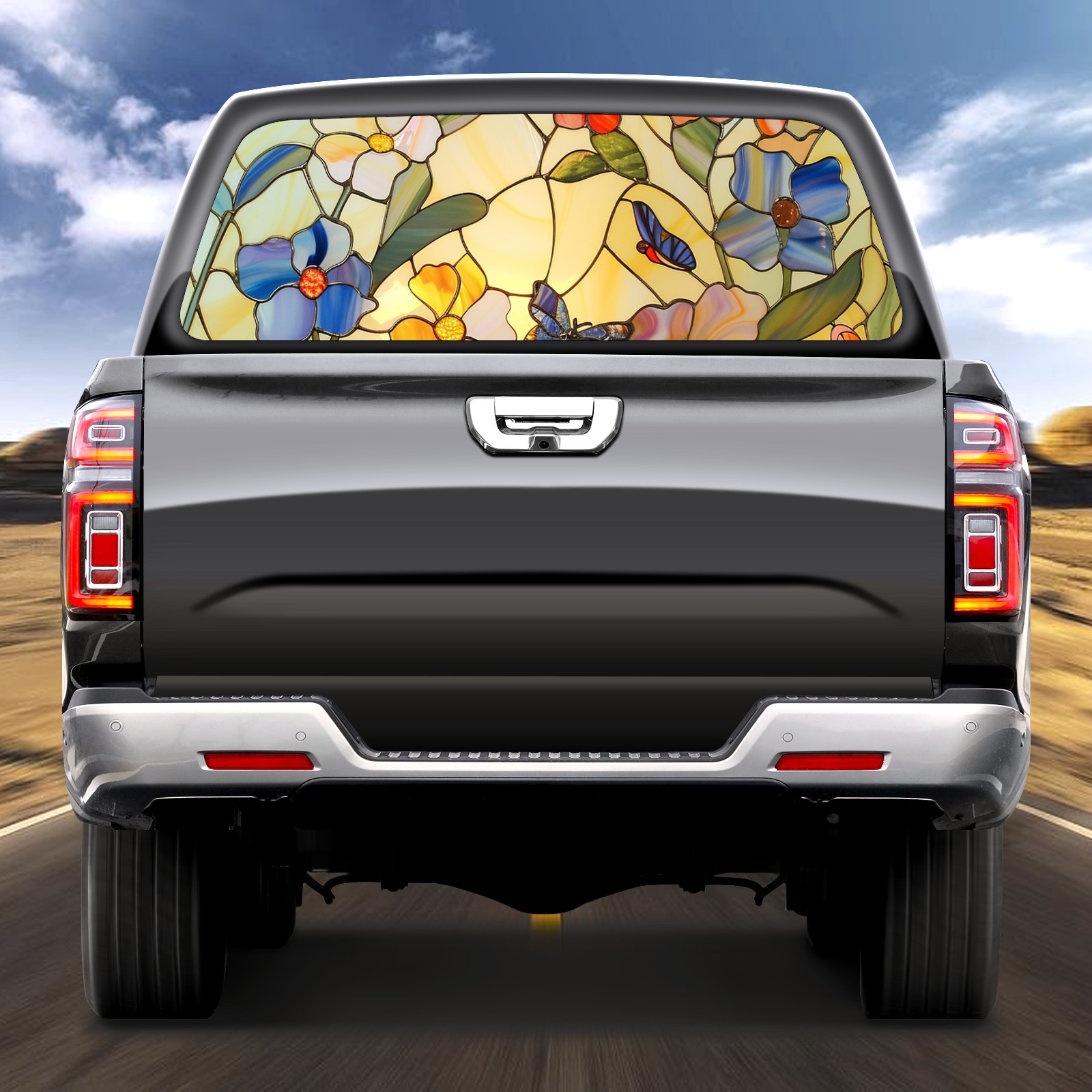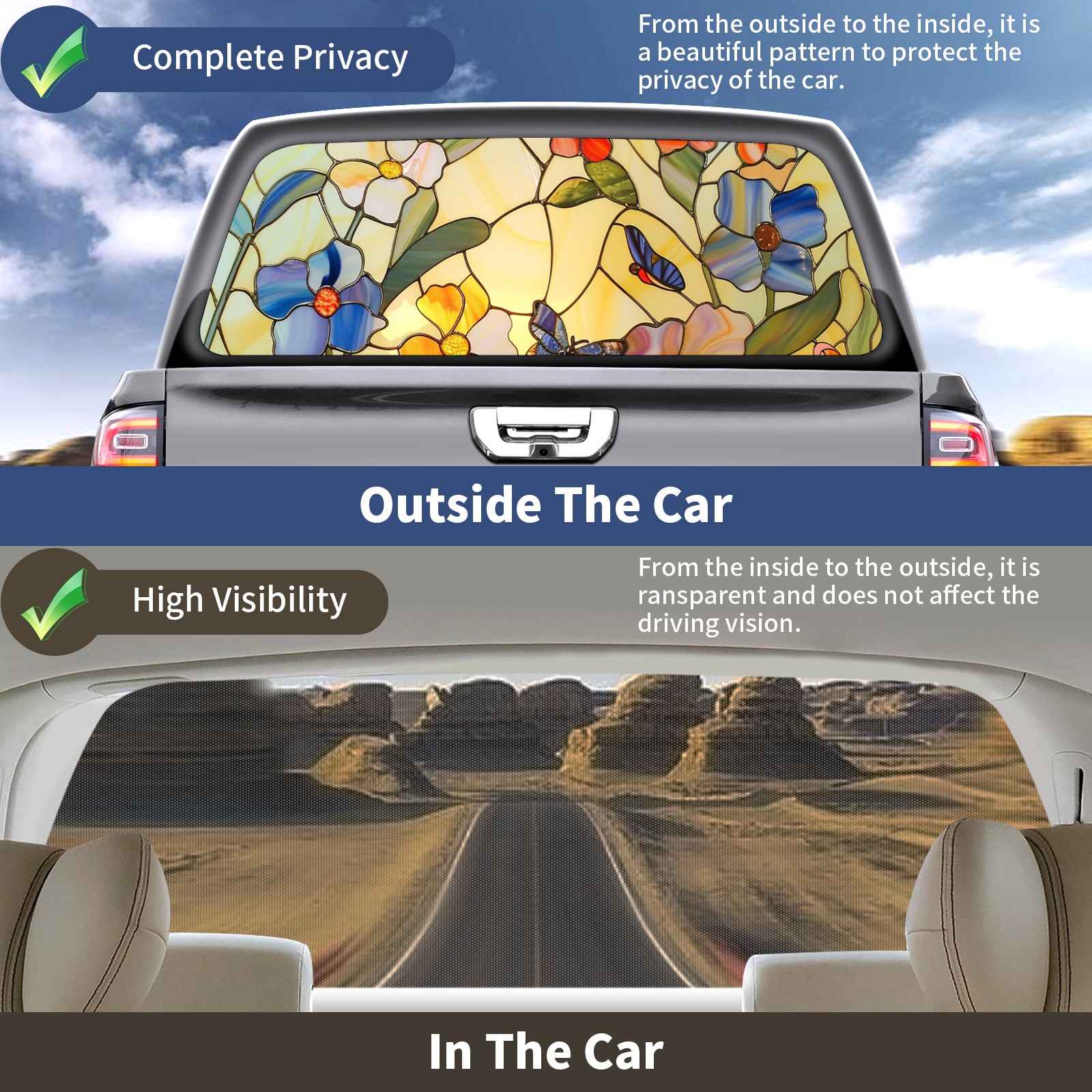Truck Rear Window Graphics Decals Pickup Trucks Back Window Sticker Full Window Film Decal One Way Visual Waterproof Car Rear Tint White Lilies (8)