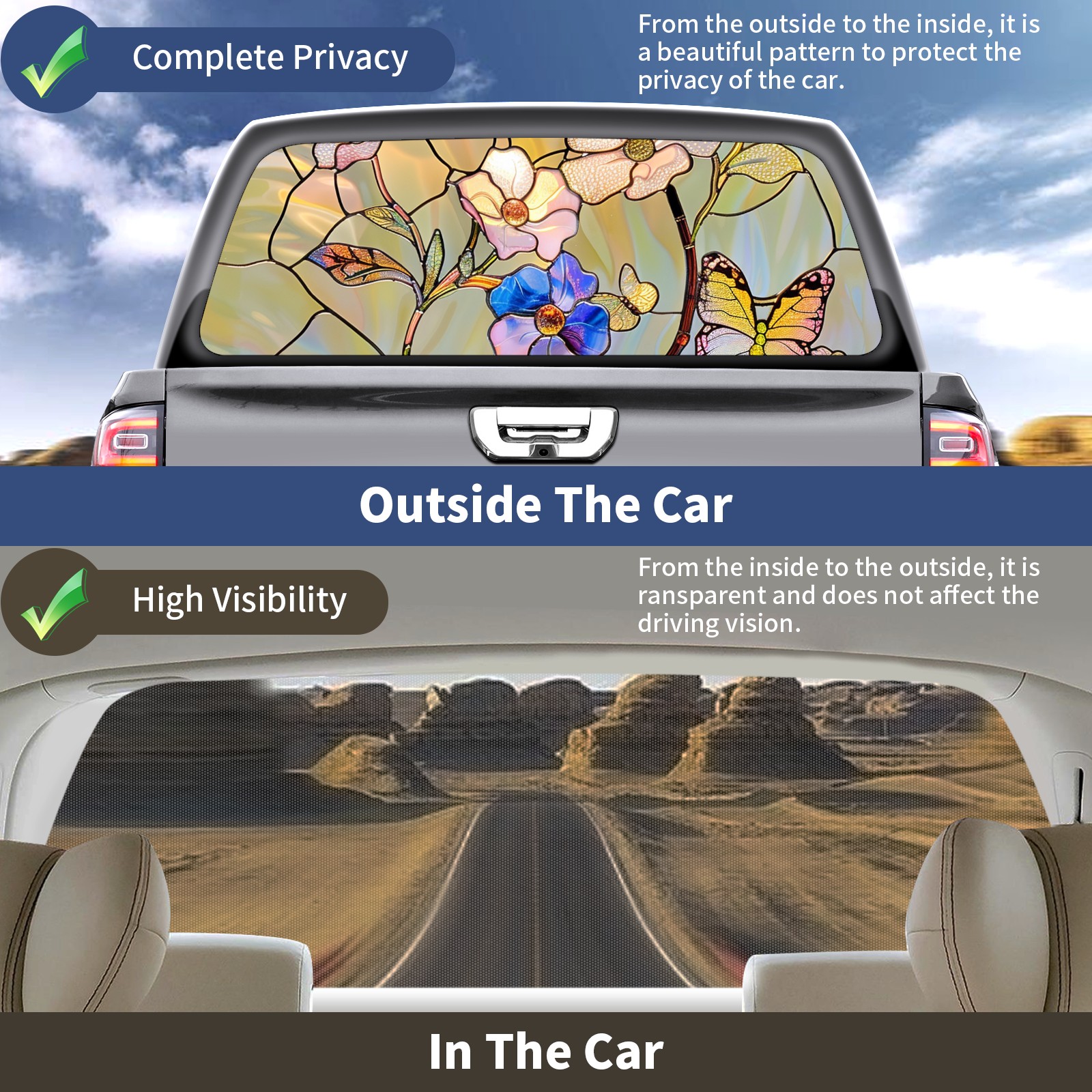 Truck Rear Window Graphics Decals Pickup Trucks Back Window Sticker Full Window Film Decal One Way Visual Waterproof Car Rear Tint White Lilies (6)