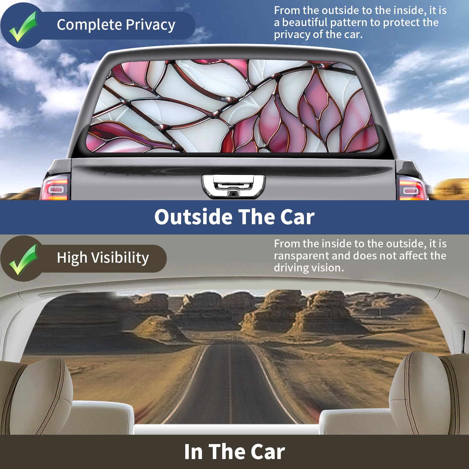 Truck Rear Window Graphics Decals Pickup Trucks Back Window Sticker Full Window Film Decal One Way Visual Waterproof Car Rear Tint Stained Leaves (15)