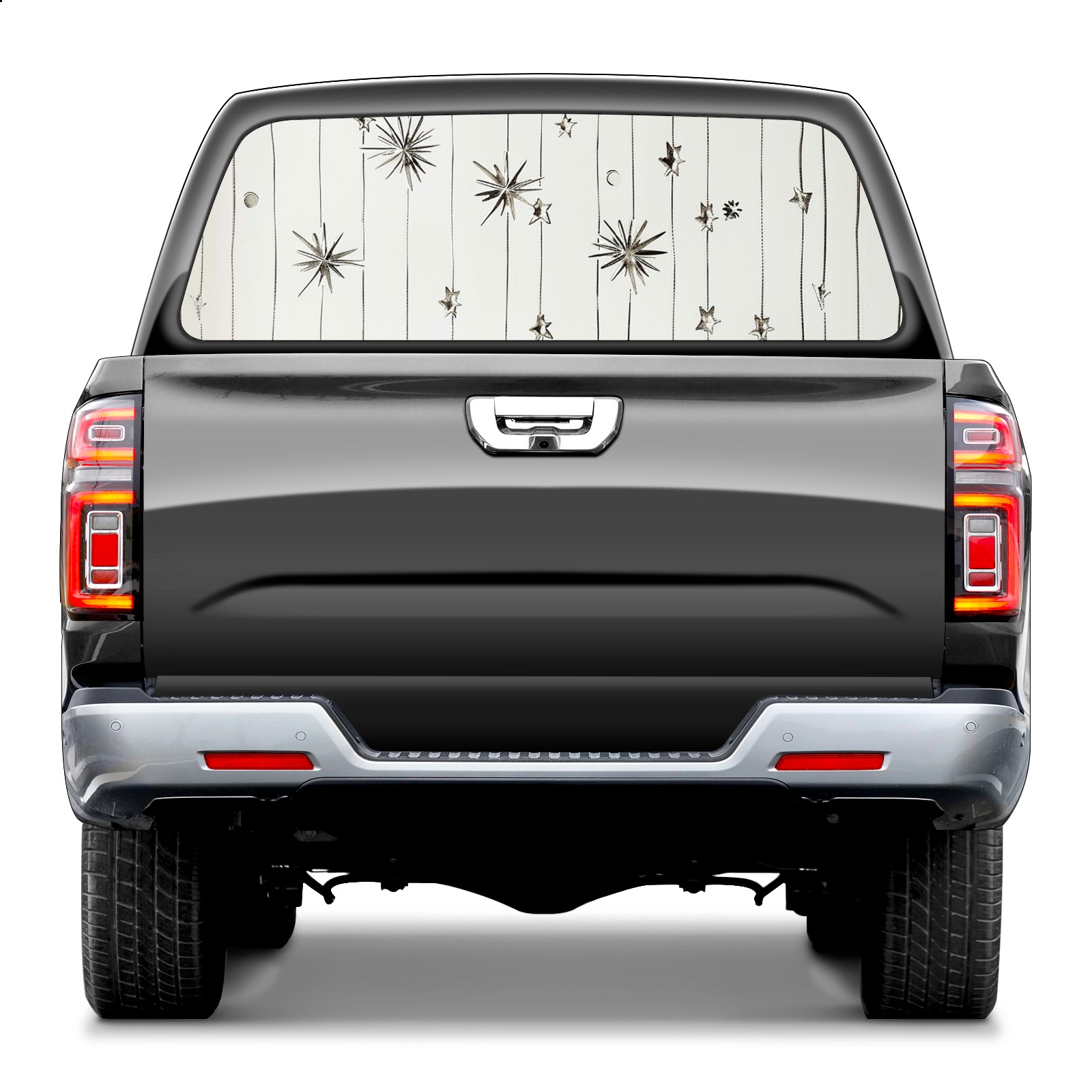 Truck Rear Window Graphics Decals Pickup Trucks Back Window Sticker Full Window Film Decal One Way Visual Waterproof Car Rear Tint Stardust Silver (6)
