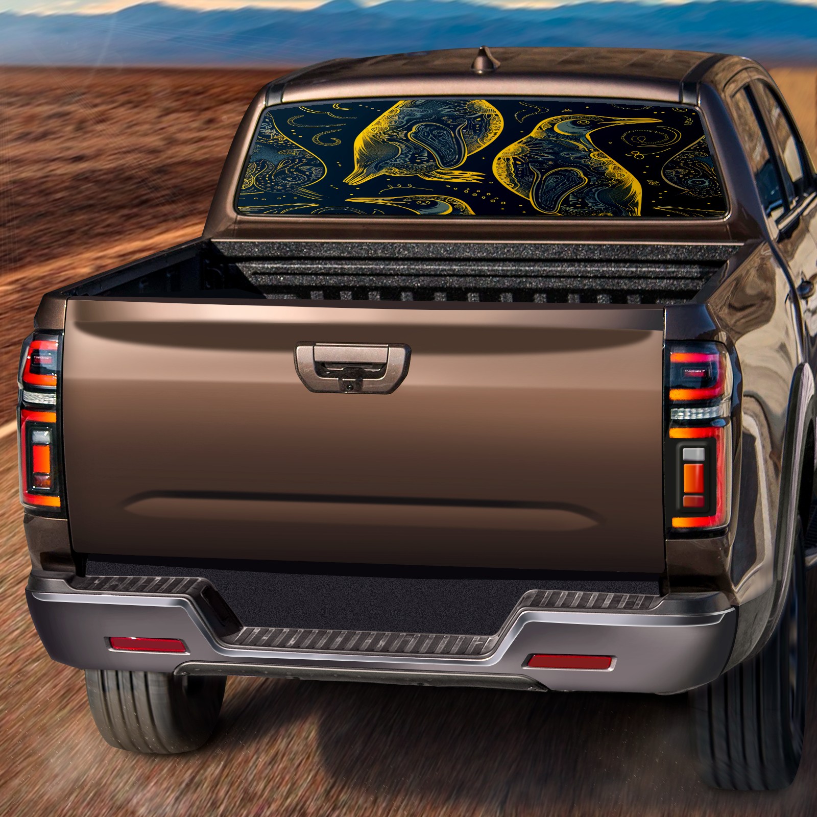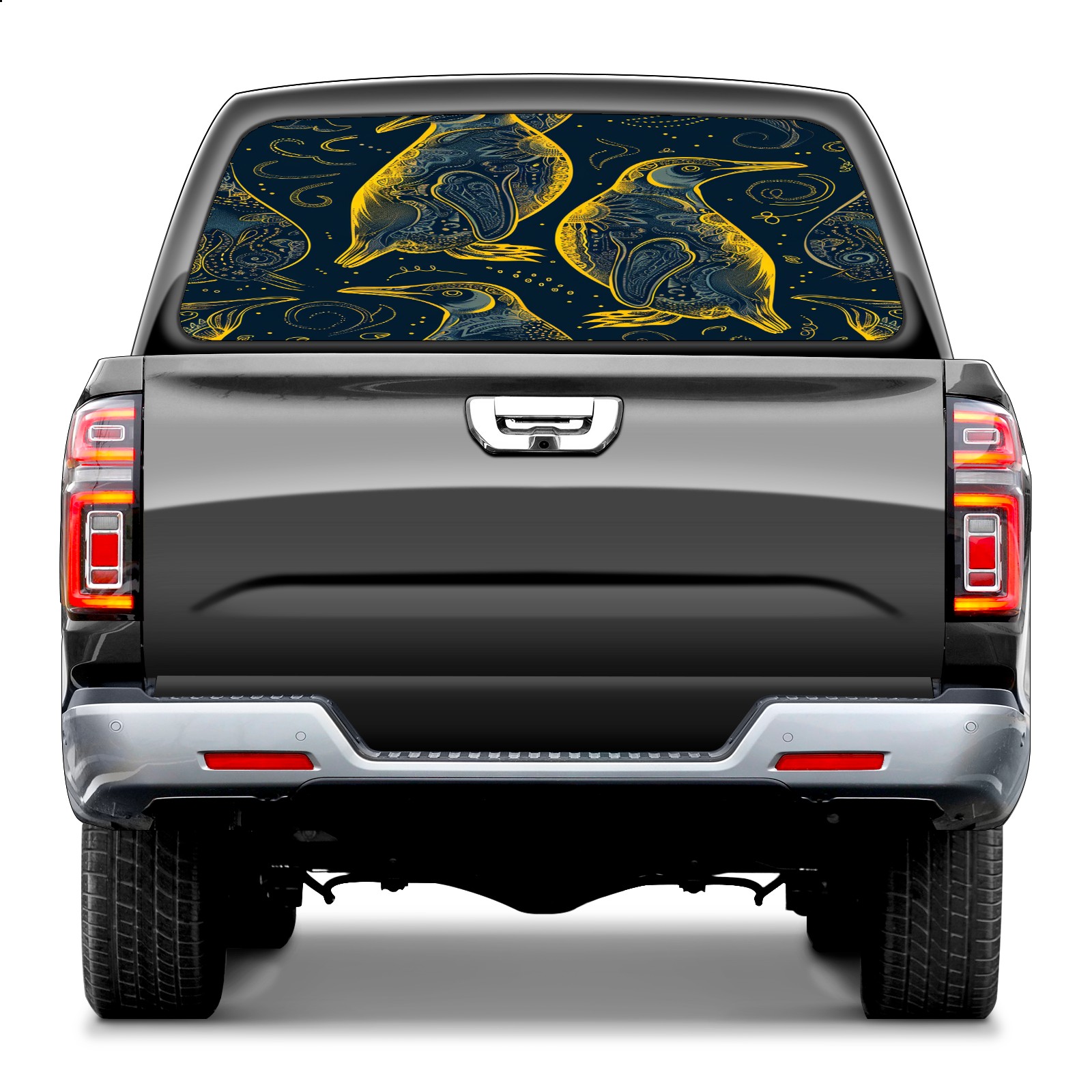 Truck Rear Window Graphics Decals Pickup Trucks Back Window Sticker Full Window Film Decal One Way Visual Waterproof Car Rear Tint Penguin (25)