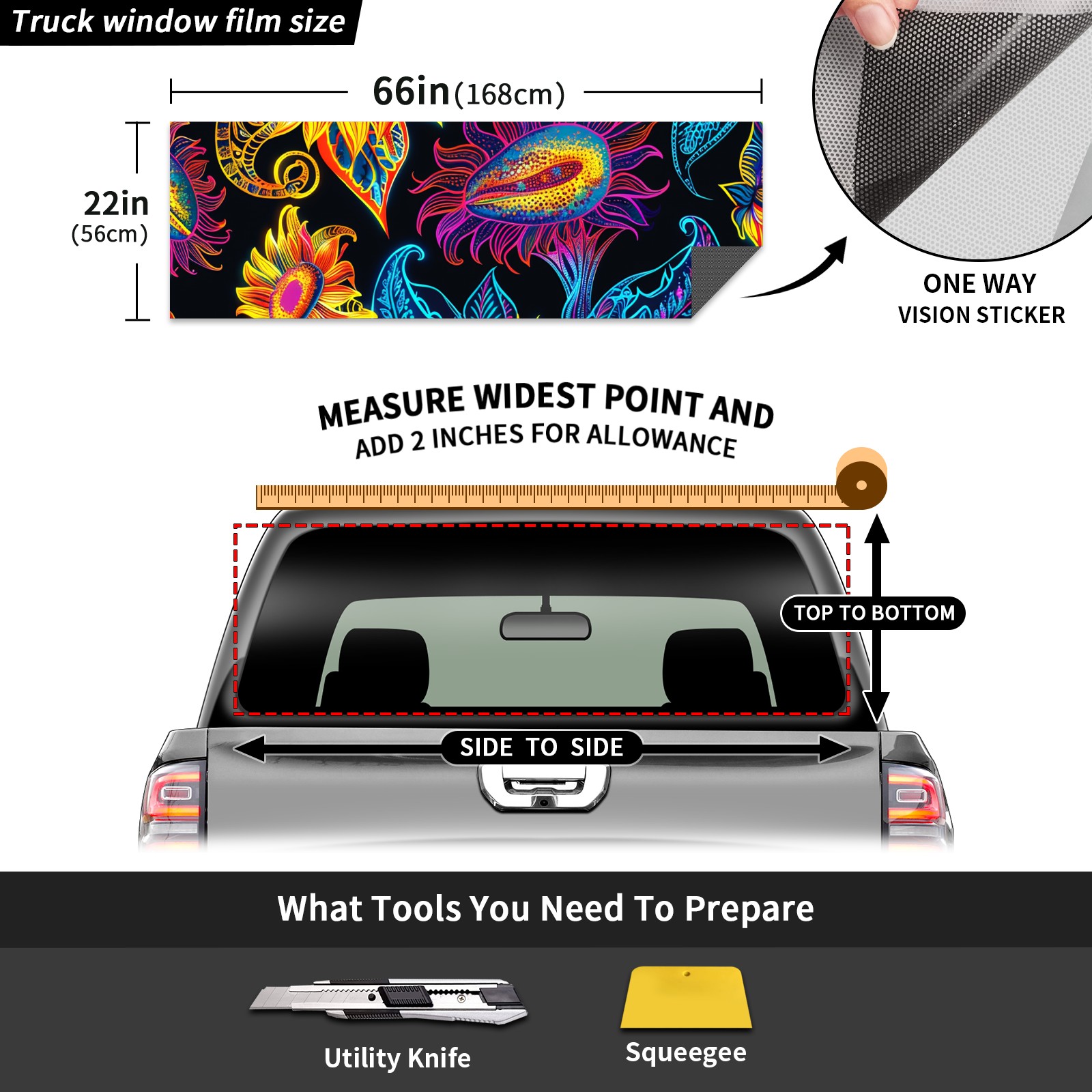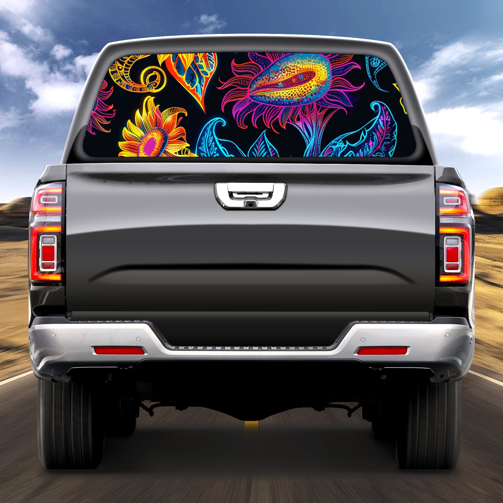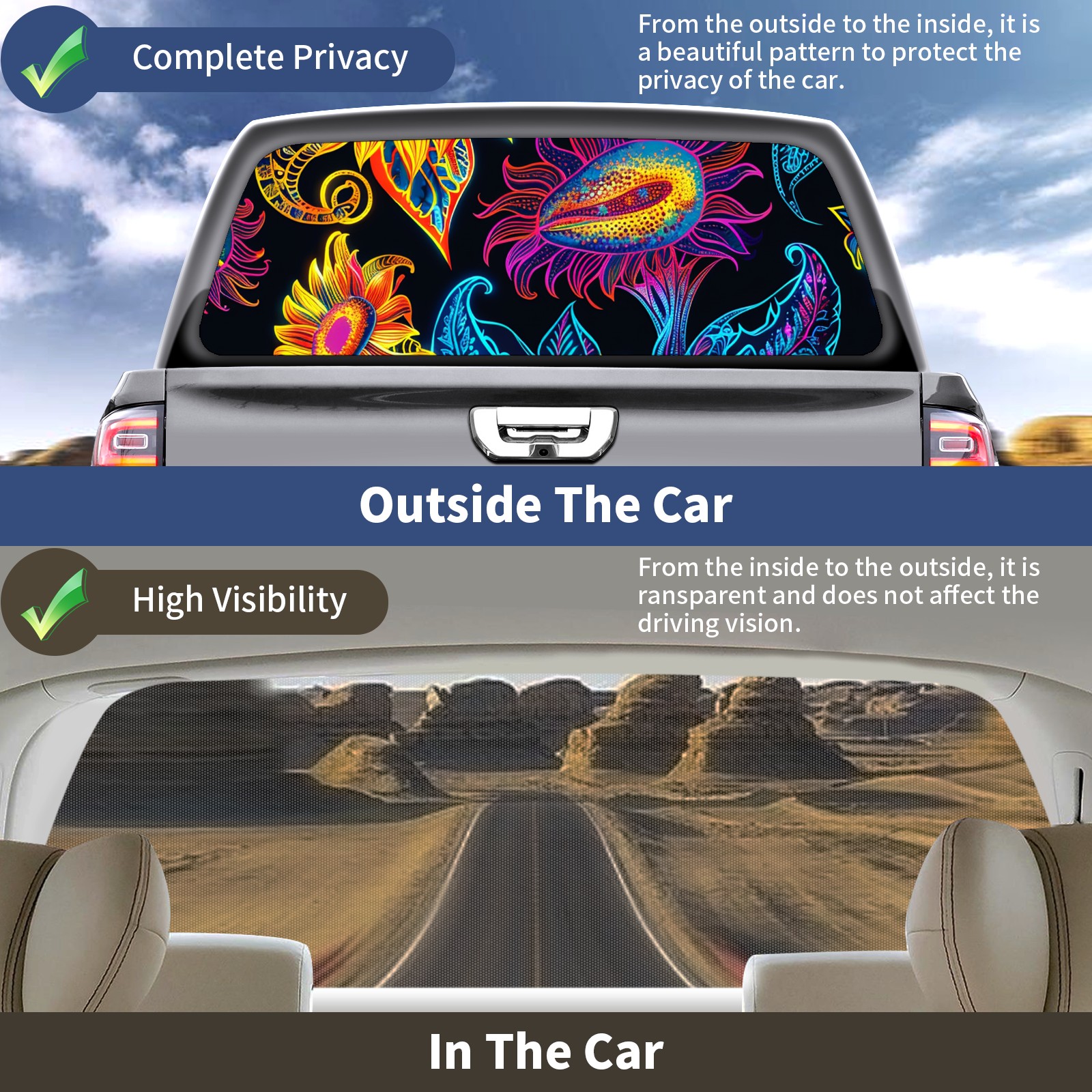 Truck Rear Window Graphics Decals Pickup Trucks Back Window Sticker Full Window Film Decal One Way Visual Waterproof Car Rear Tint Sunflower (51)