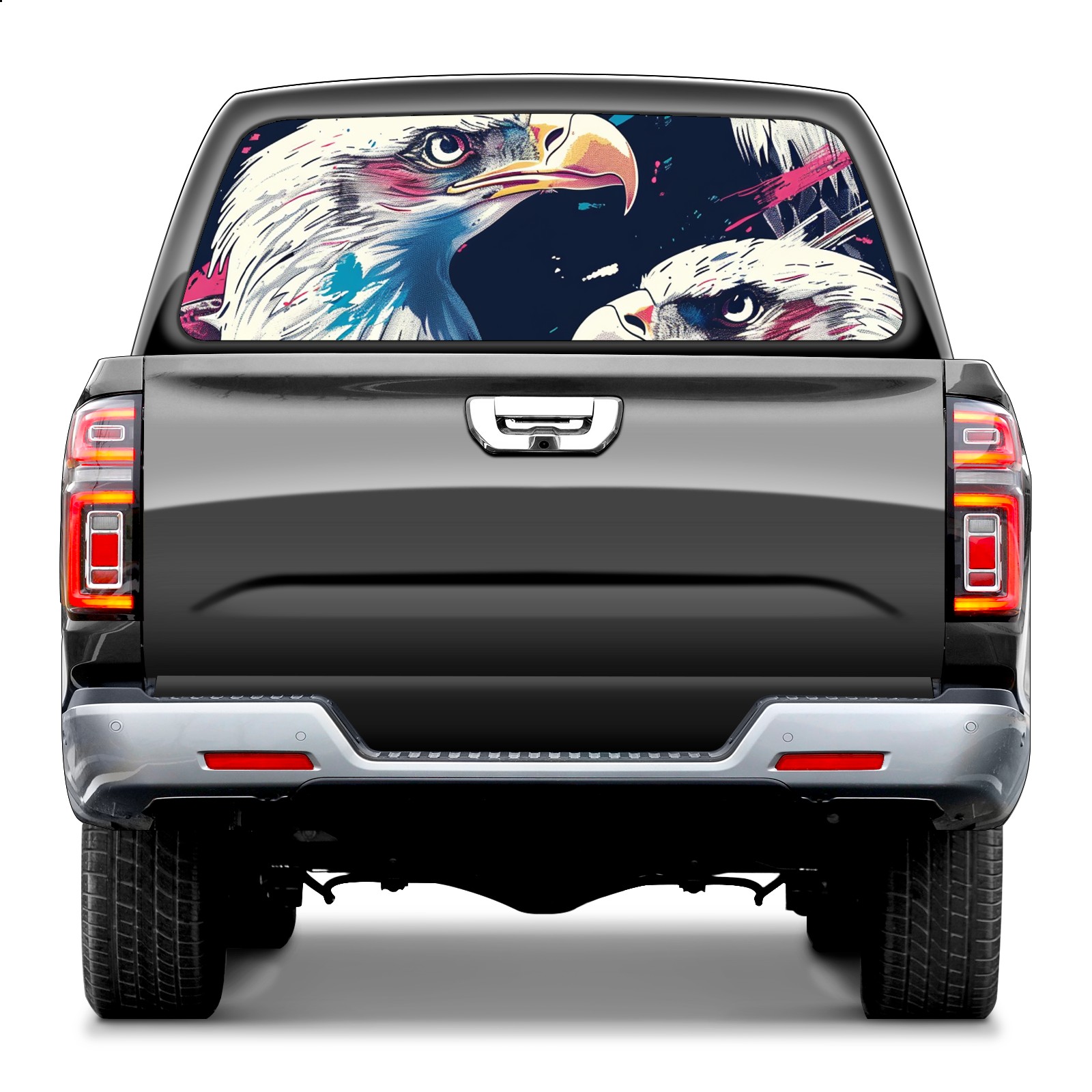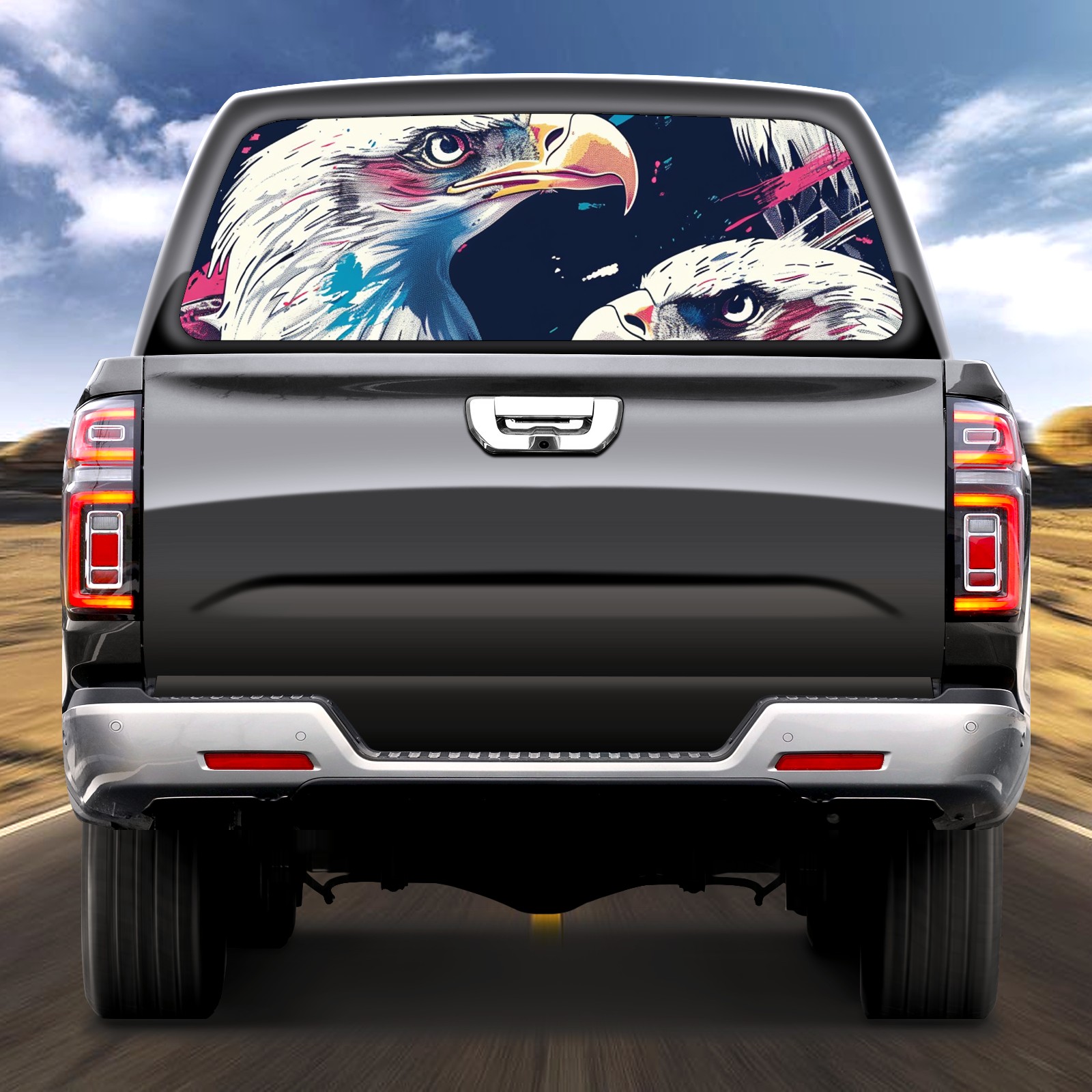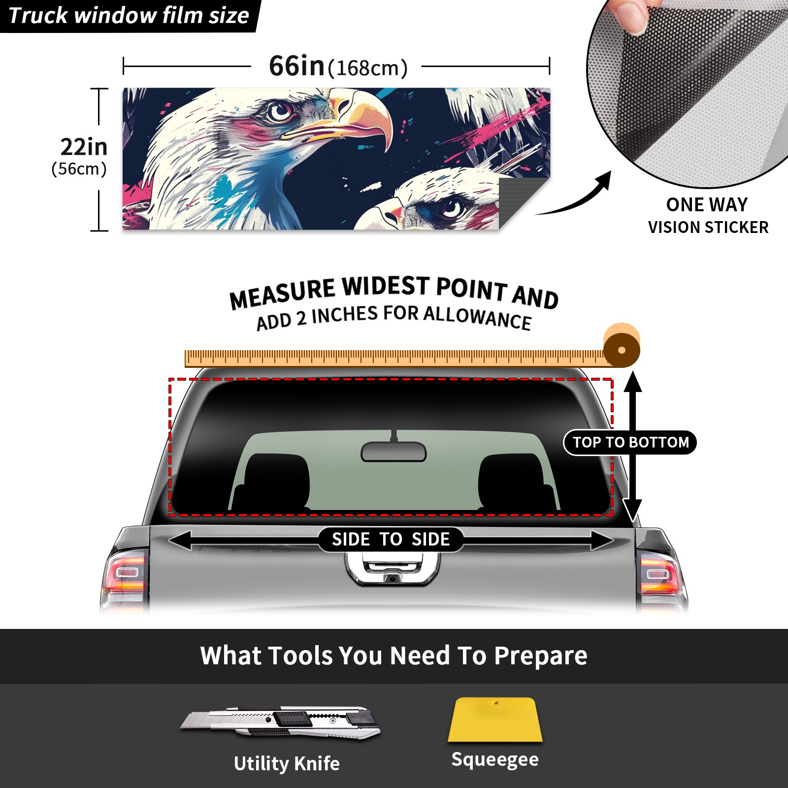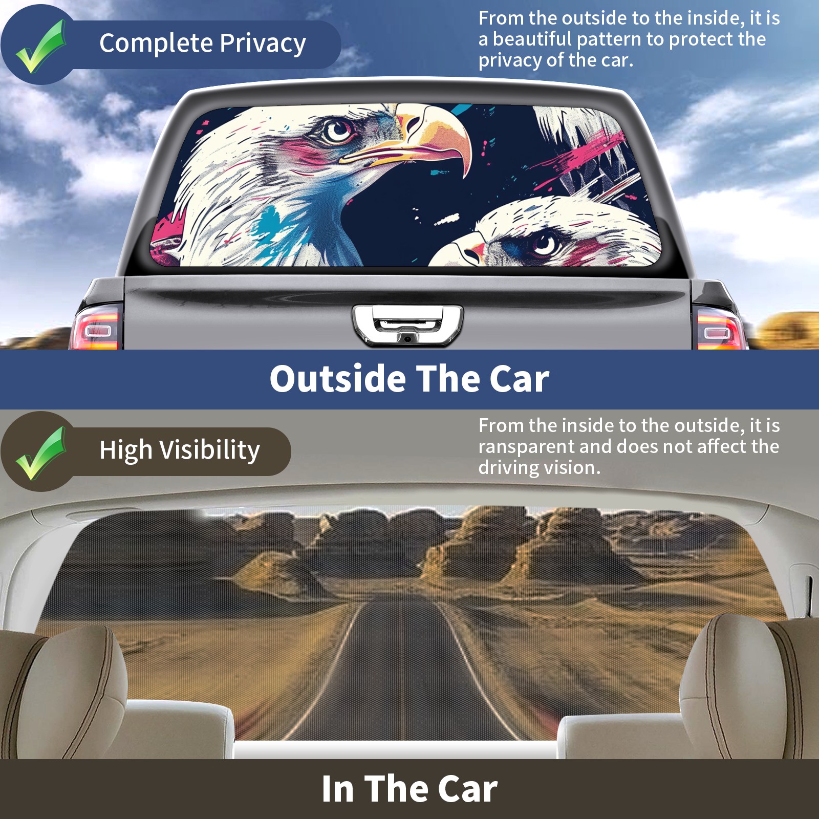 Truck Rear Window Graphics Decals Pickup Trucks Back Window Sticker Full Window Film Decal One Way Visual Waterproof Car Rear Tint Bald Eagle (5)