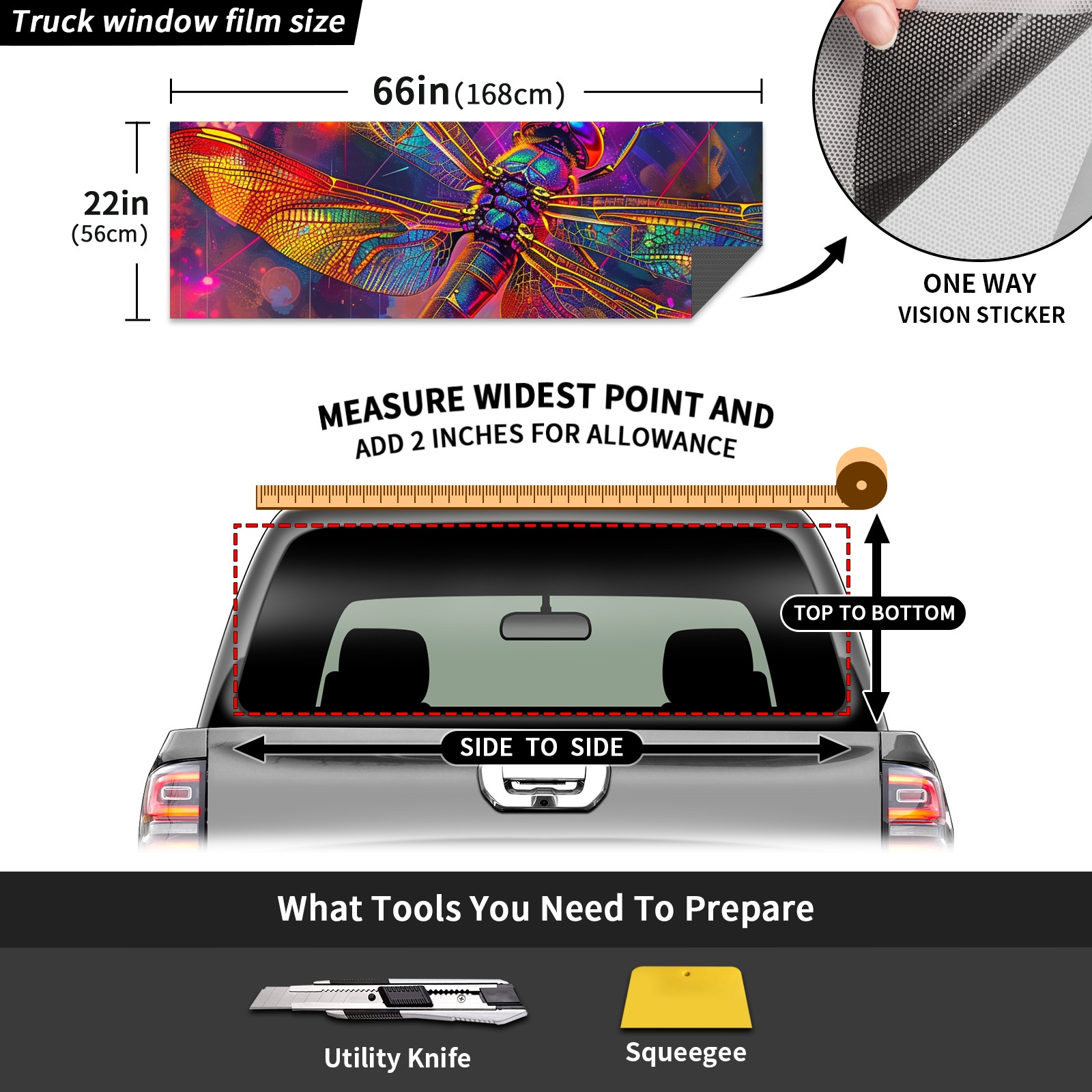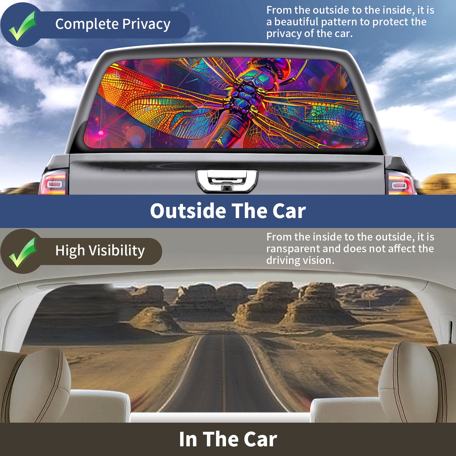 Truck Rear Window Graphics Decals Pickup Trucks Back Window Sticker Full Window Film Decal One Way Visual Waterproof Car Rear Tint Dragonfly (37)