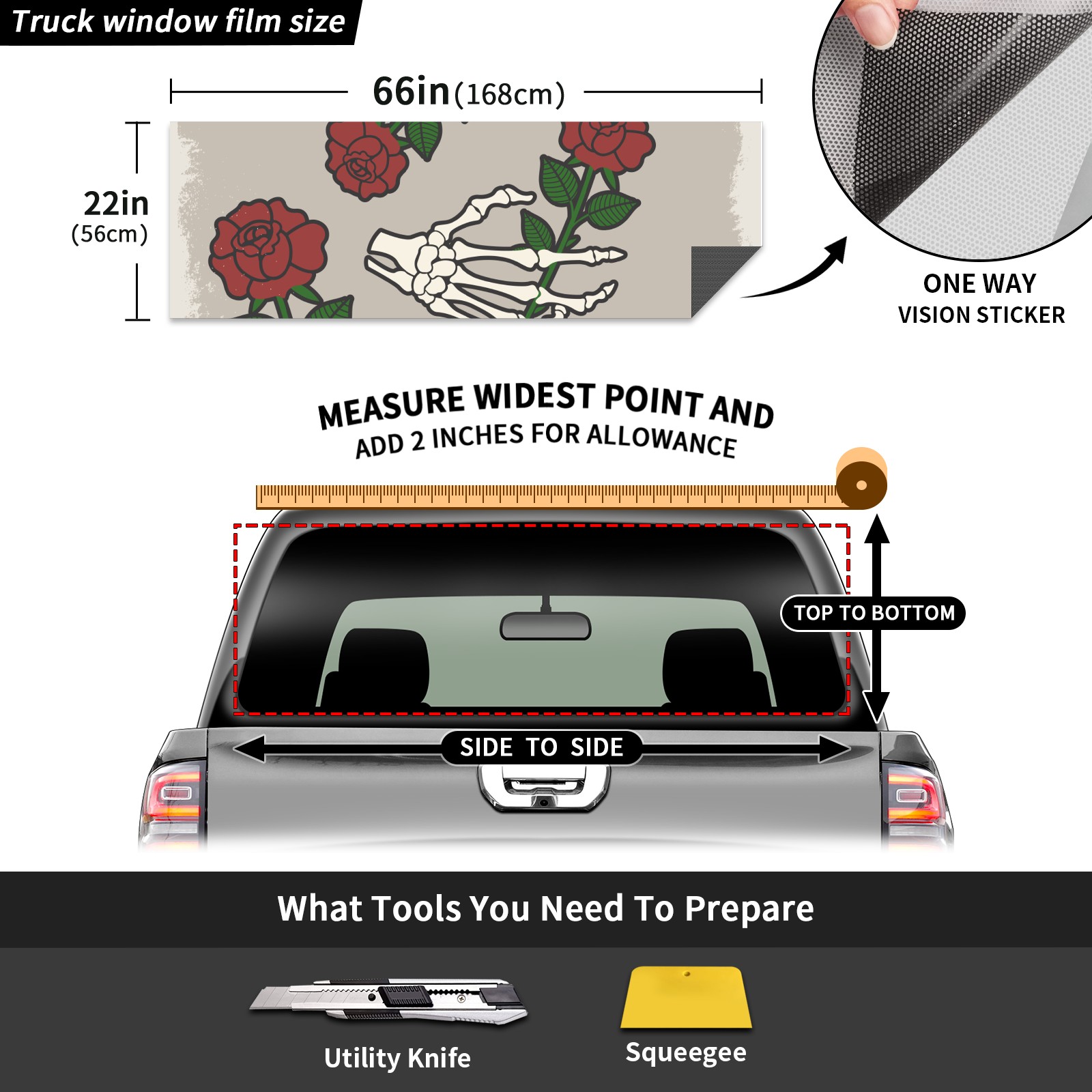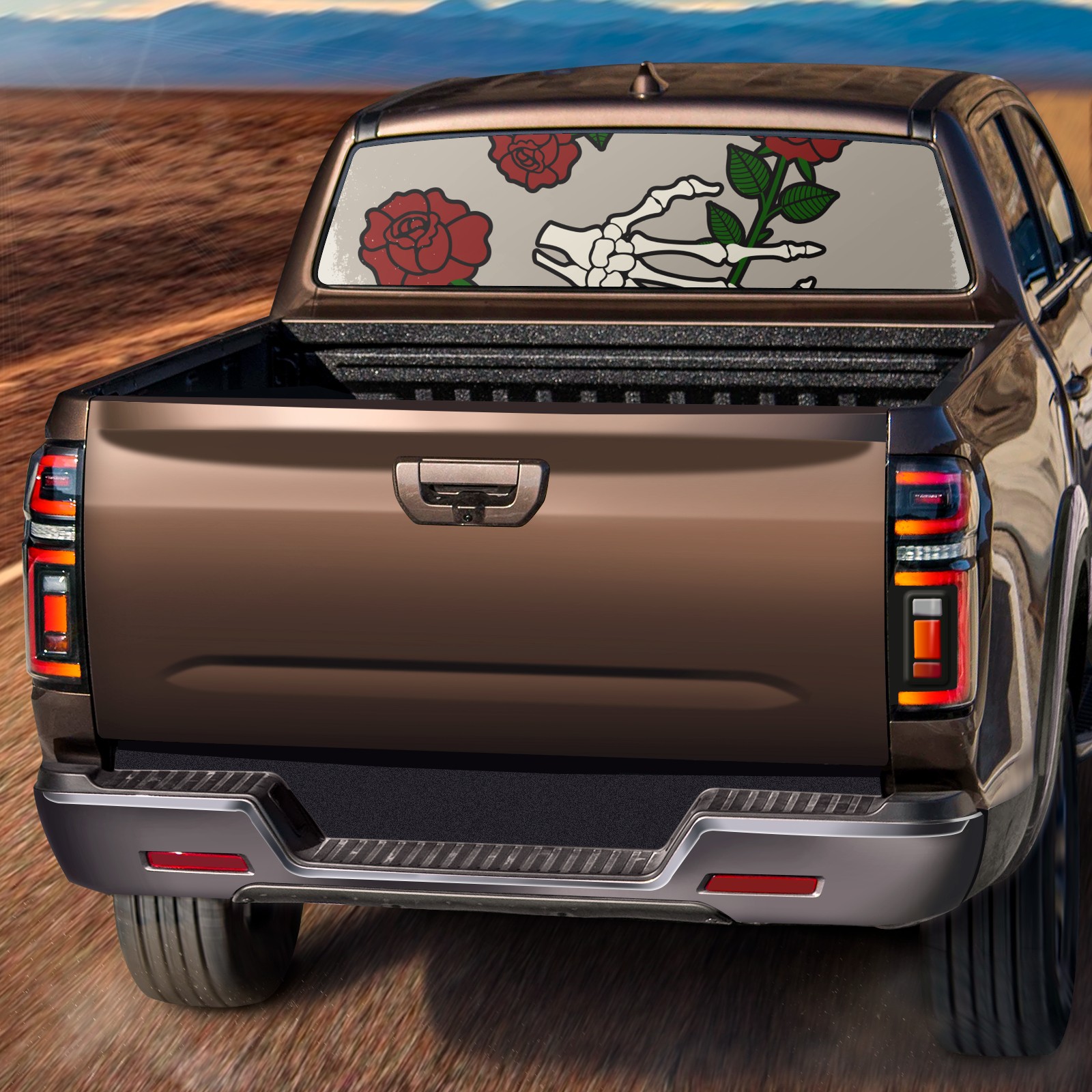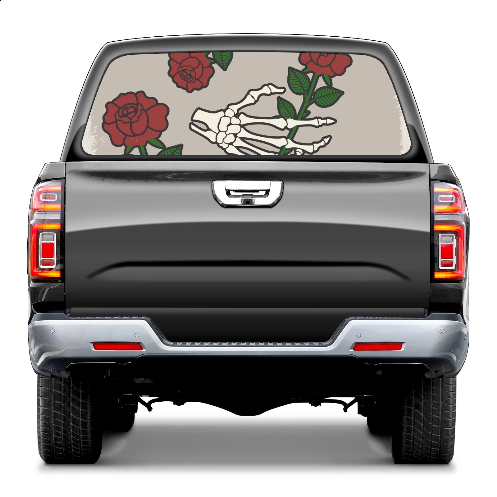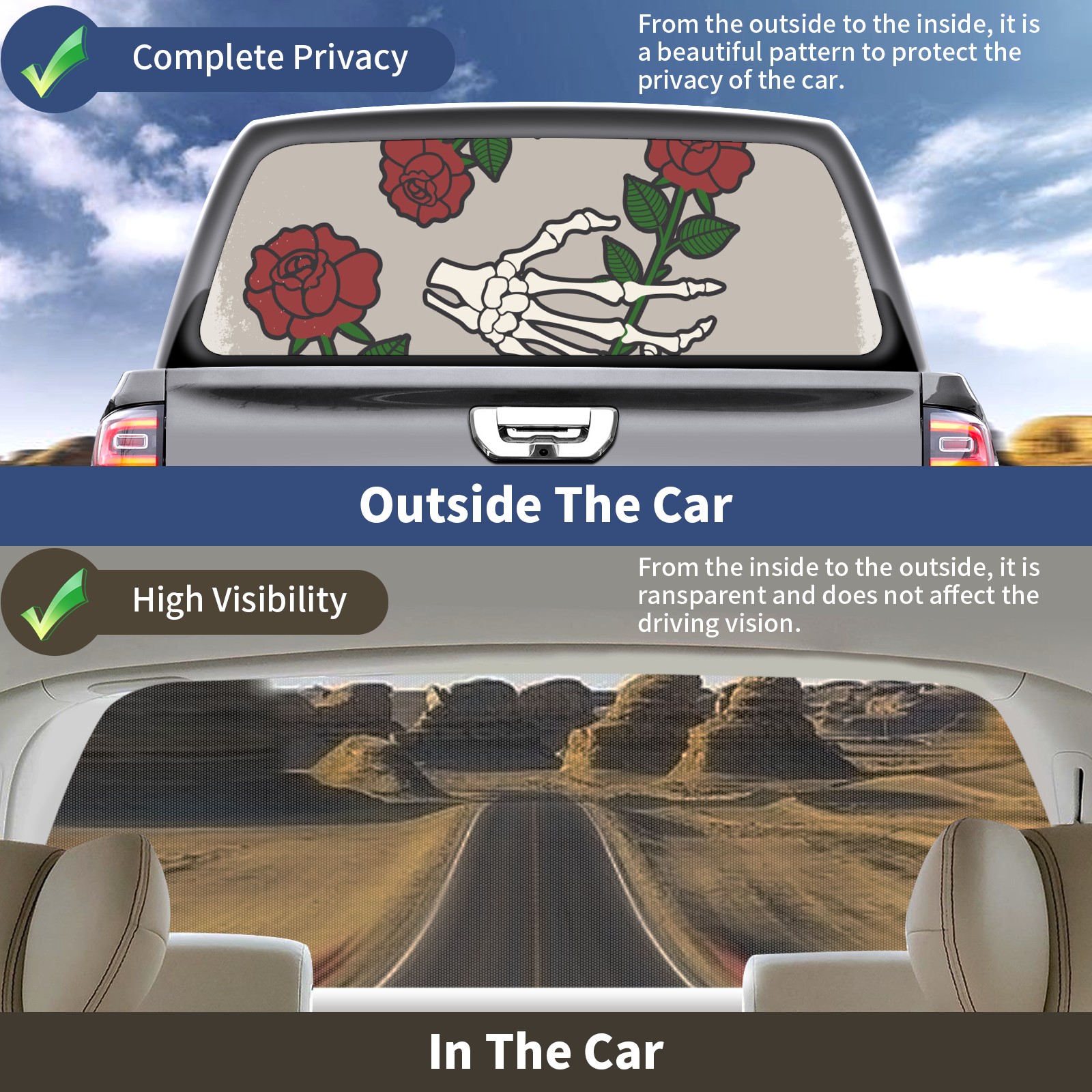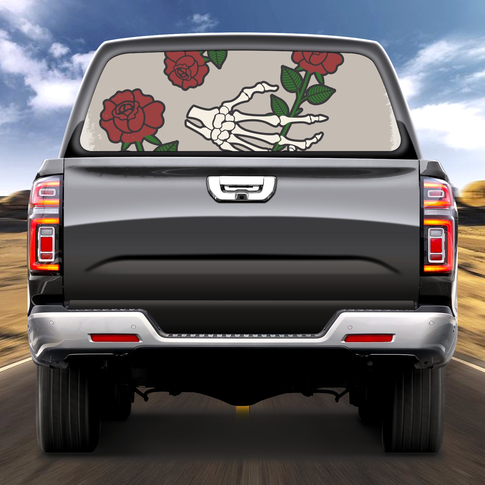 Truck Rear Window Graphics Decals Pickup Trucks Back Window Sticker Full Window Film Decal One Way Visual Waterproof Car Rear Tint skull hand rose
