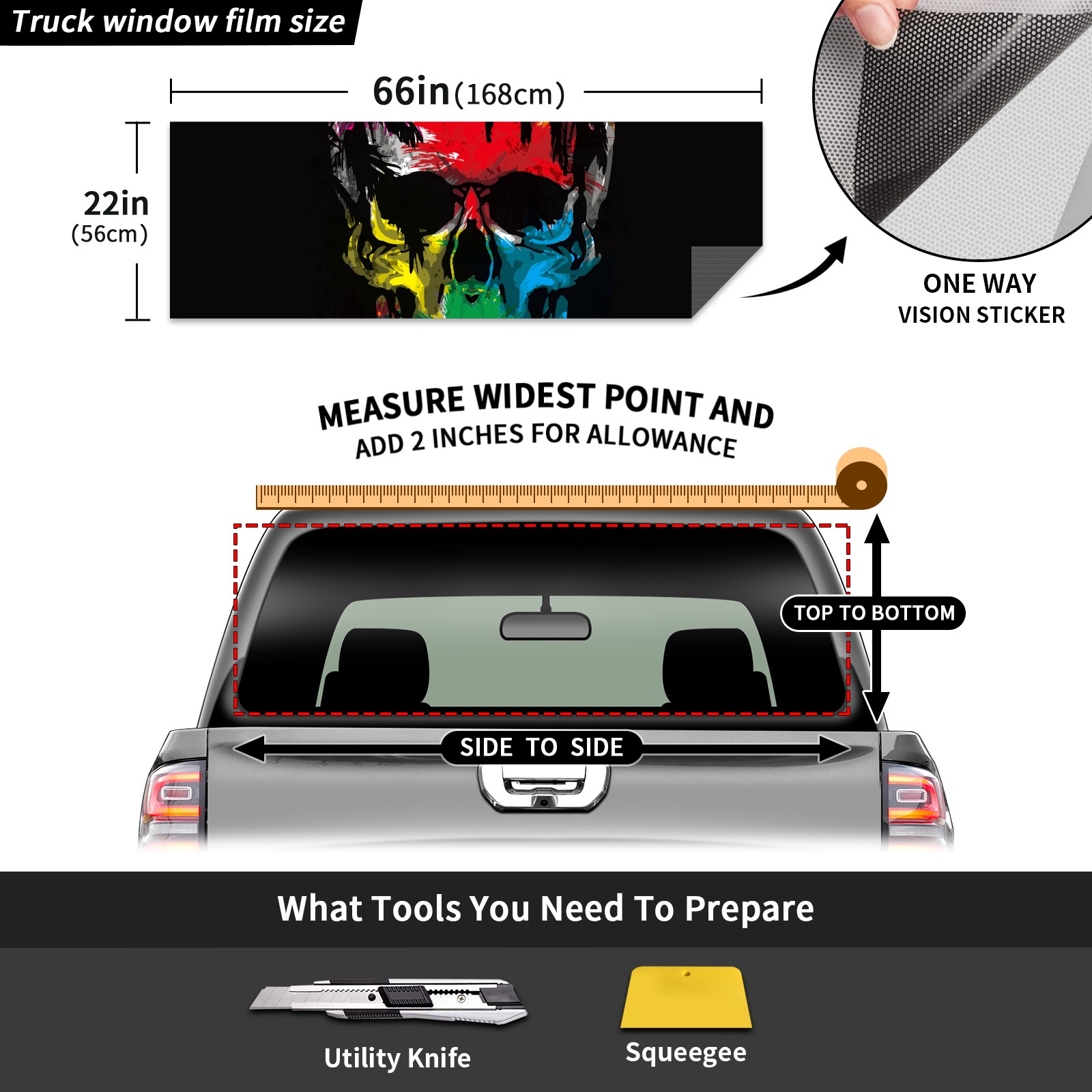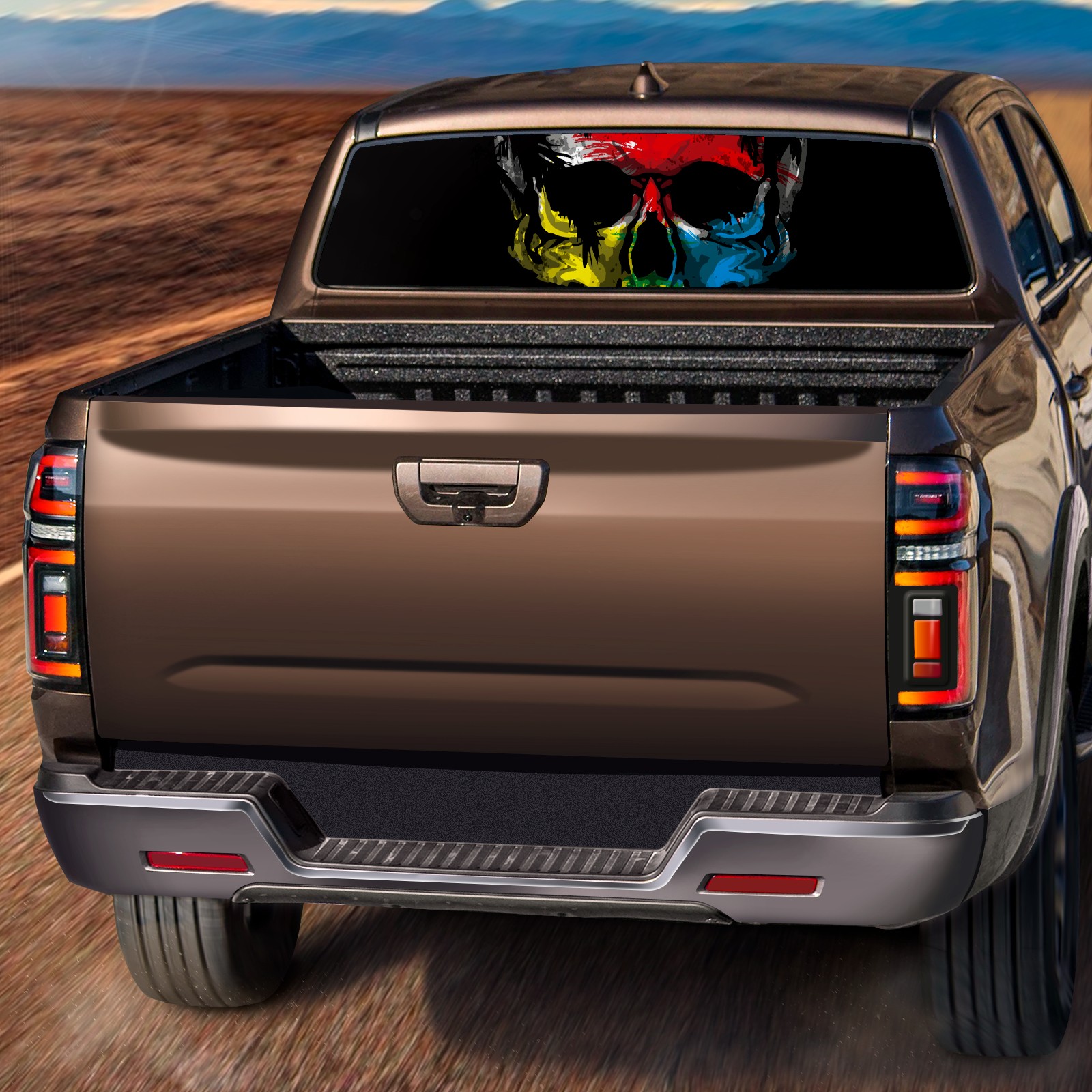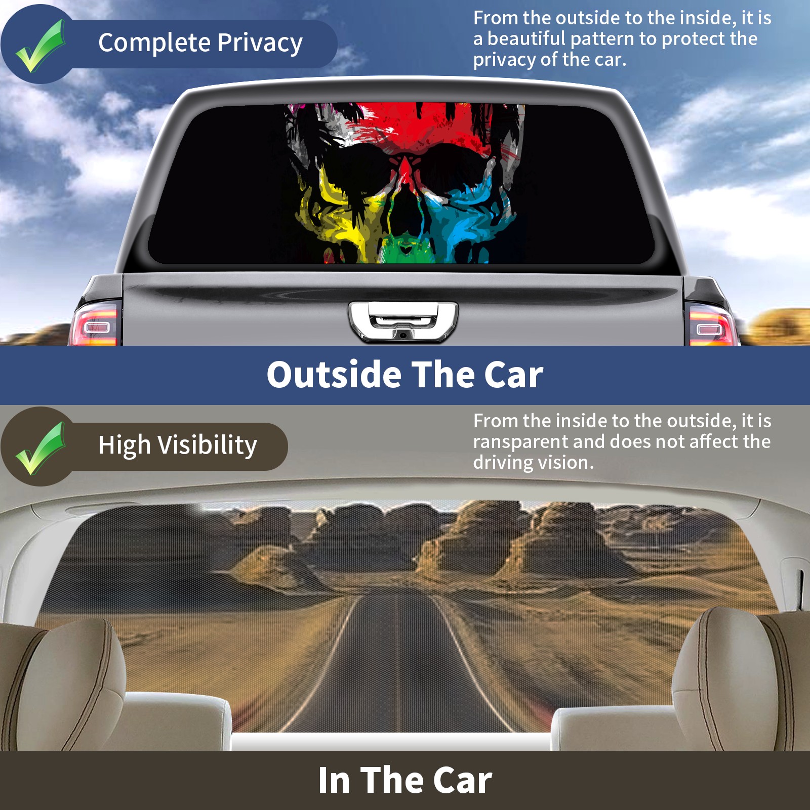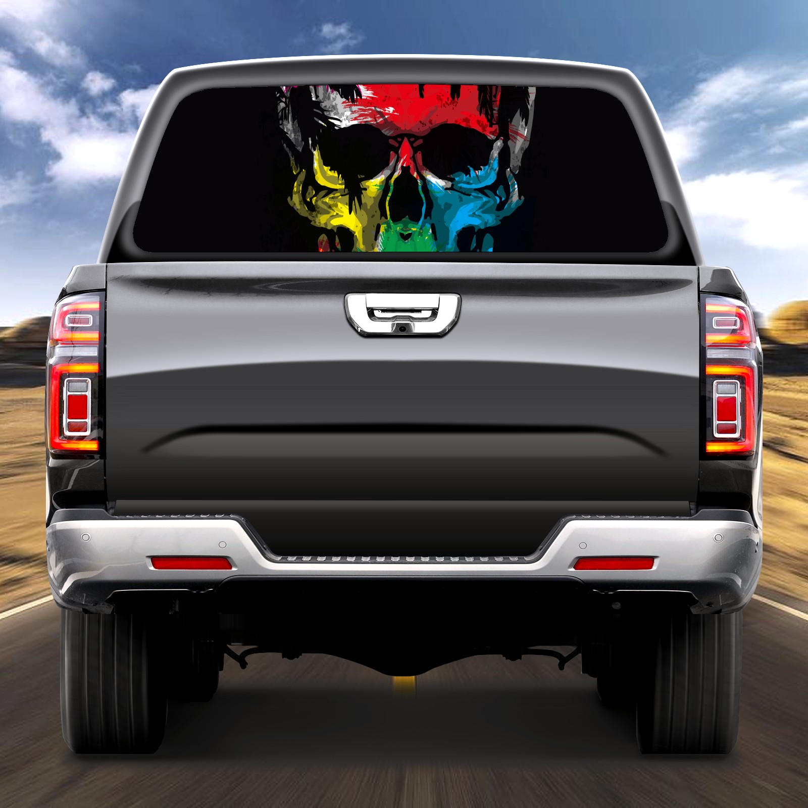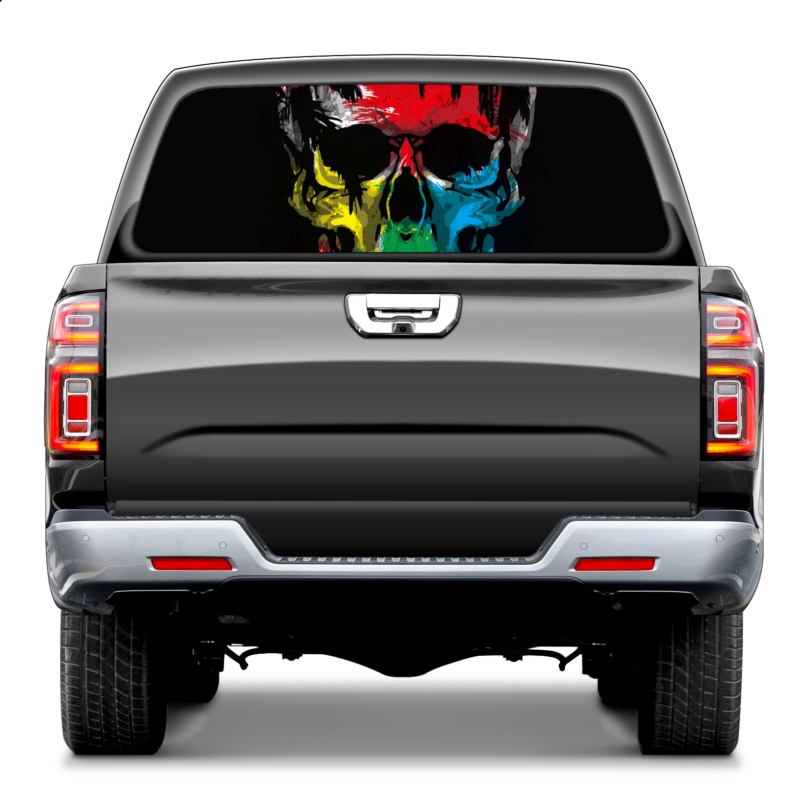 Truck Rear Window Graphics Decals Pickup Trucks Back Window Sticker Full Window Film Decal One Way Visual Waterproof Car Rear Tint skull color