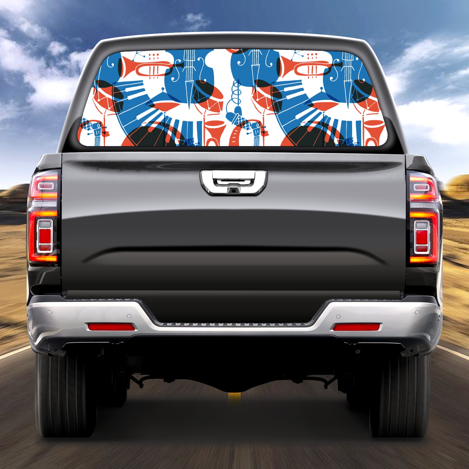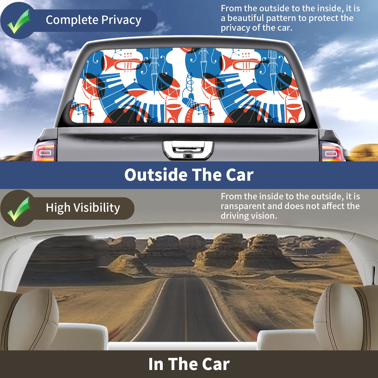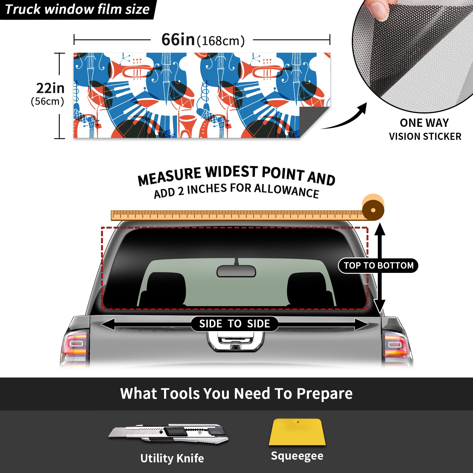 Truck Rear Window Graphics Decals Pickup Trucks Back Window Sticker Full Window Film Decal One Way Visual Waterproof Car Rear Tint Musical Instruments
