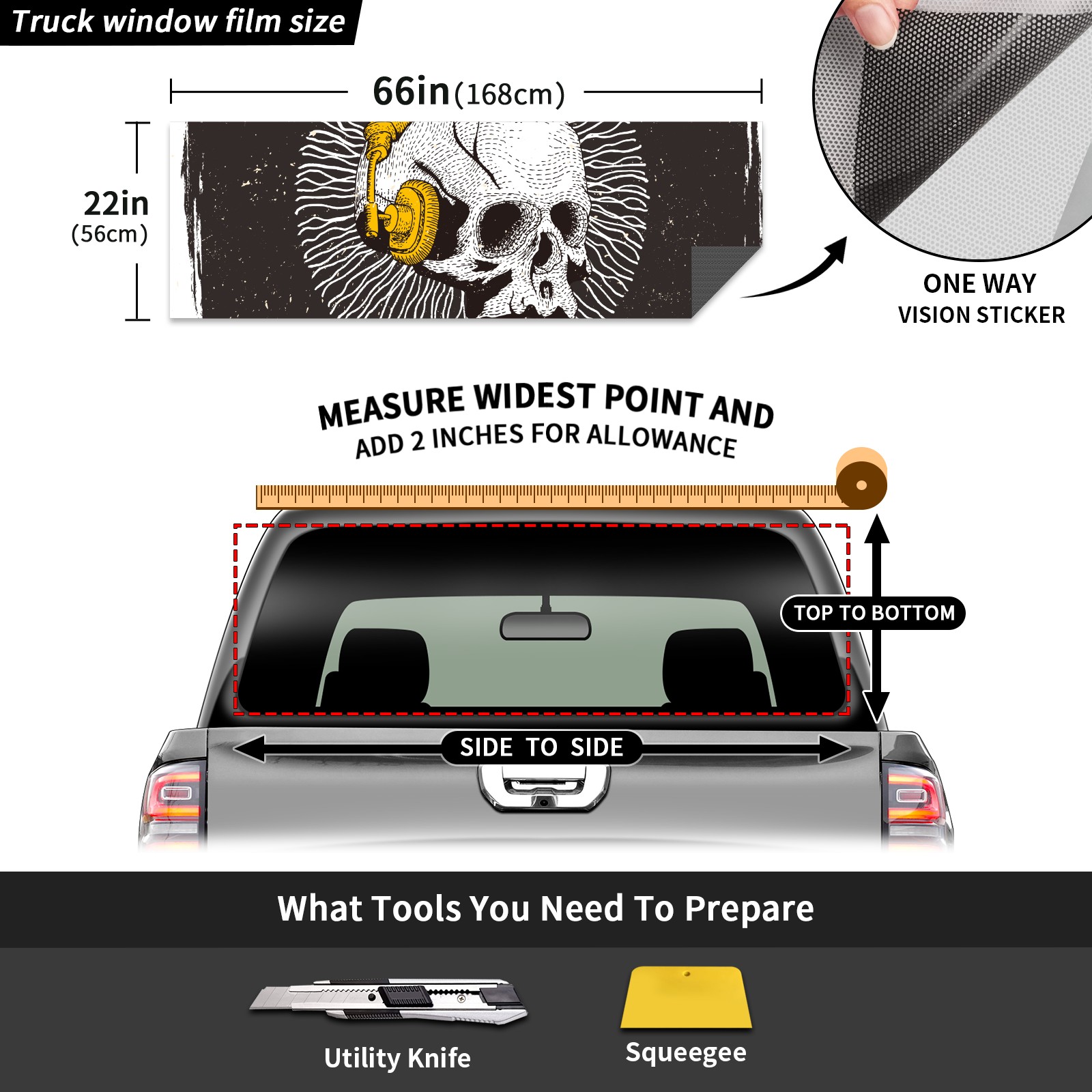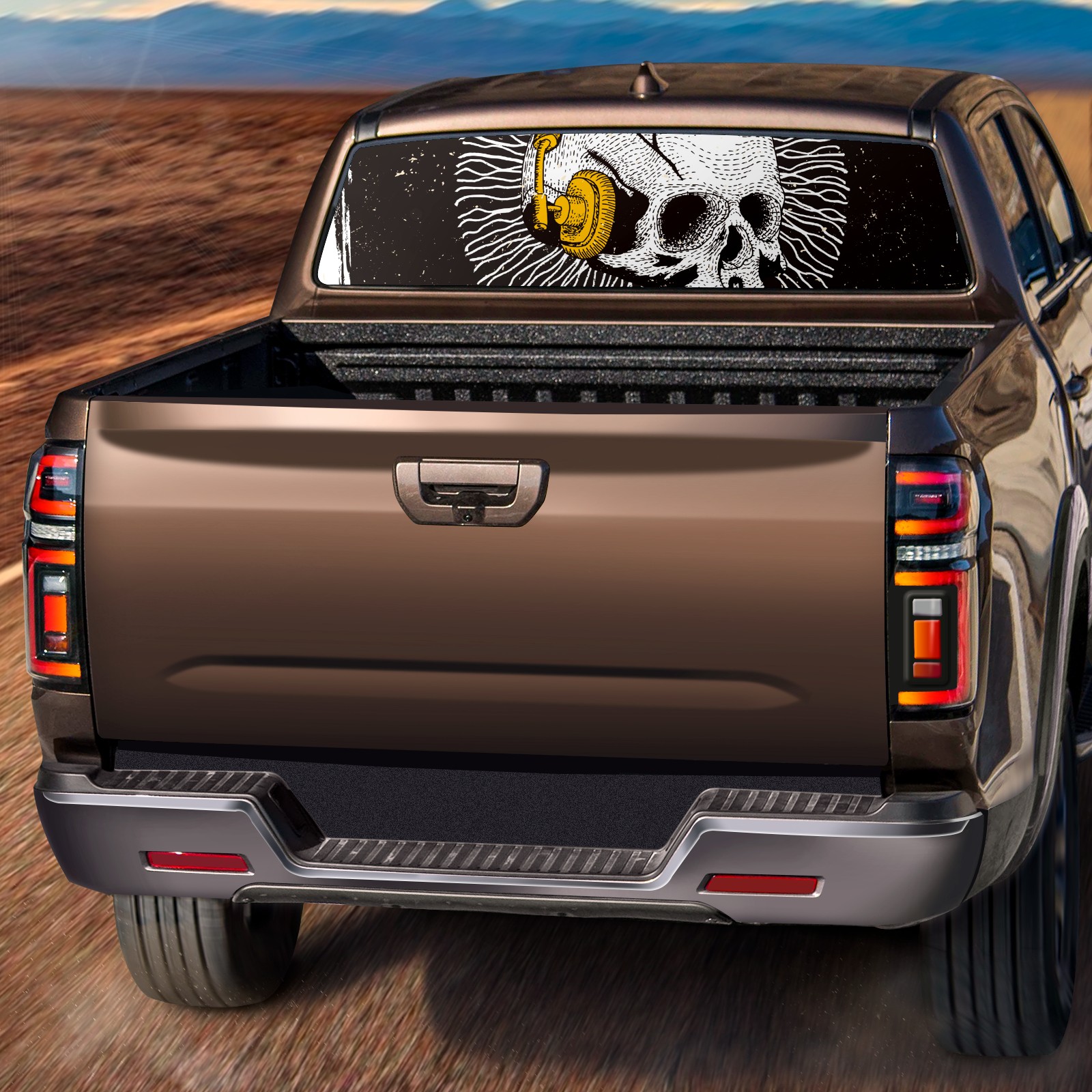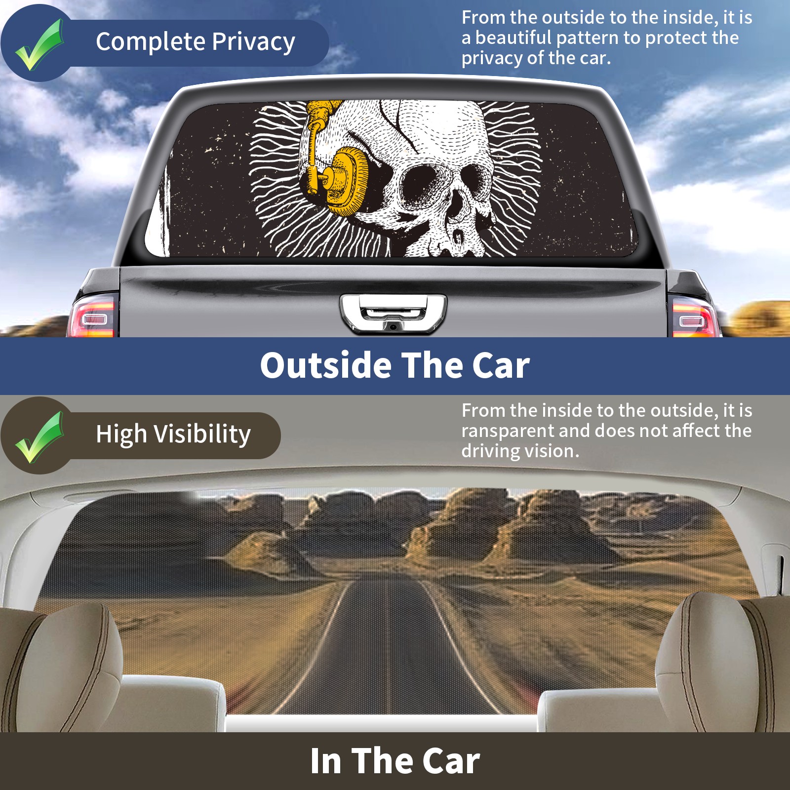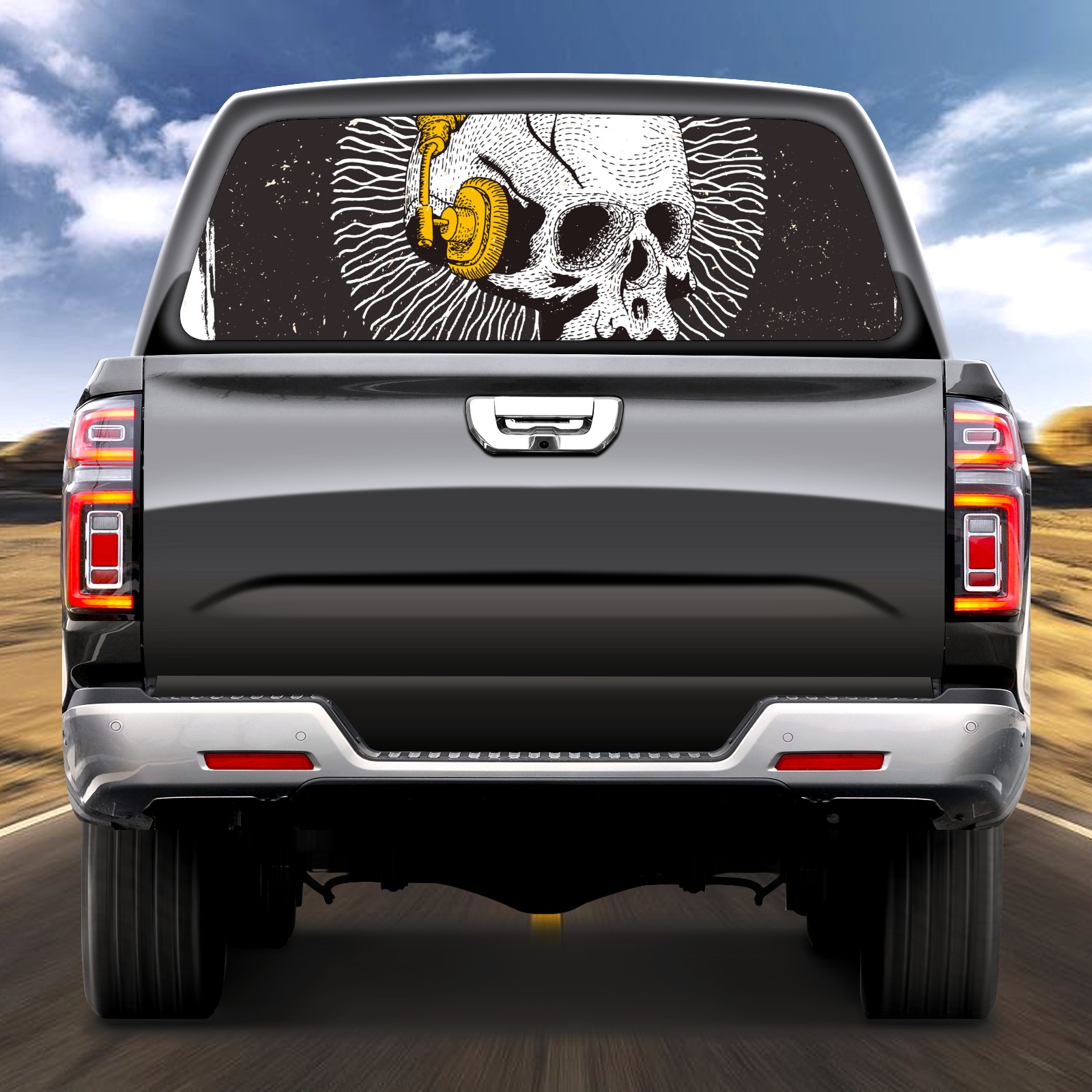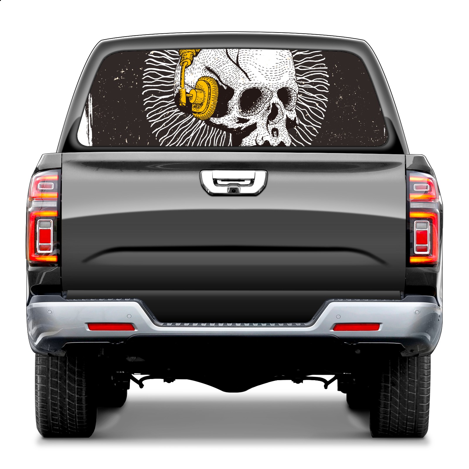 Truck Rear Window Graphics Decals Pickup Trucks Back Window Sticker Full Window Film Decal One Way Visual Waterproof Car Rear Tint music skull
