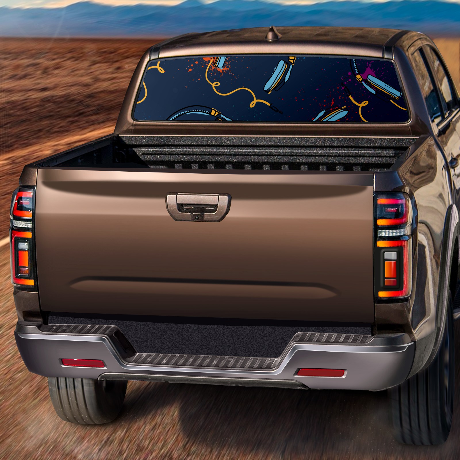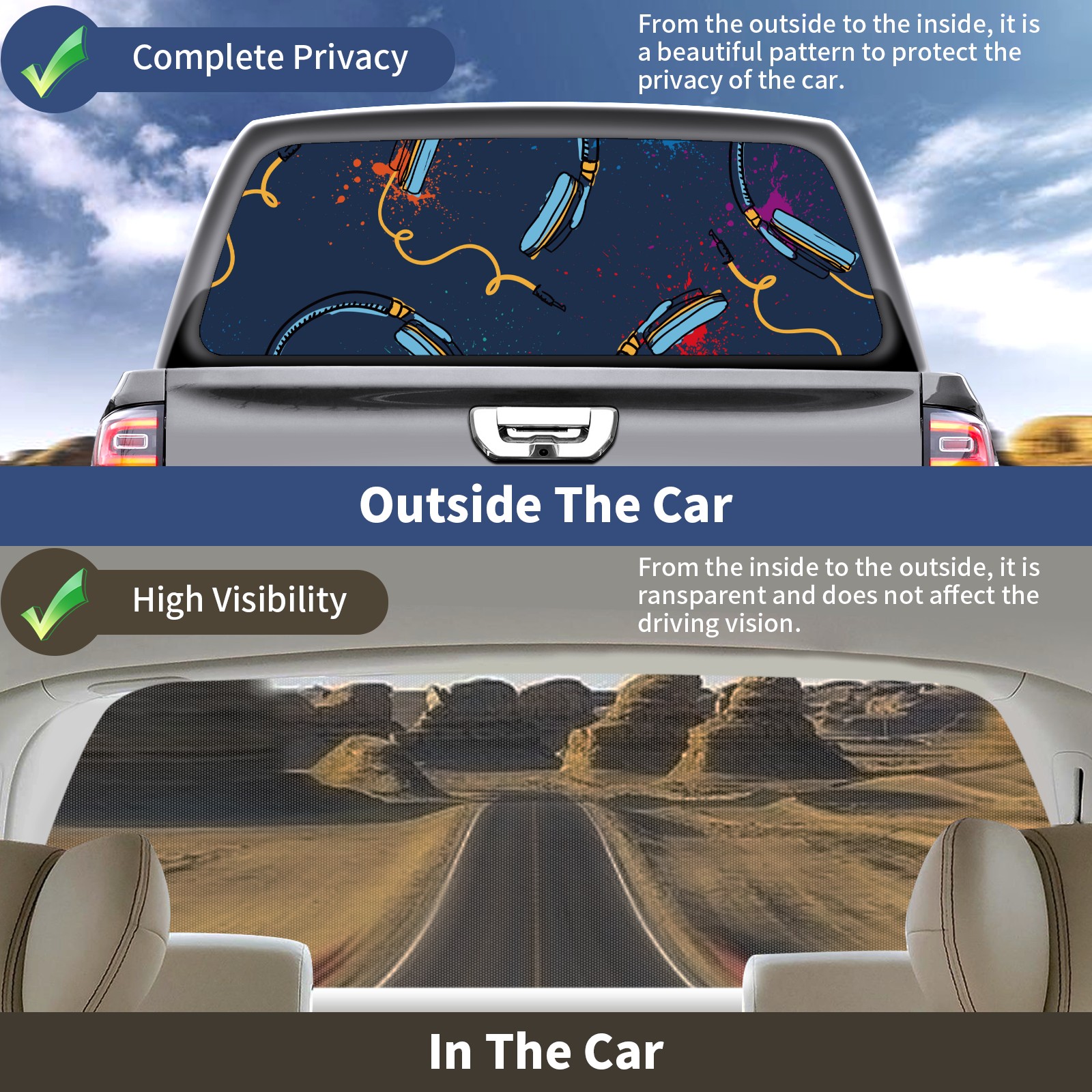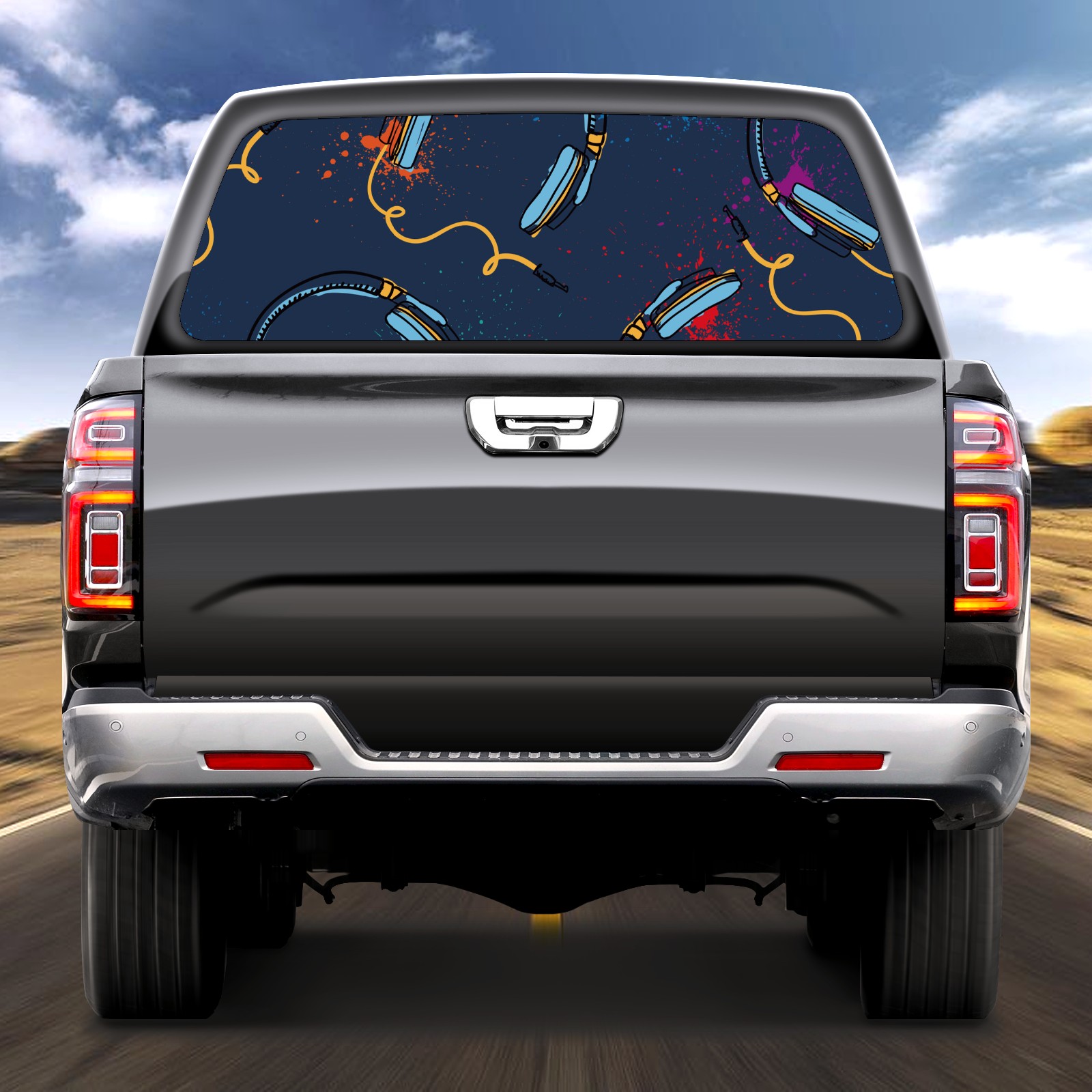 Truck Rear Window Graphics Decals Pickup Trucks Back Window Sticker Full Window Film Decal One Way Visual Waterproof Car Rear Tint headset blue