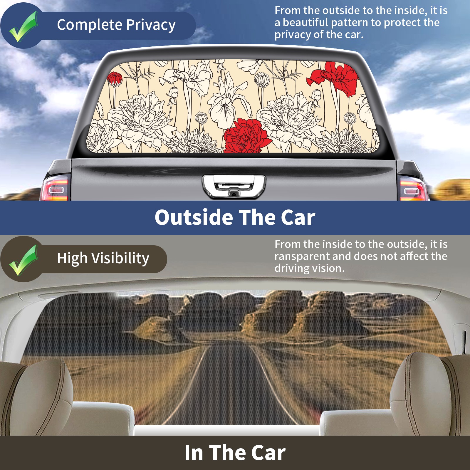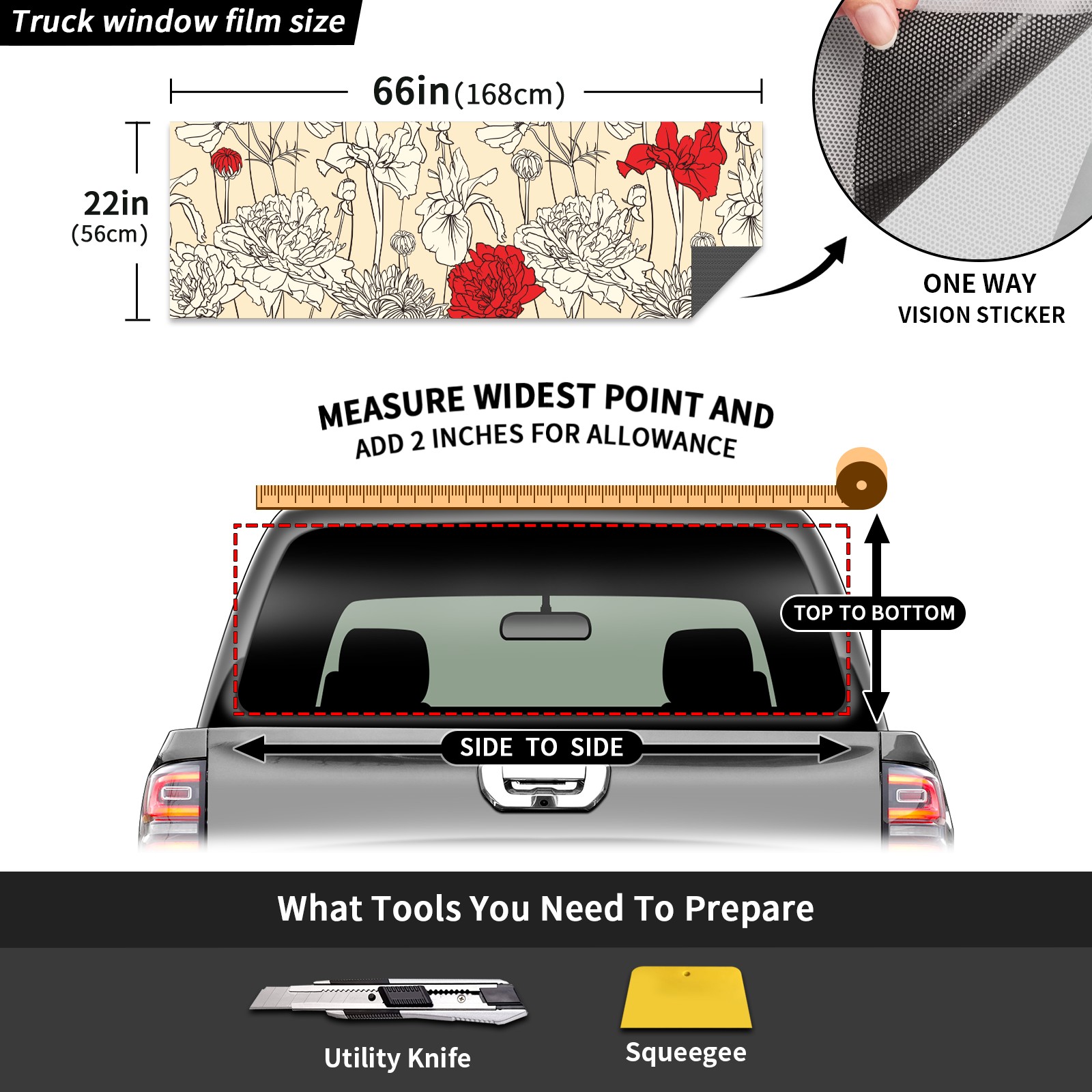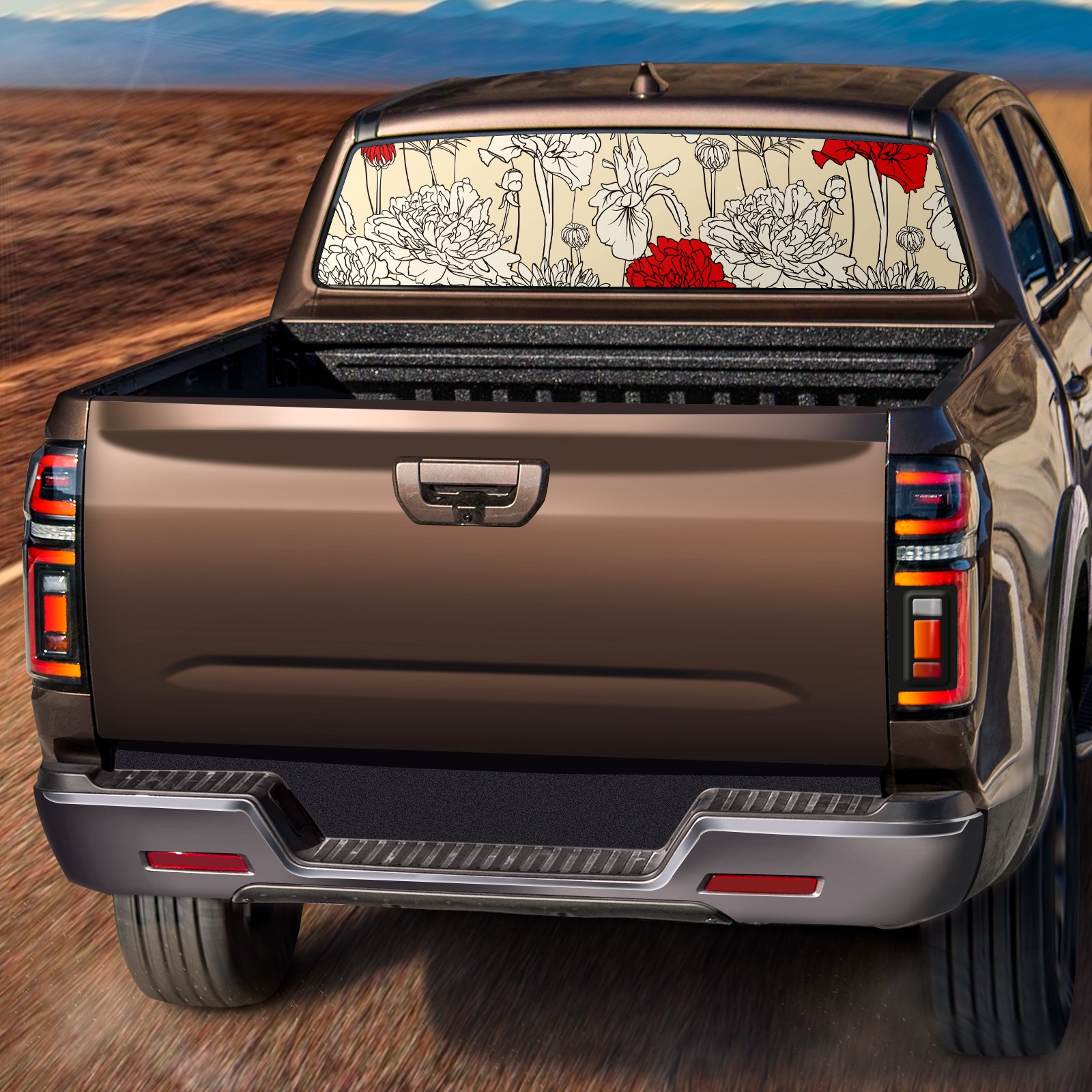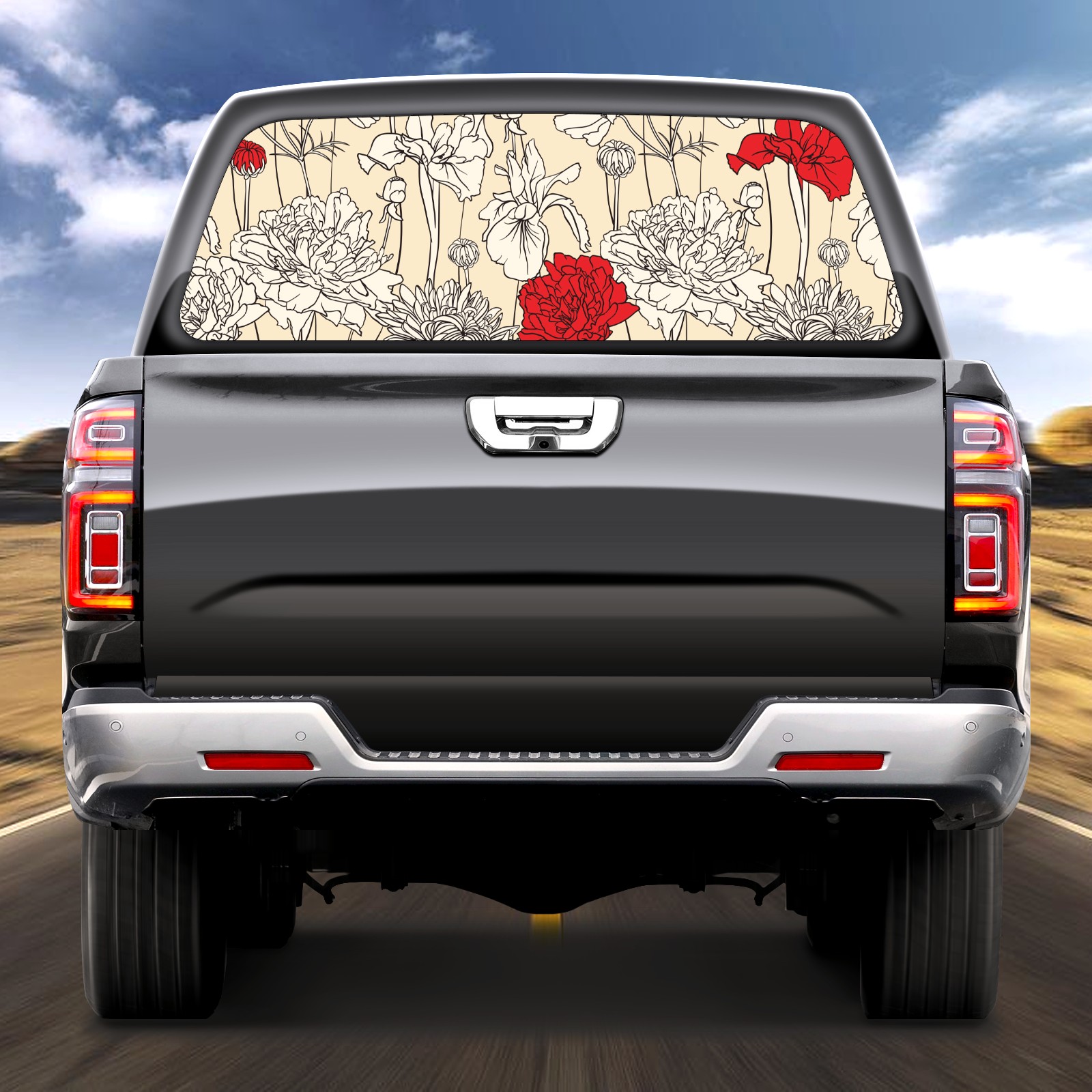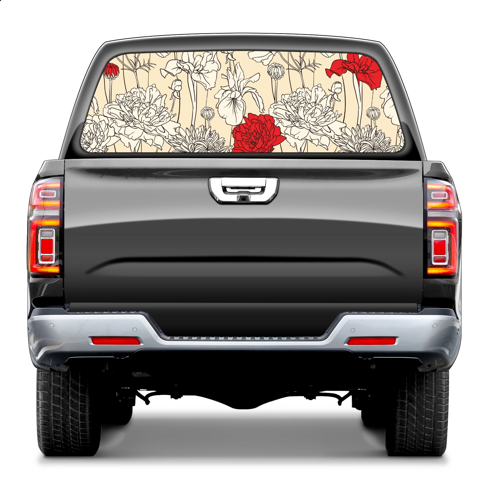 Truck Rear Window Graphics Decals Pickup Trucks Back Window Sticker Full Window Film Decal One Way Visual Waterproof Car Rear Tint Flower Red
