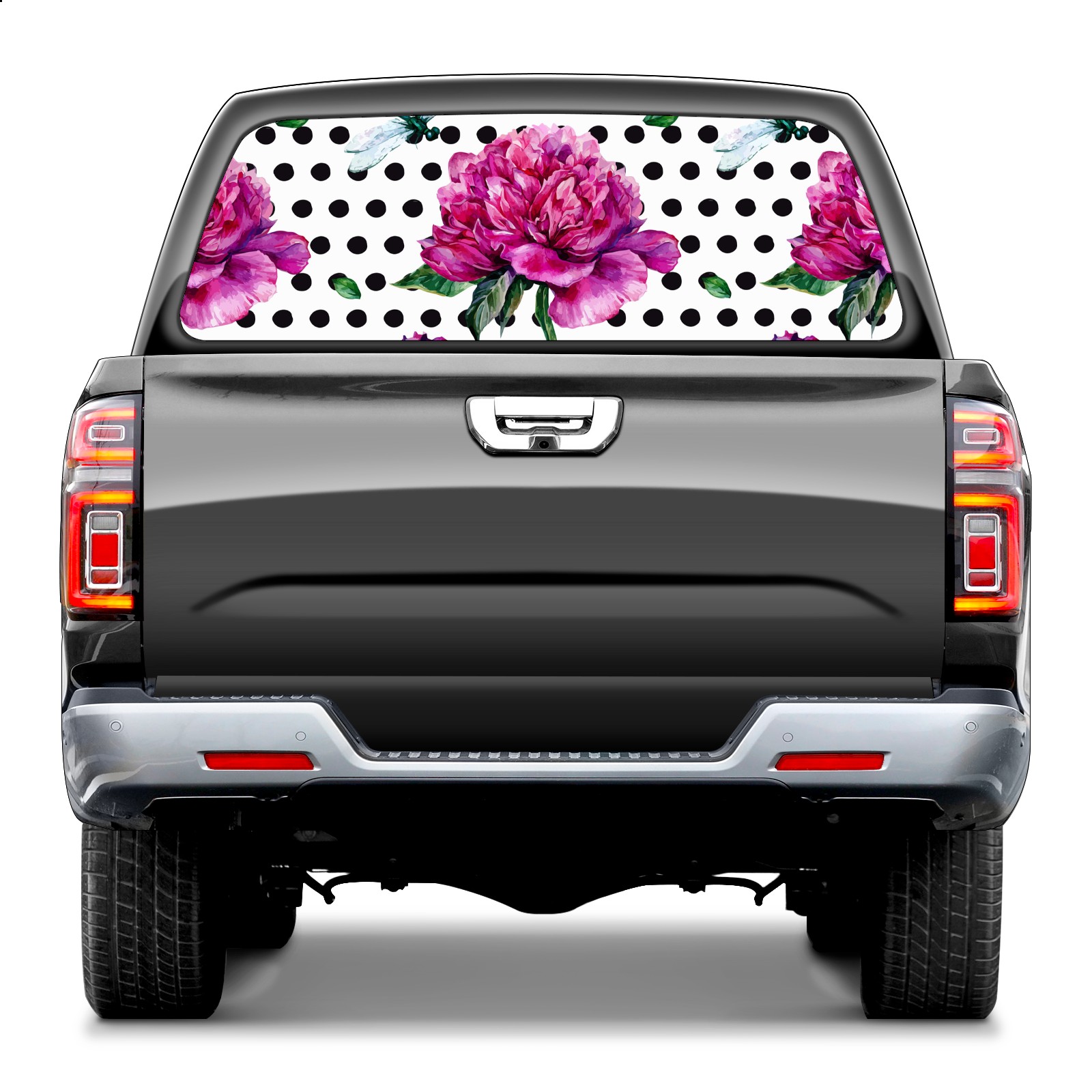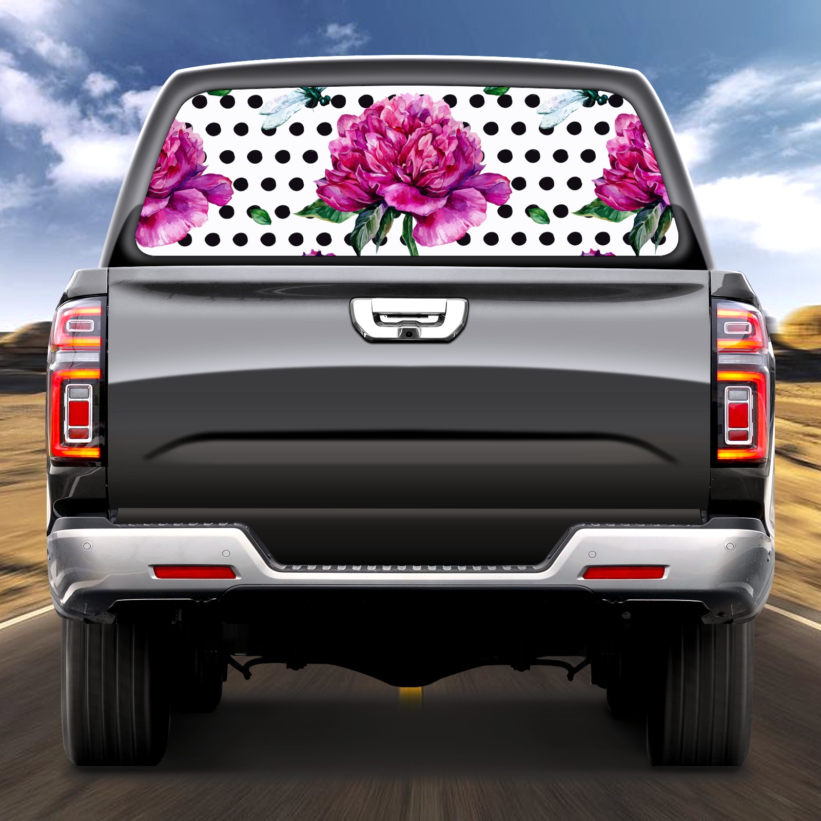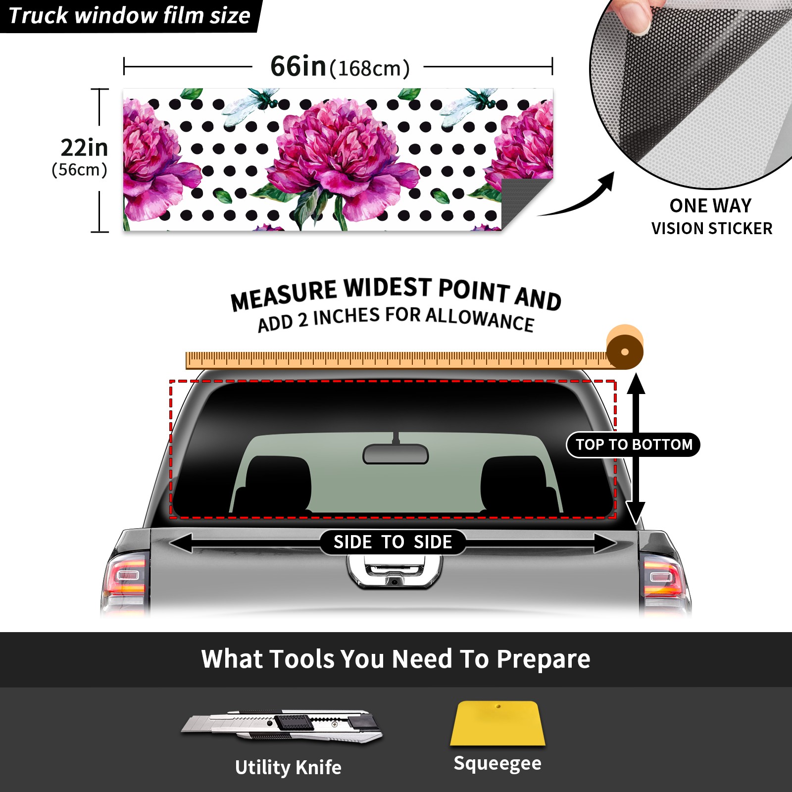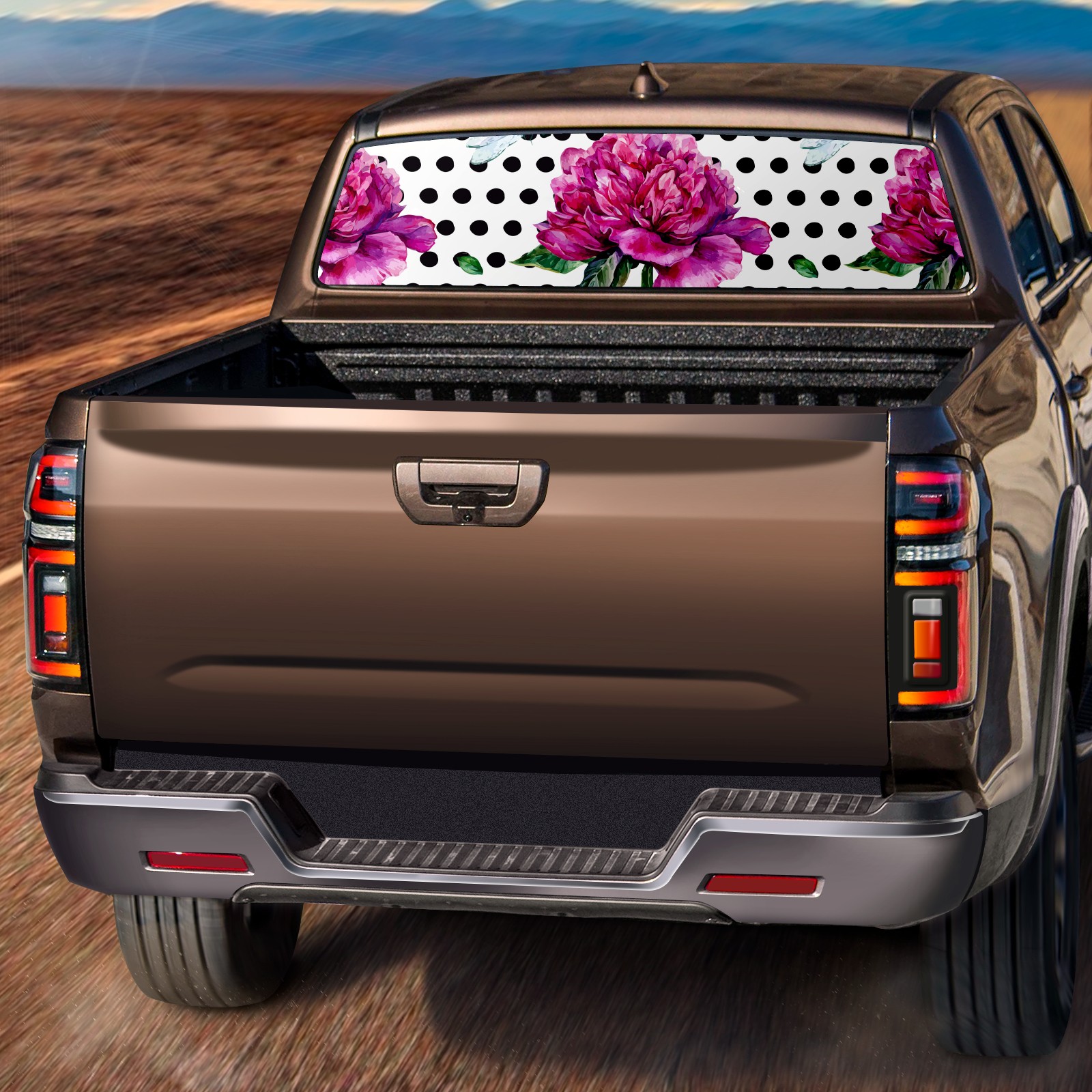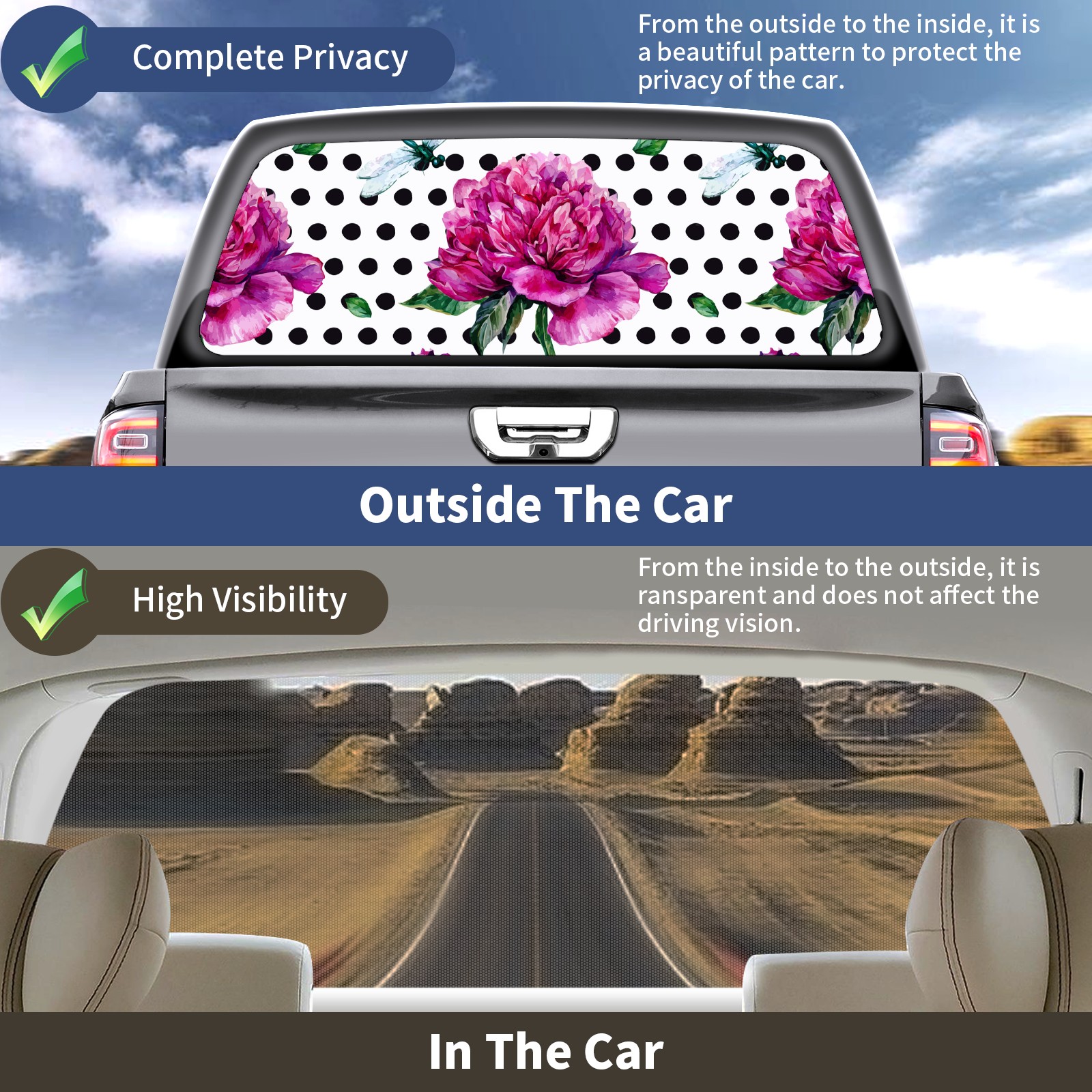 Truck Rear Window Graphics Decals Pickup Trucks Back Window Sticker Full Window Film Decal One Way Visual Waterproof Car Rear Tint Flower Leaves Point