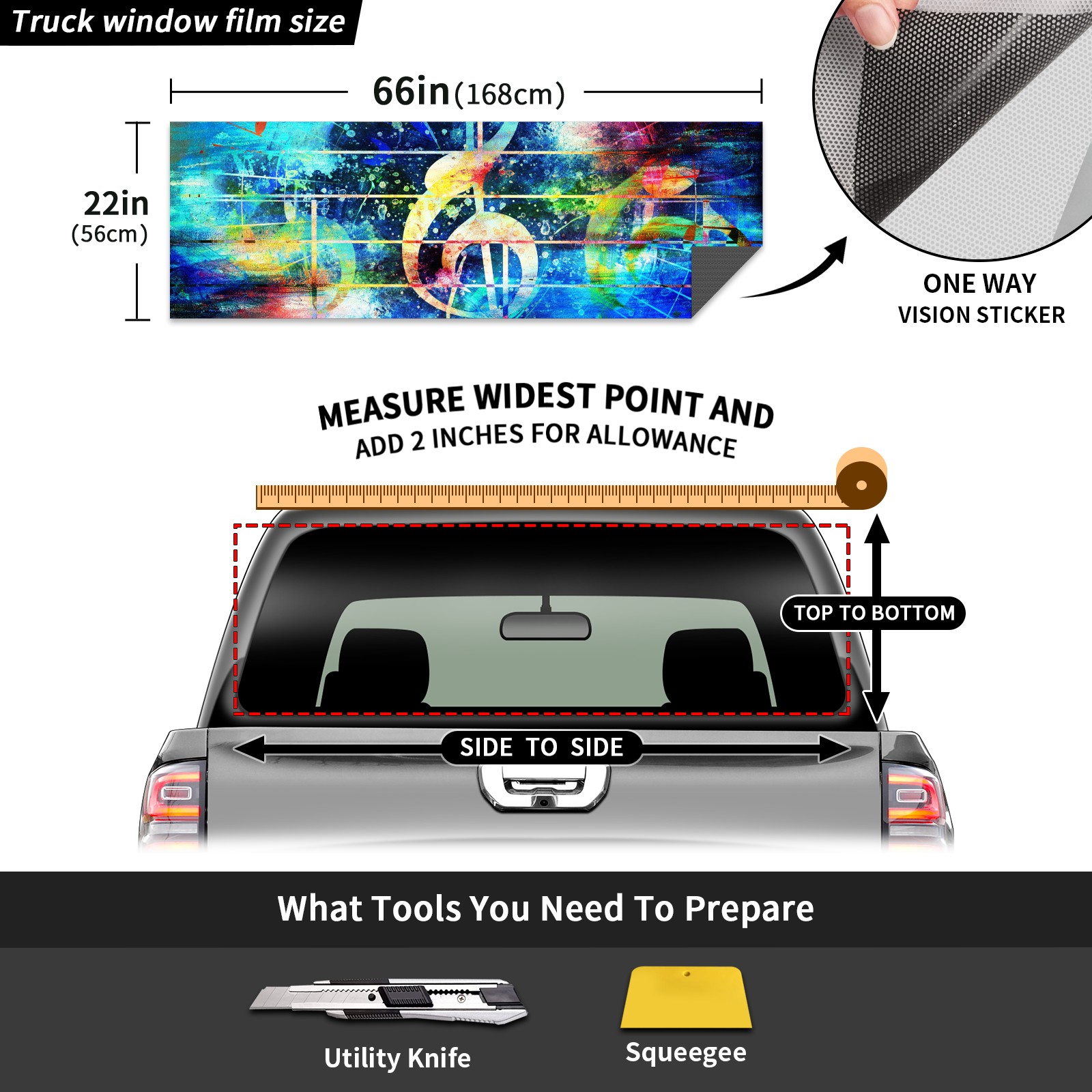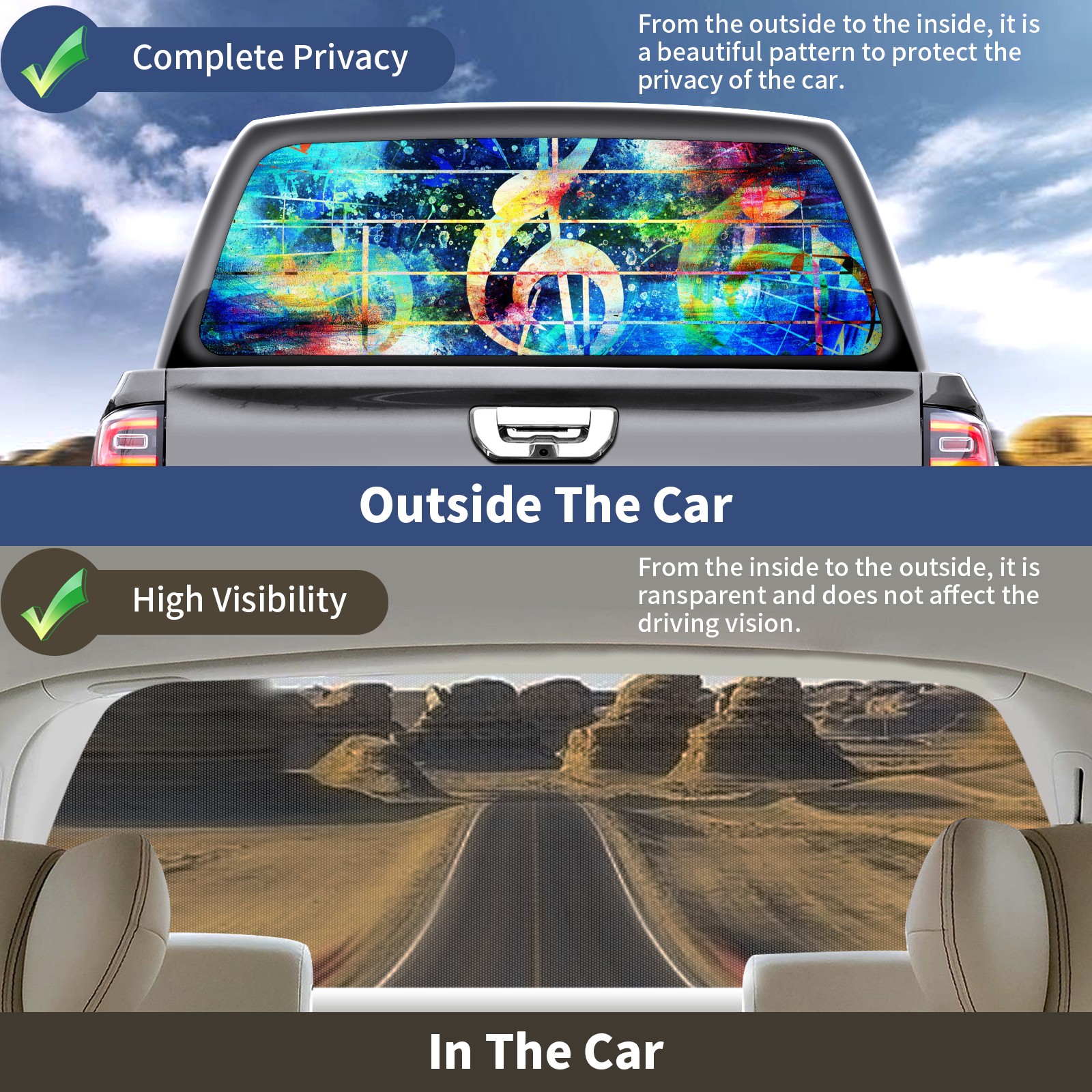 Truck Rear Window Graphics Decals Pickup Trucks Back Window Sticker Full Window Film Decal One Way Visual Waterproof Car Rear Tint L Music Note