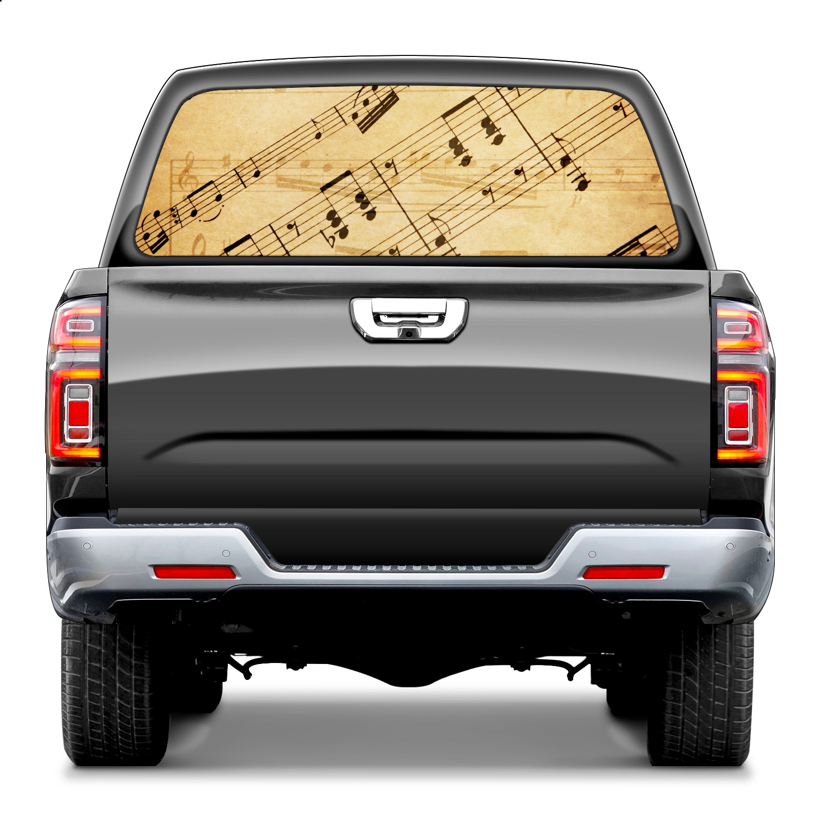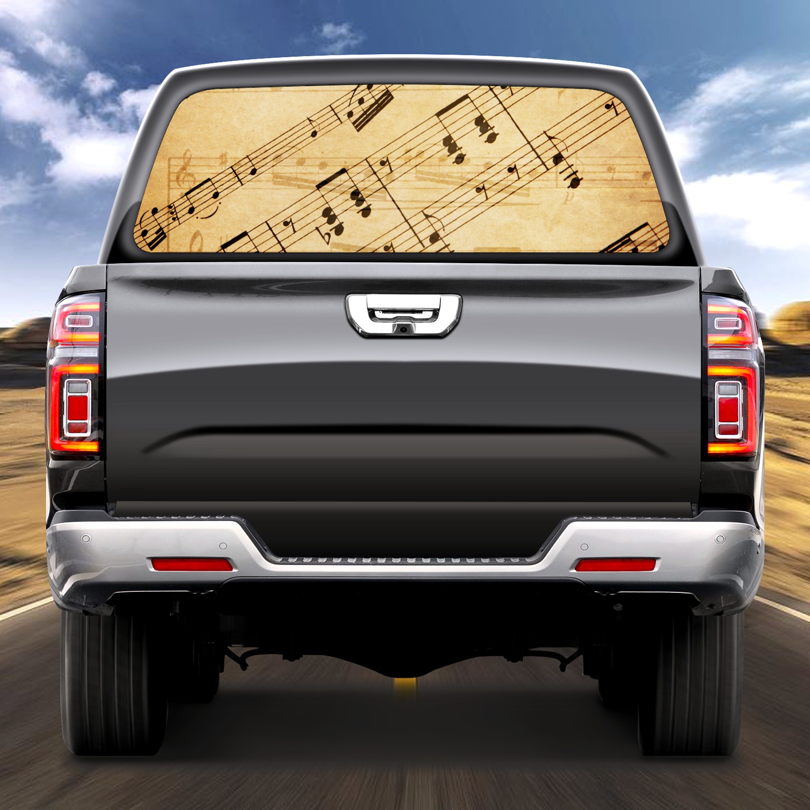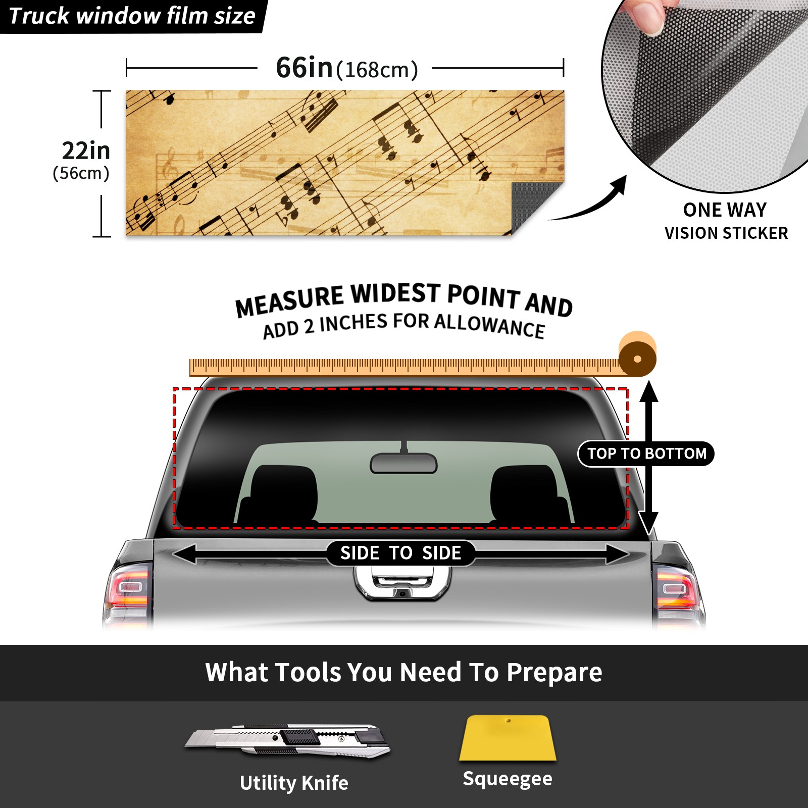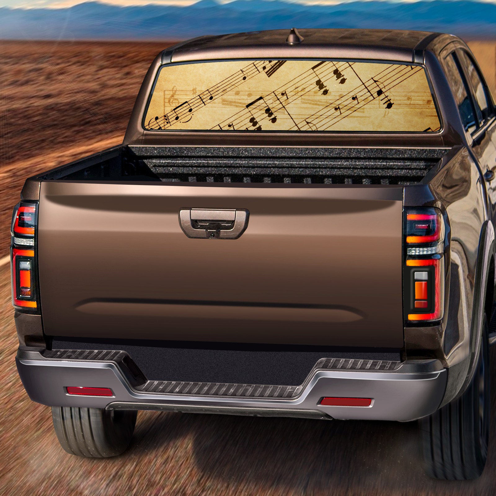 Truck Rear Window Graphics Decals Pickup Trucks Back Window Sticker Full Window Film Decal One Way Visual Waterproof Car Rear Tint Vintage Brown Staff Music