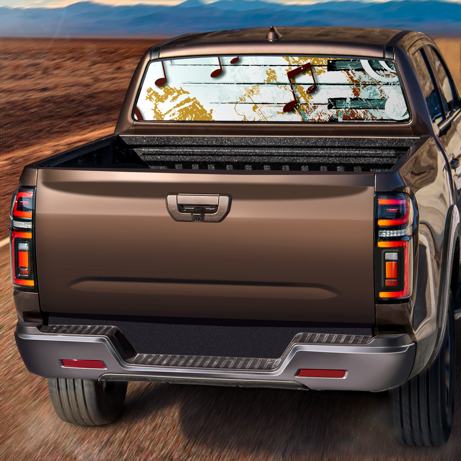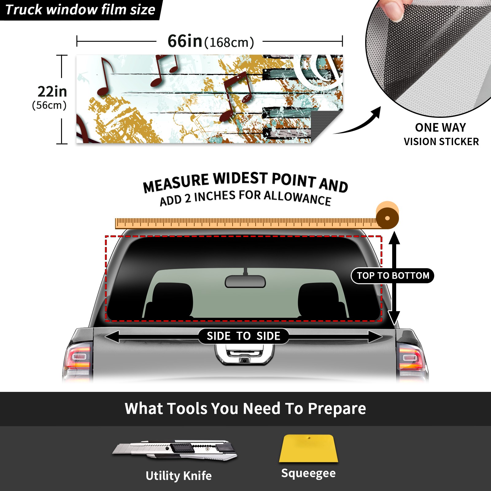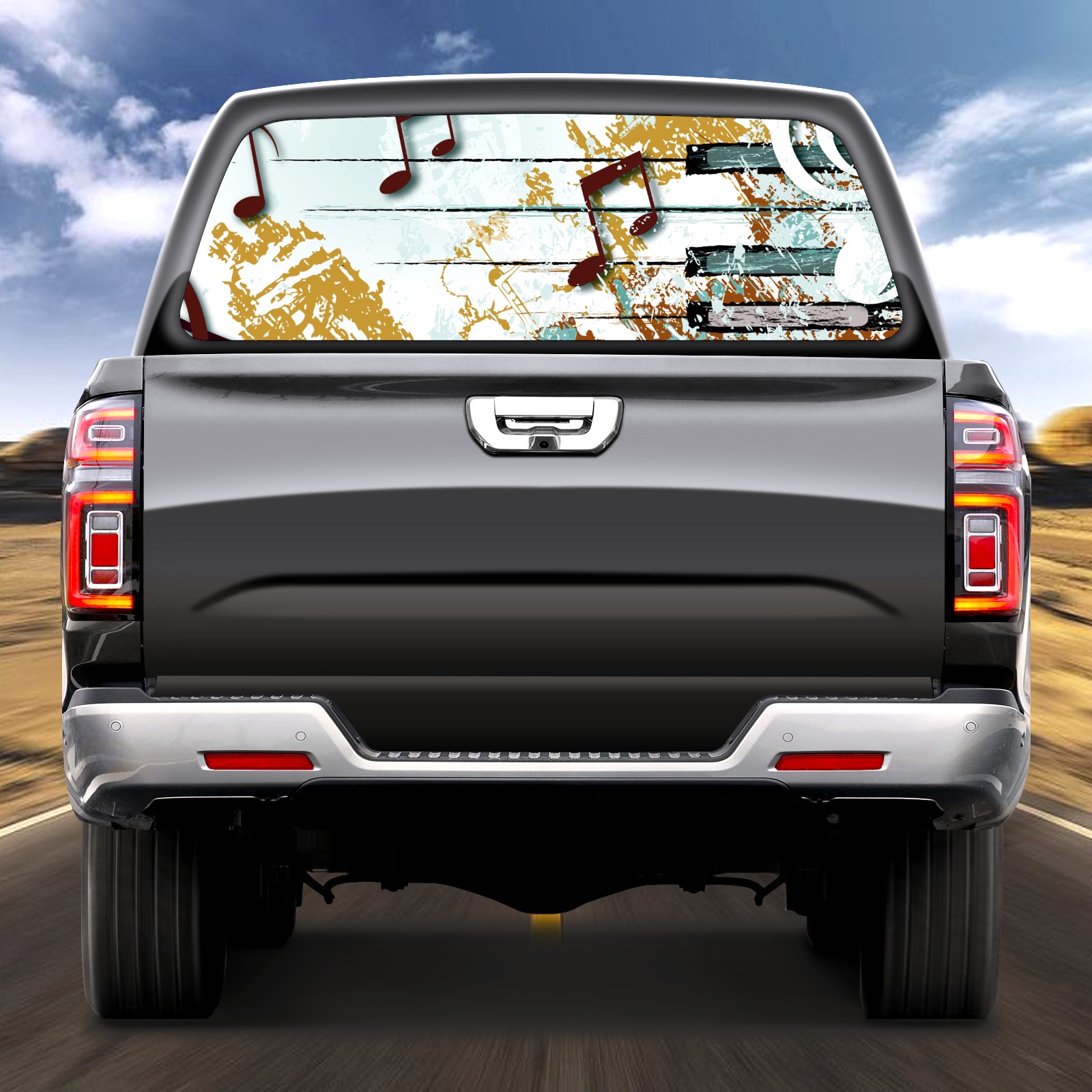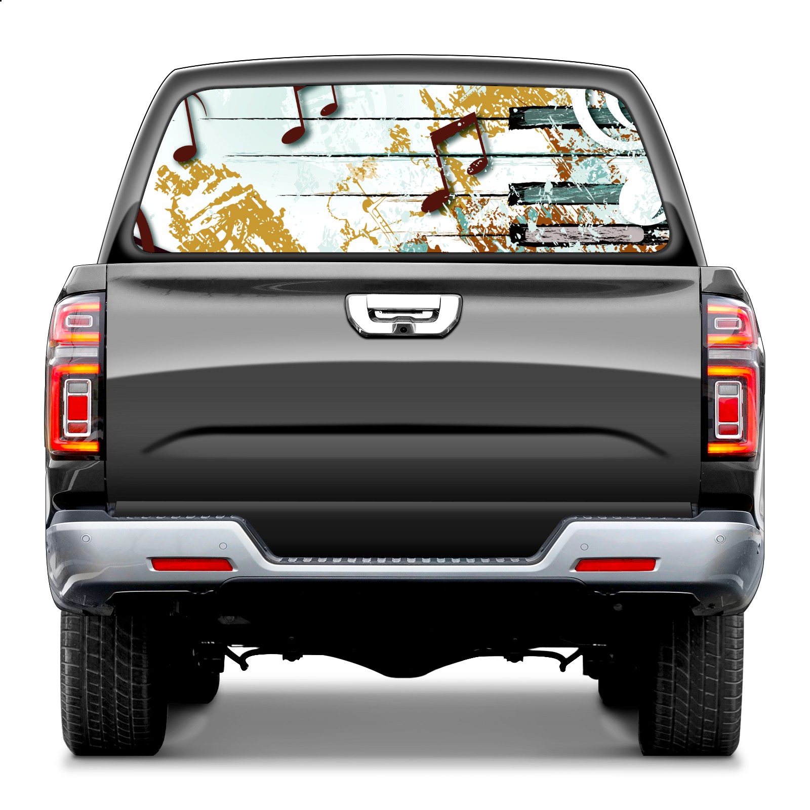 Truck Rear Window Graphics Decals Pickup Trucks Back Window Sticker Full Window Film Decal One Way Visual Waterproof Car Rear Tint Retro Music Note