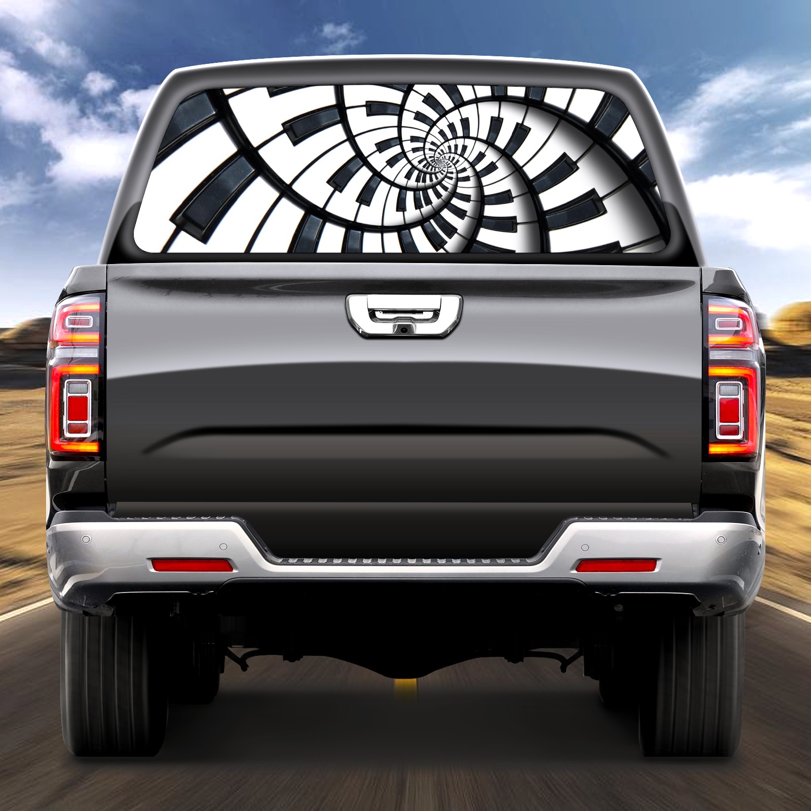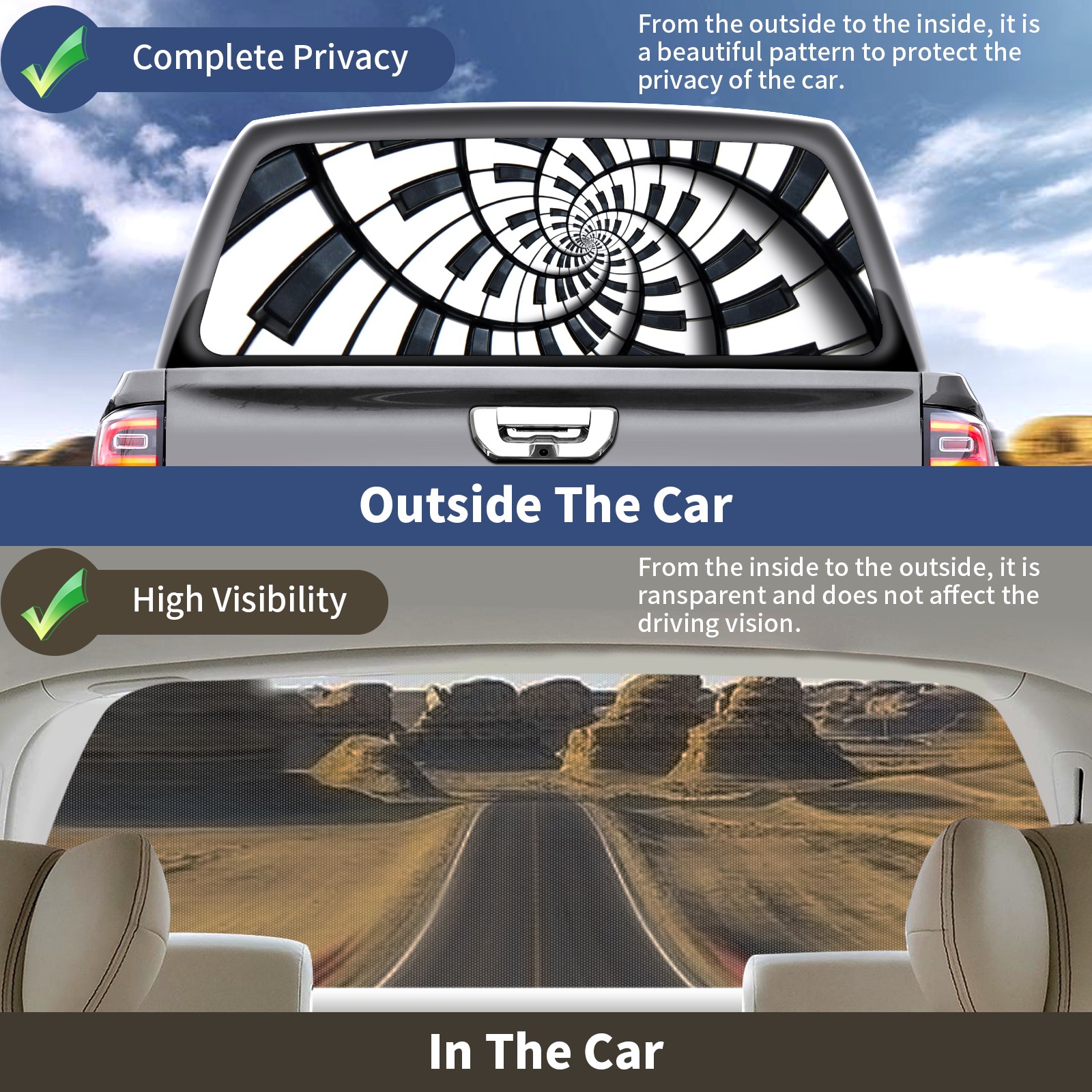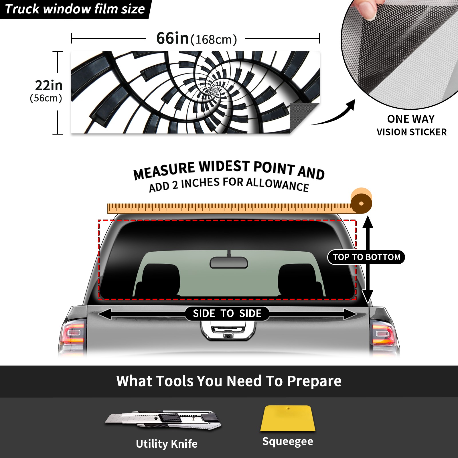 Truck Rear Window Graphics Decals Pickup Trucks Back Window Sticker Full Window Film Decal One Way Visual Waterproof Car Rear Tint Piano Key Abstract