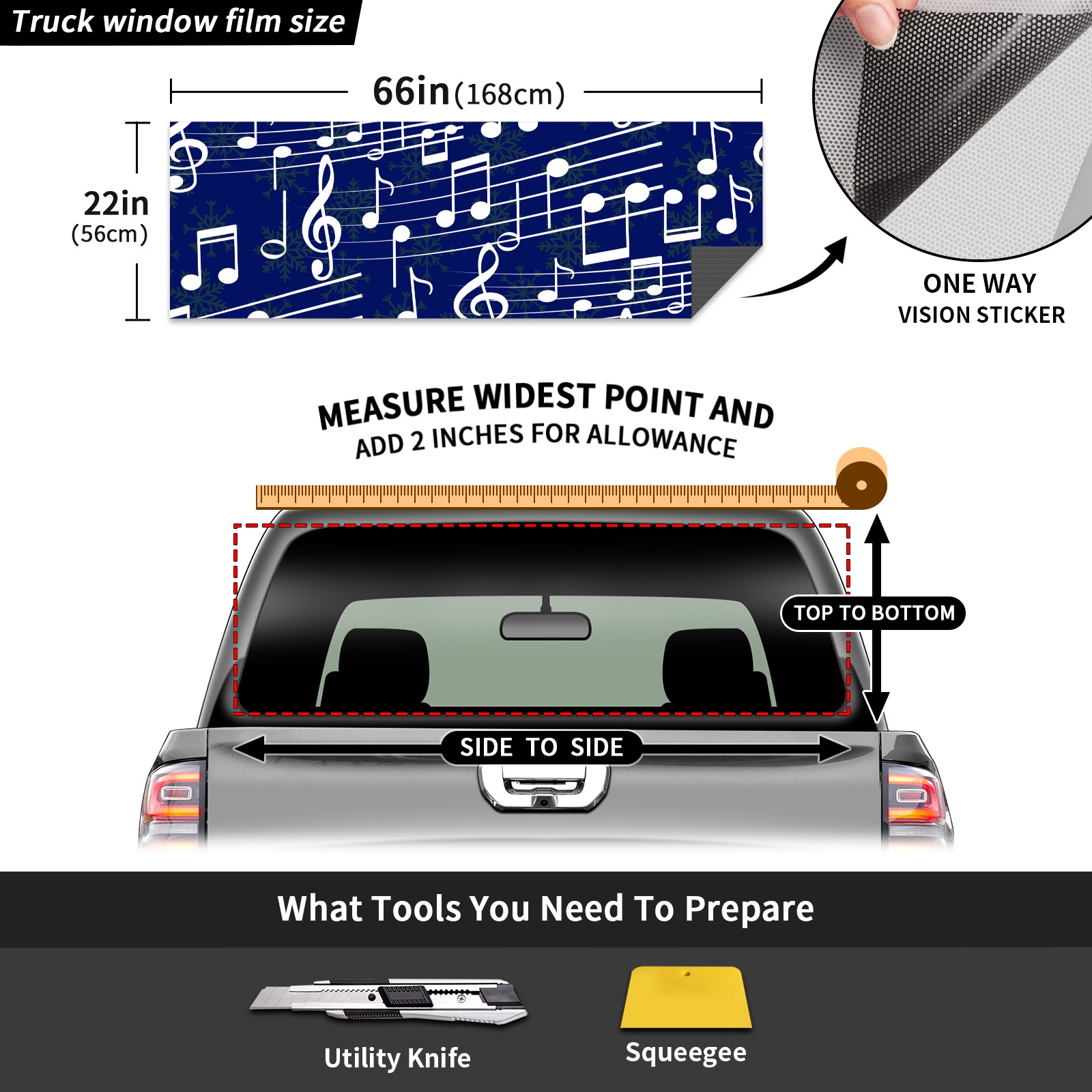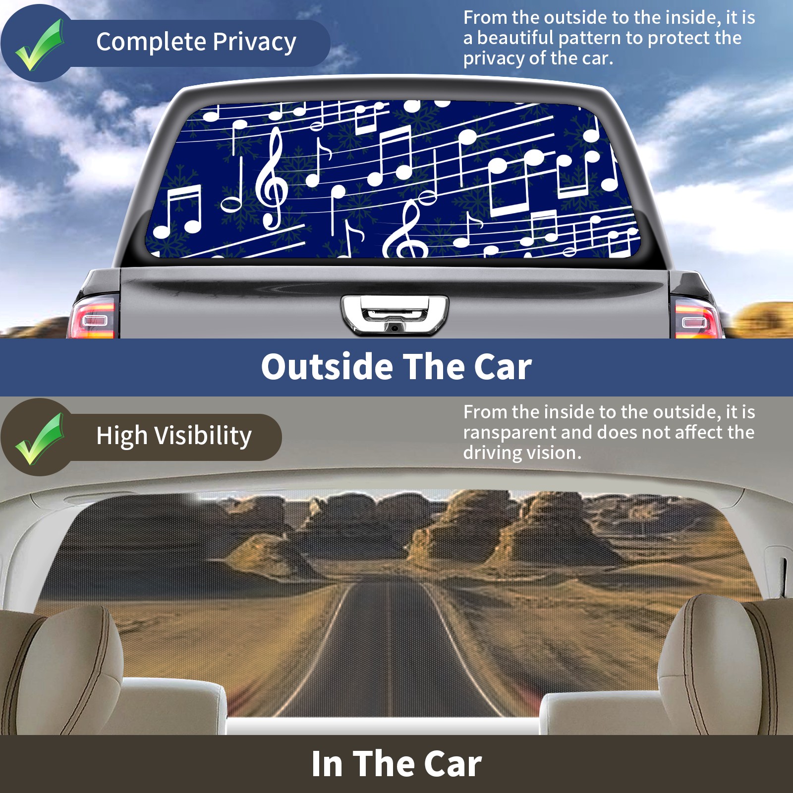 Truck Rear Window Graphics Decals Pickup Trucks Back Window Sticker Full Window Film Decal One Way Visual Waterproof Car Rear Tint Music Note Pattern