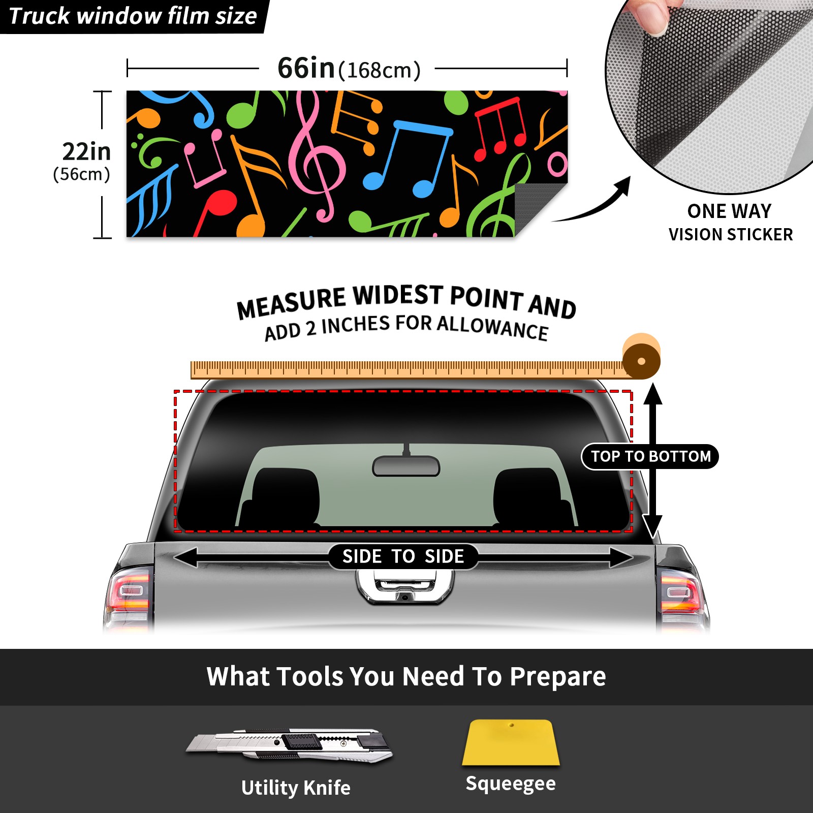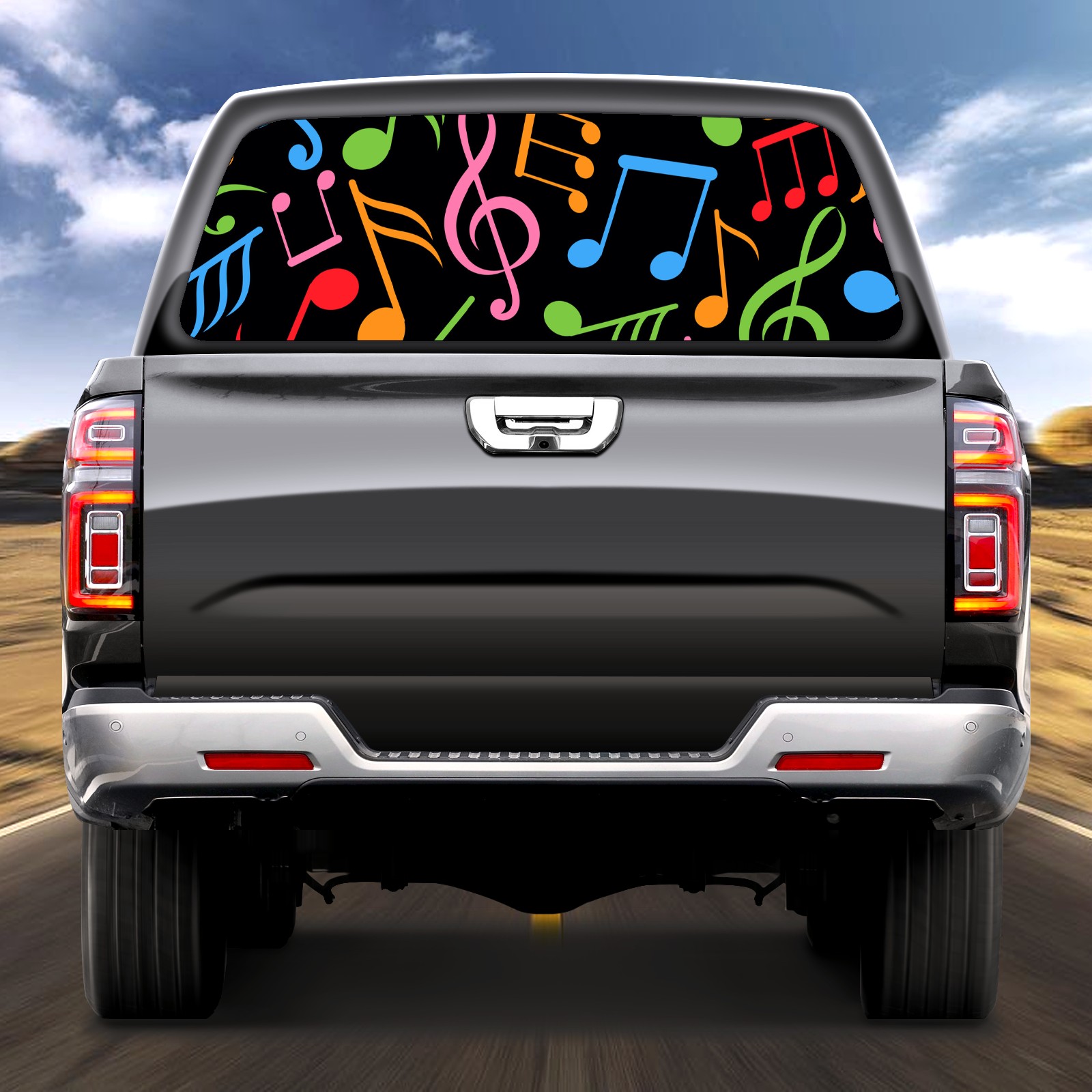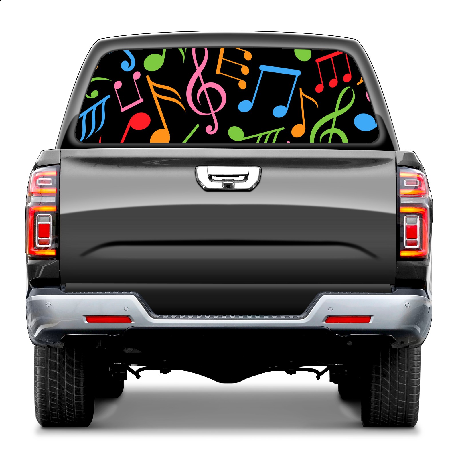 Truck Rear Window Graphics Decals Pickup Trucks Back Window Sticker Full Window Film Decal One Way Visual Waterproof Car Rear Tint Music Note Black Colorful