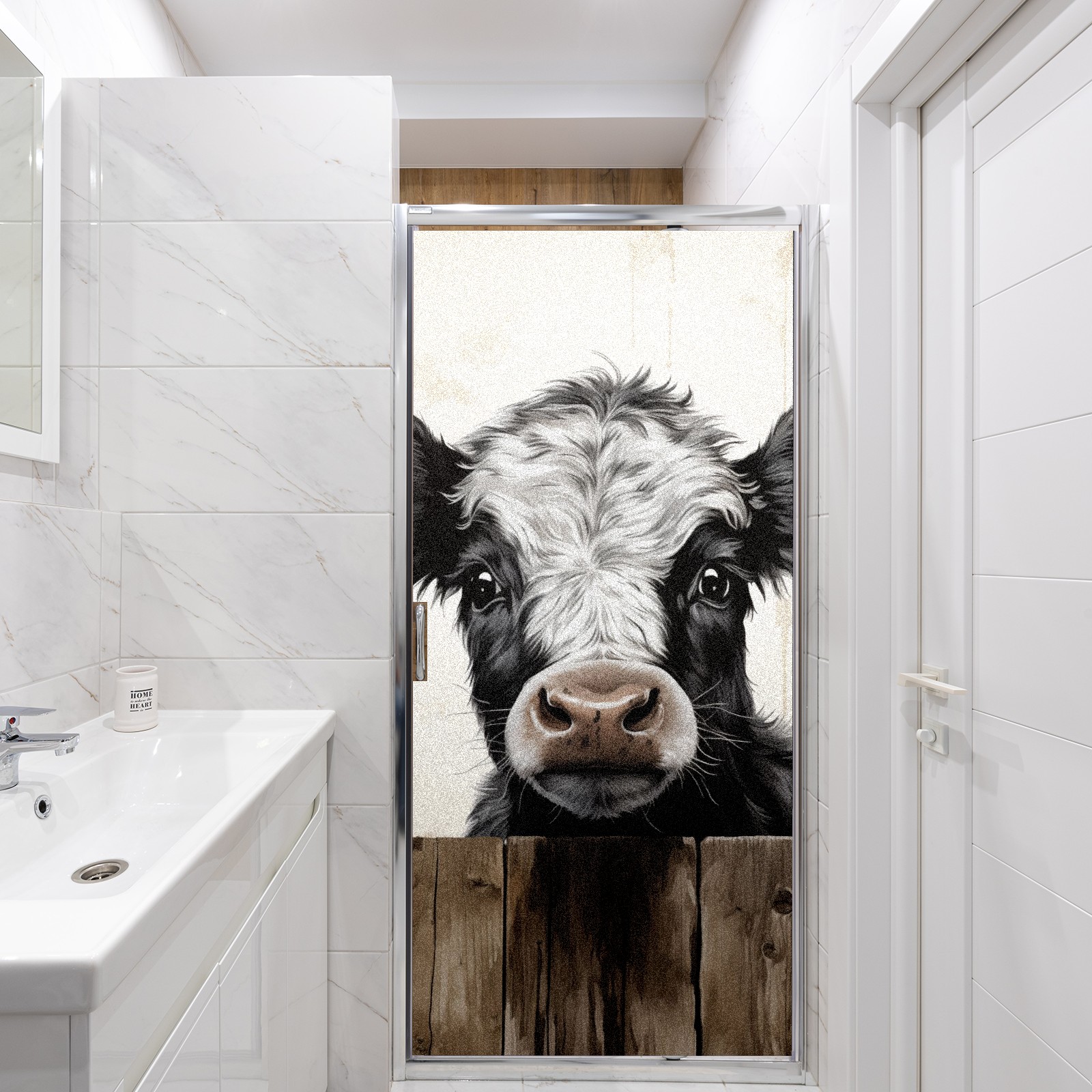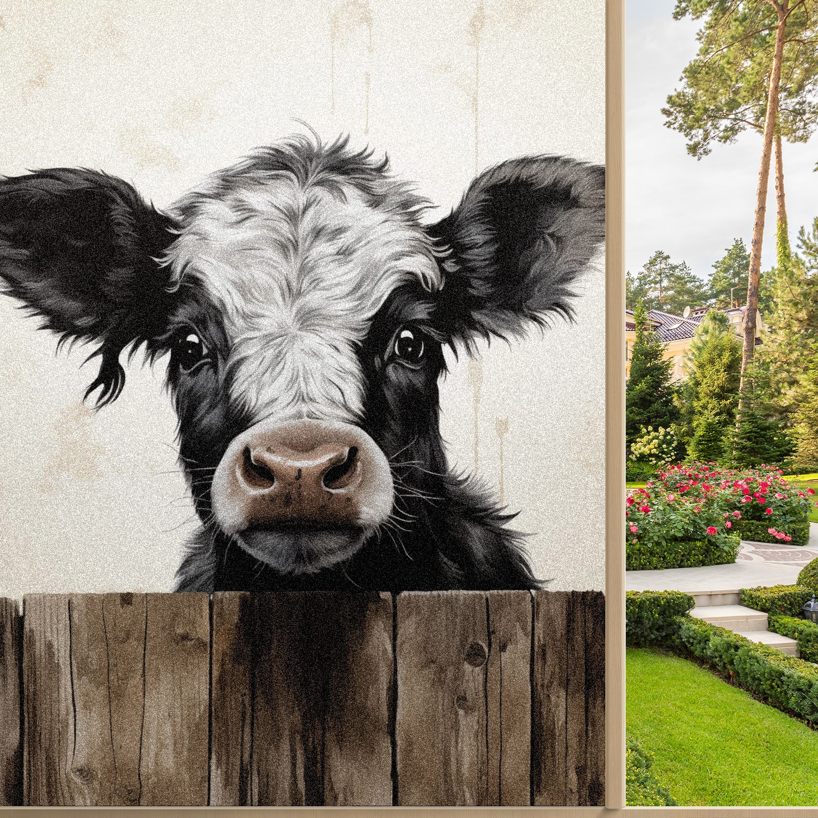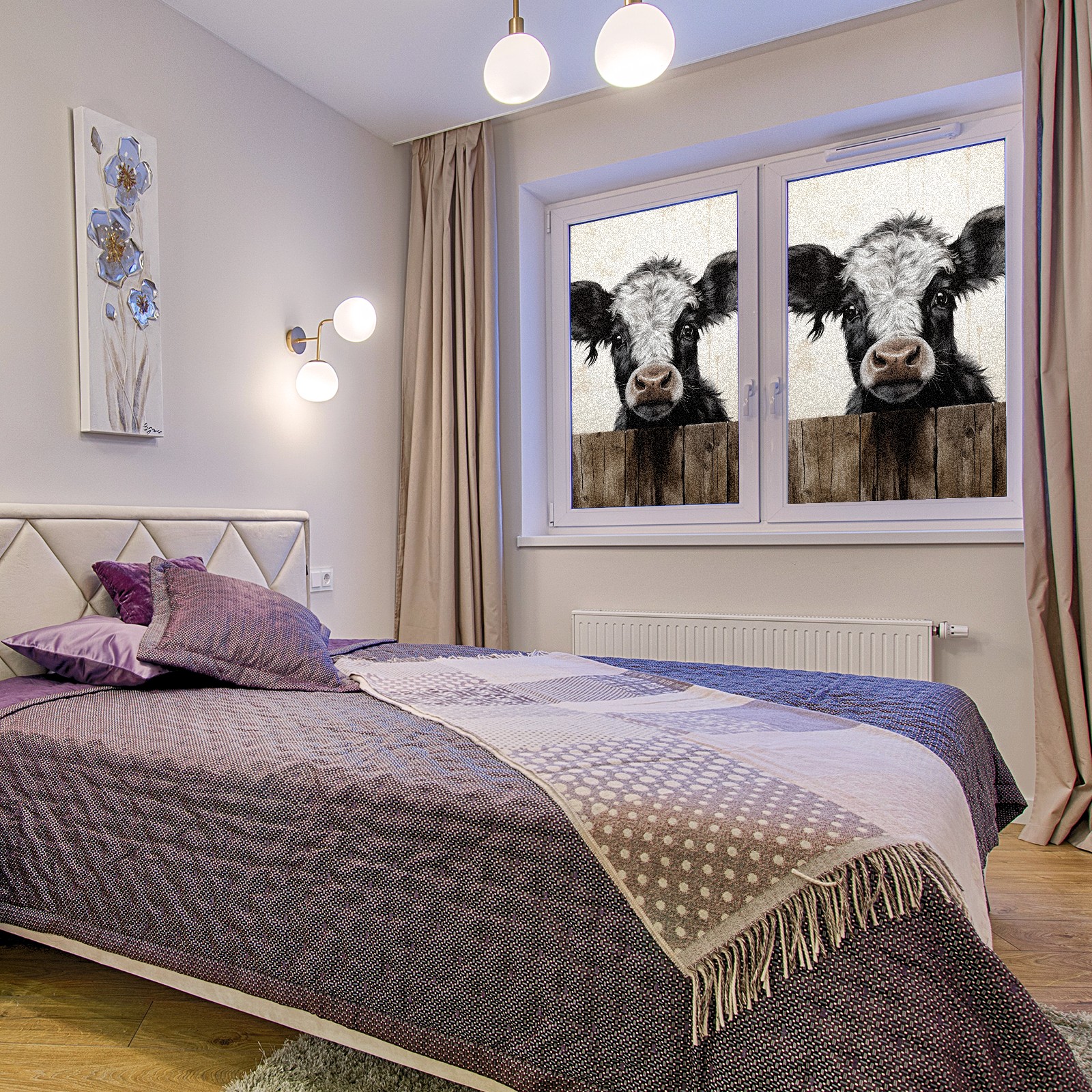 MSINMKOK Window Privacy Film Vintage Wood Cow Decorative Frosted Glass Window Film for Glass Door Bathroom Window 17.7'' x 23.6'' Non-Adhesive Window Decals Stickers