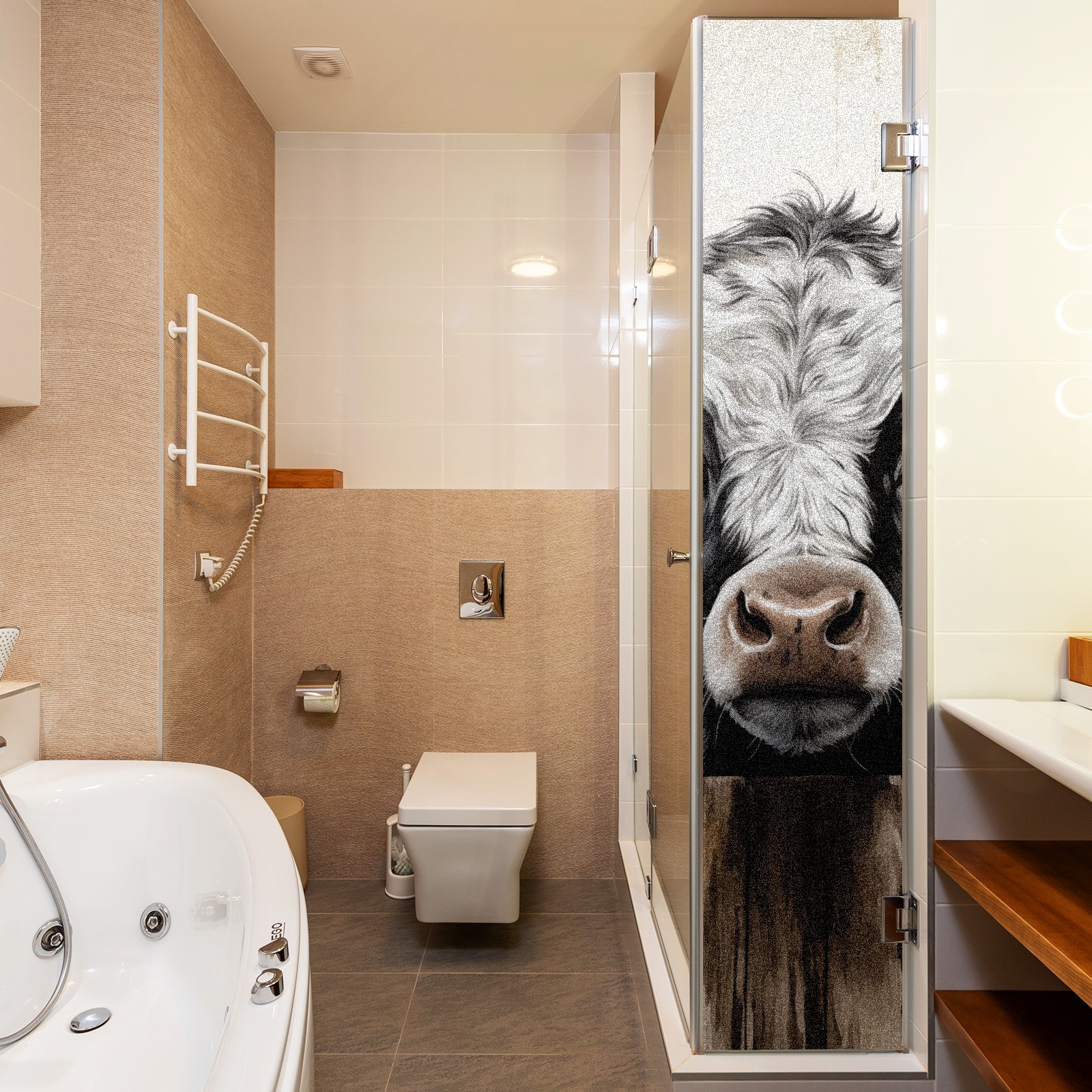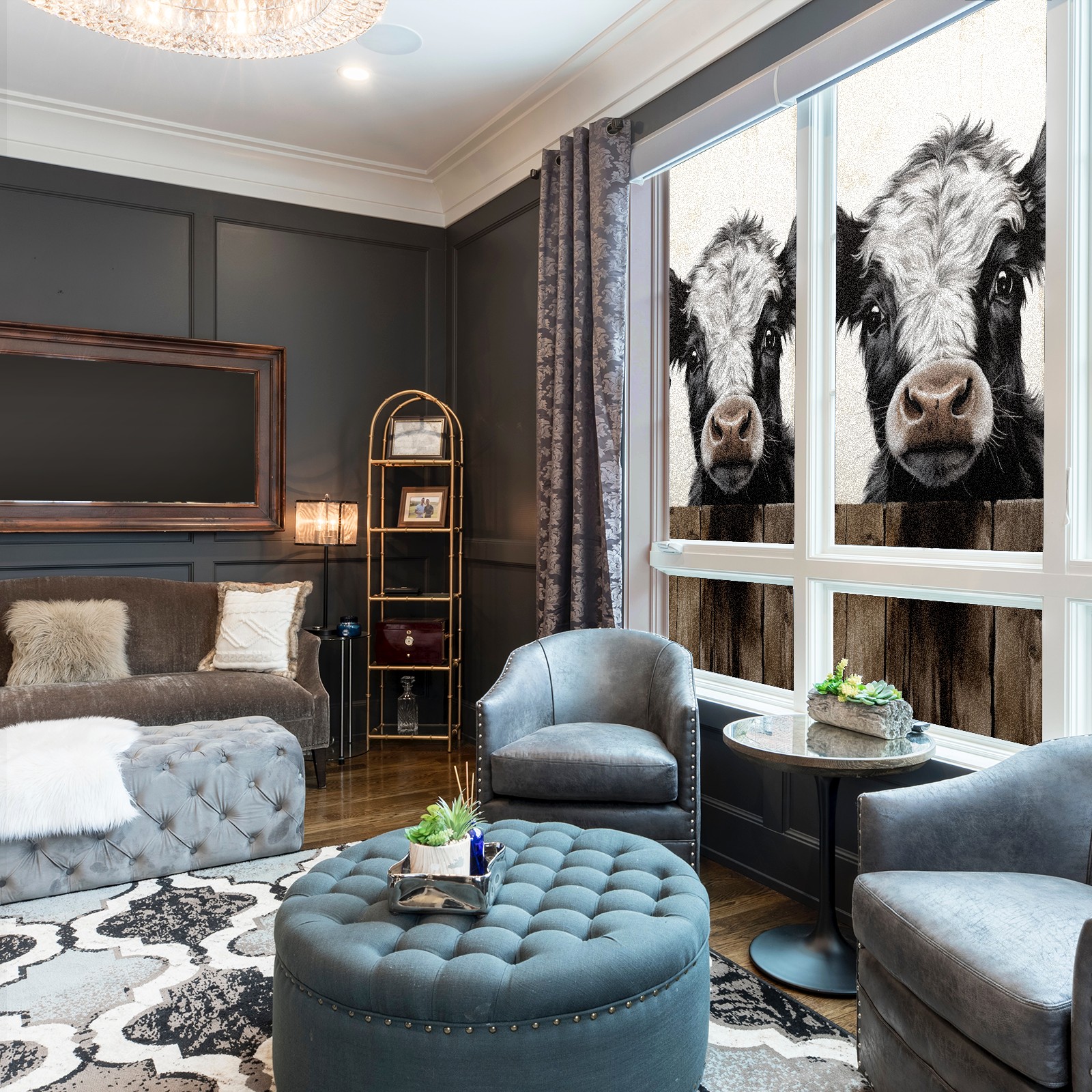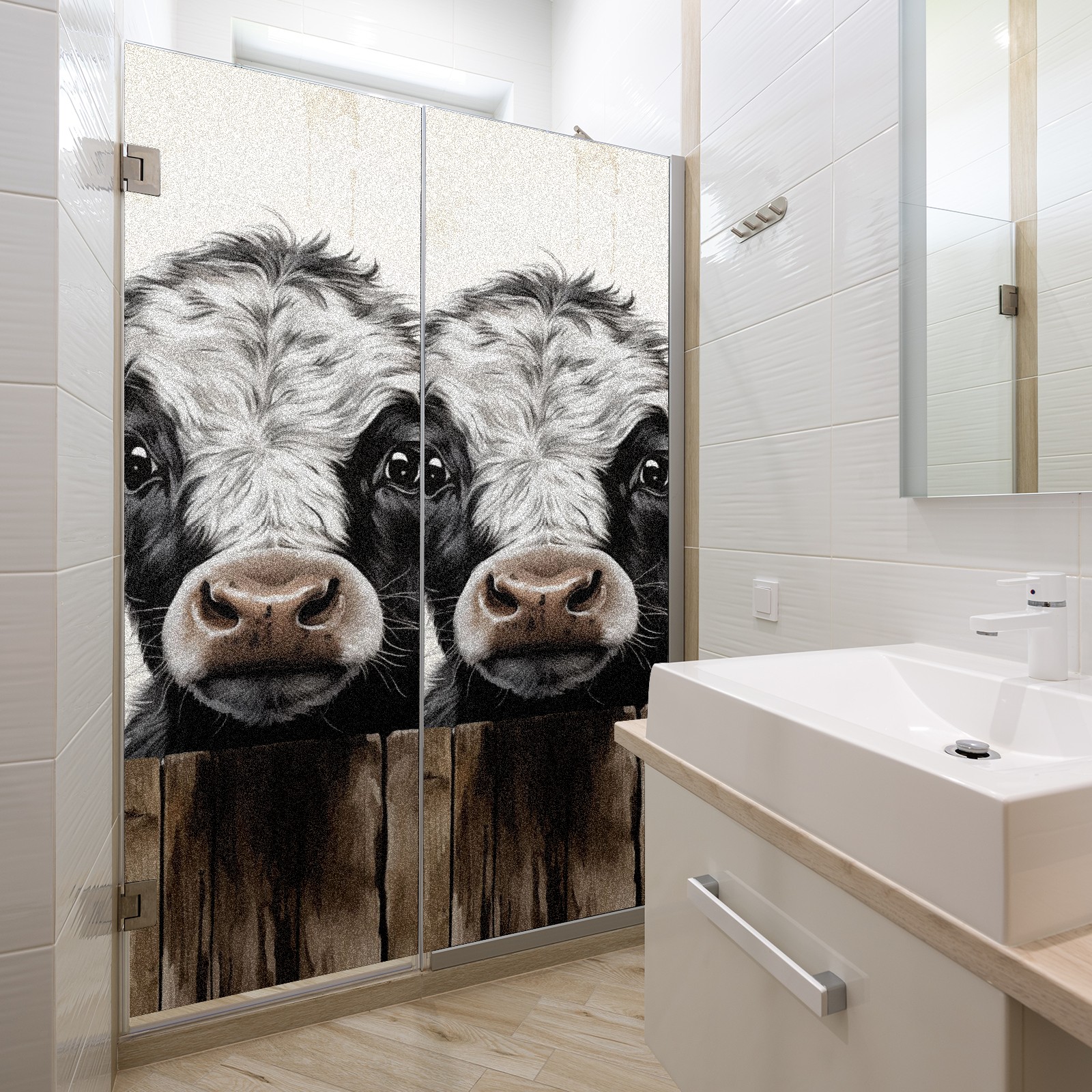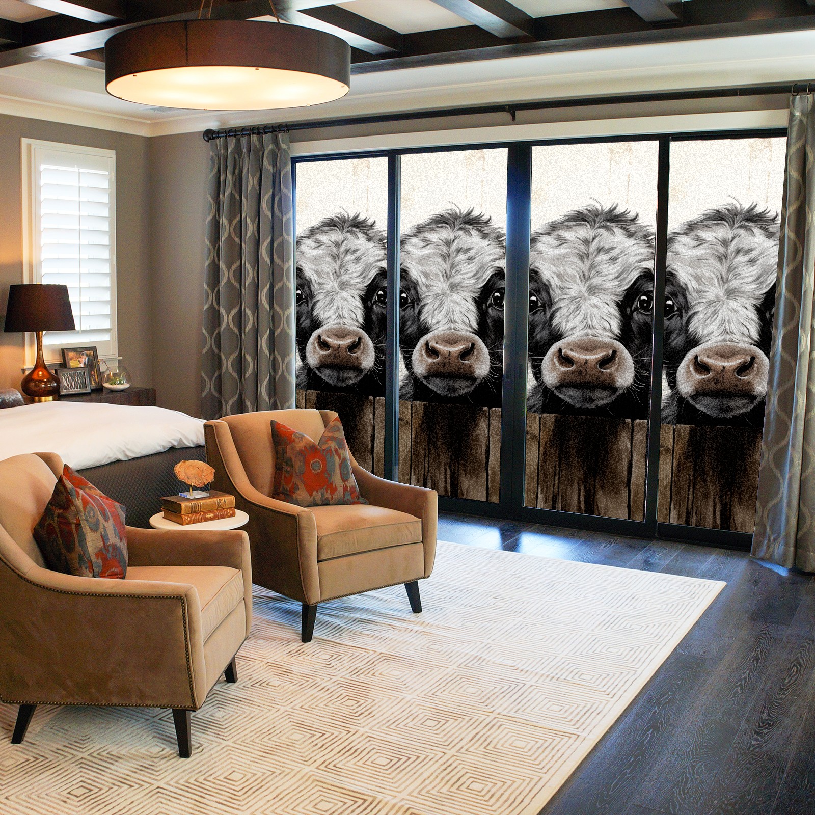 MSINMKOK Window Privacy Film Vintage Wood Cow Decorative Frosted Glass Window Film for Glass Door Bathroom Window 17.7'' x 23.6'' Non-Adhesive Window Decals Stickers