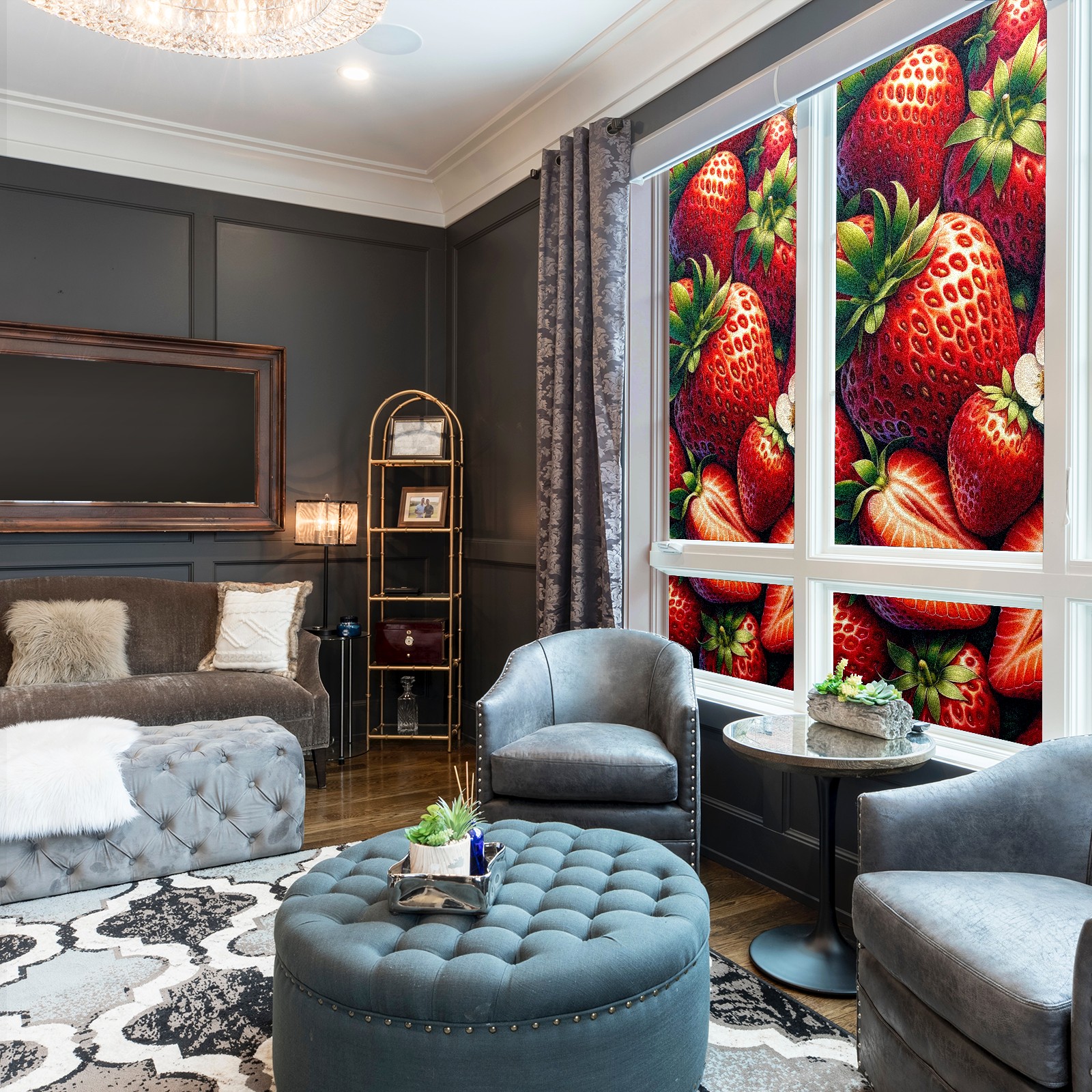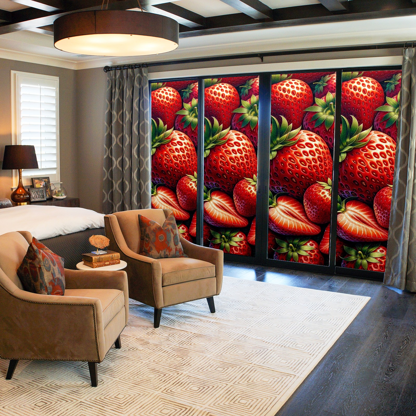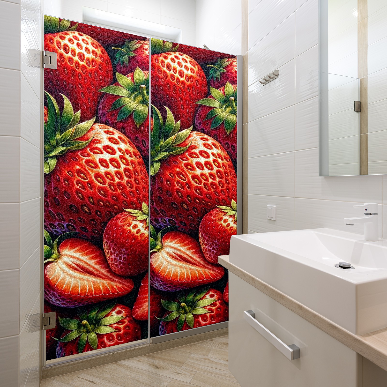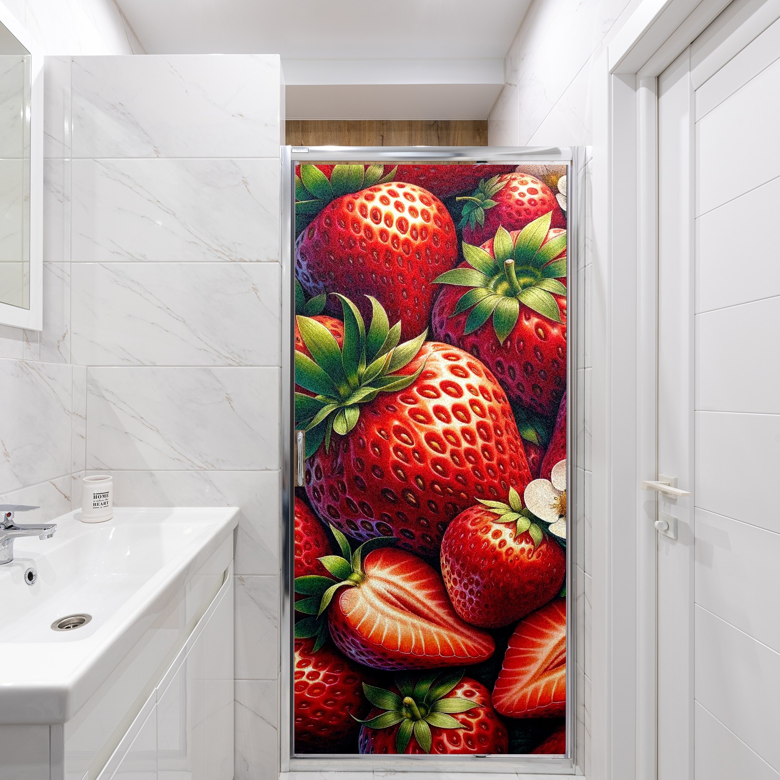 MSINMKOK Window Privacy Film Strawberry Red Decorative Frosted Glass Window Film for Glass Door Bathroom Window 17.7'' x 23.6'' Non-Adhesive Window Decals Stickers