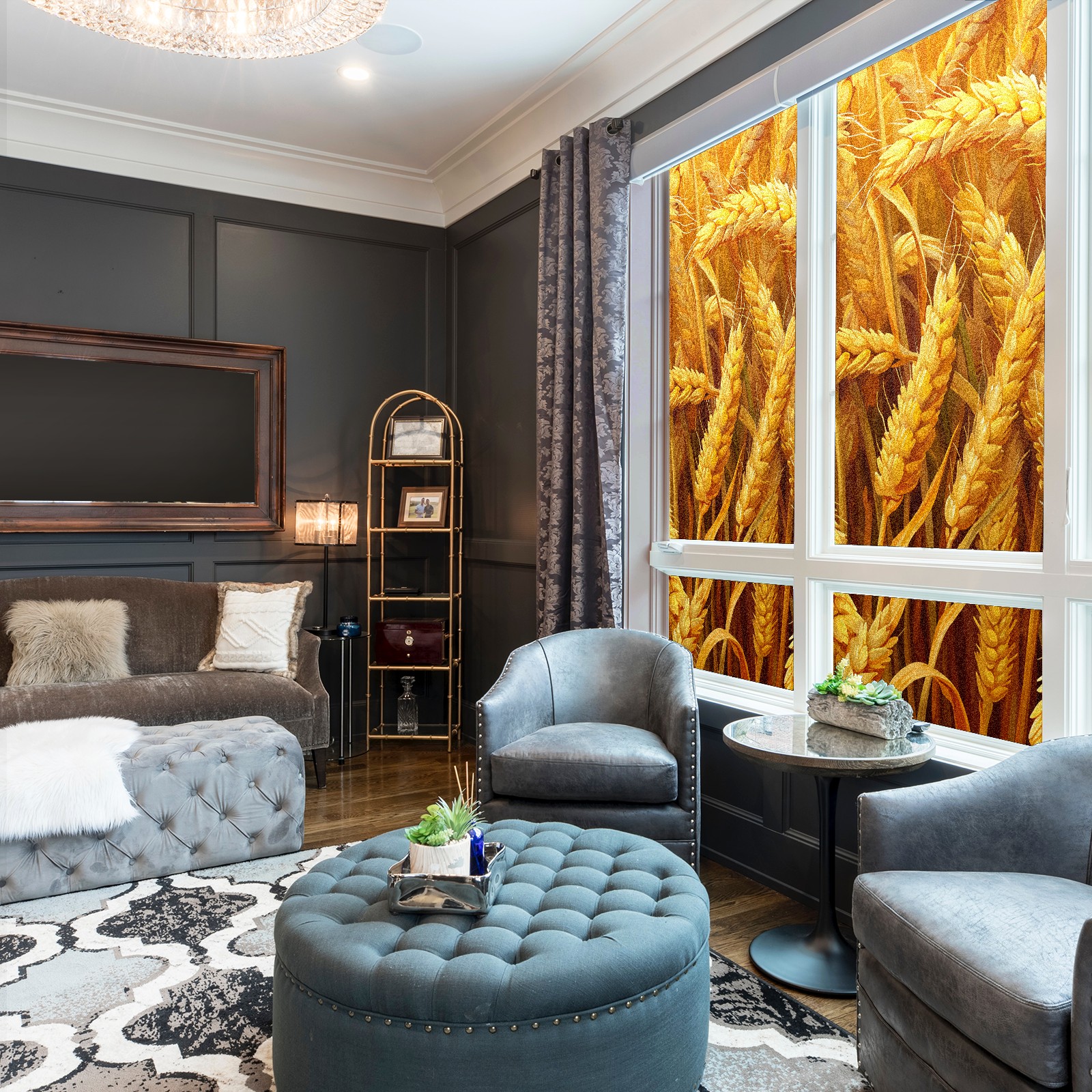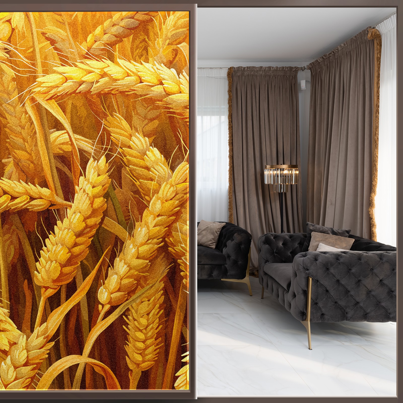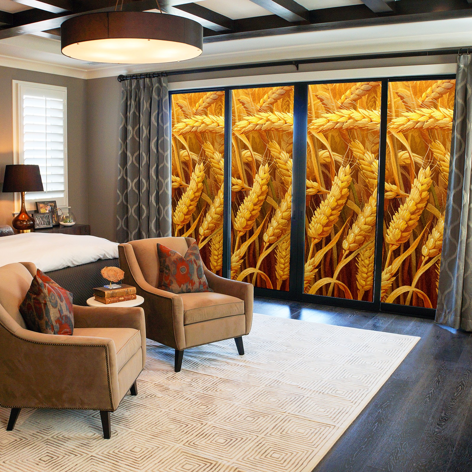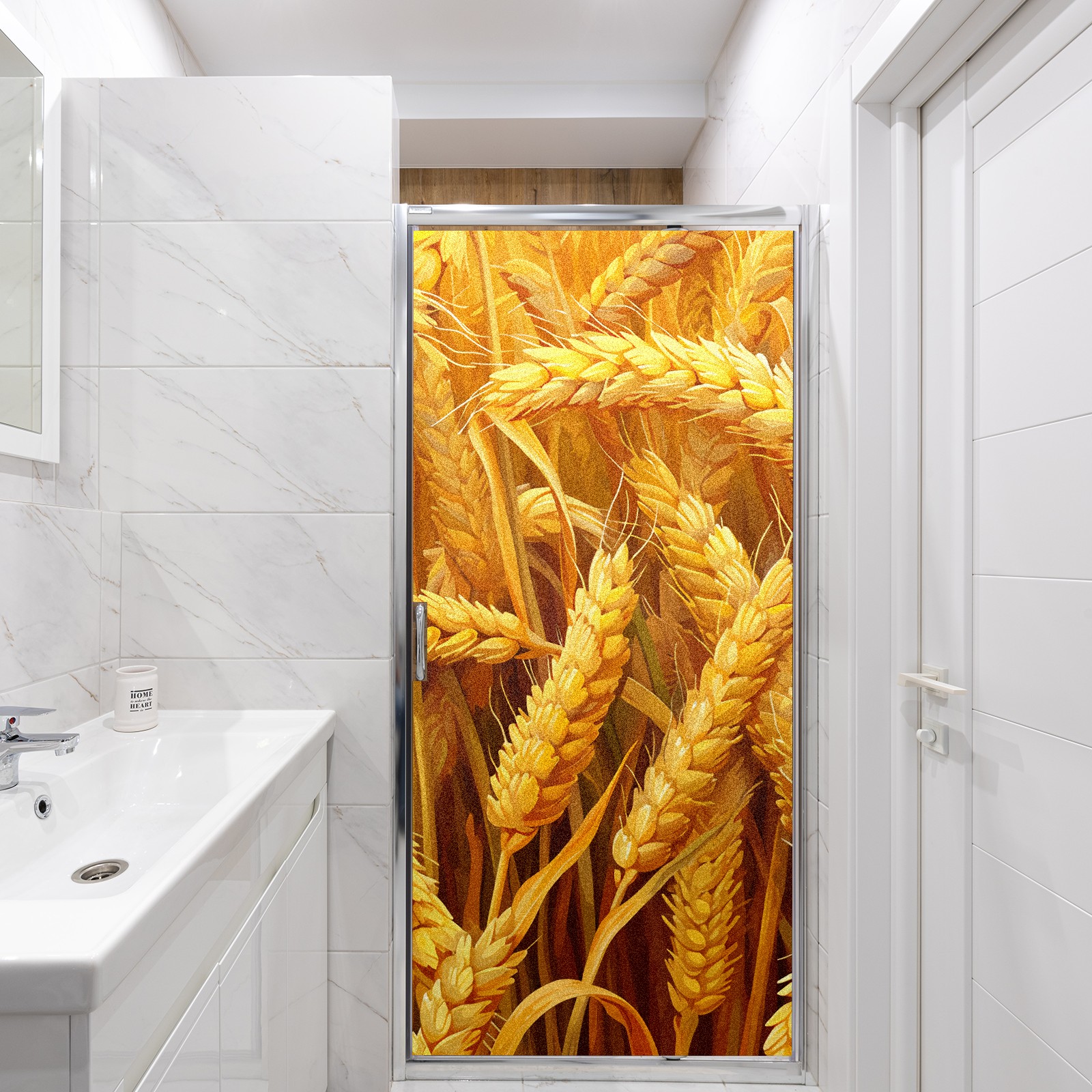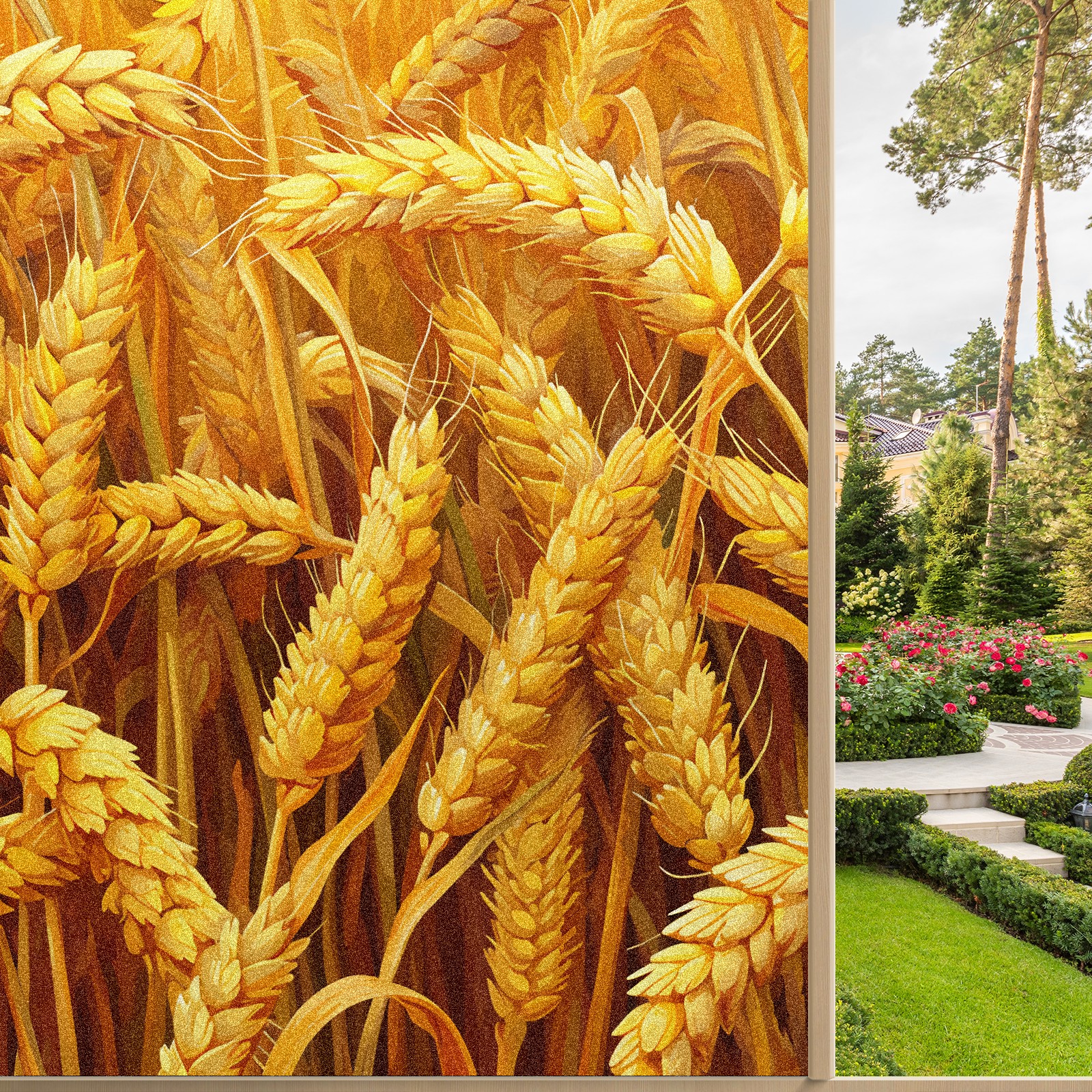 MSINMKOK Window Privacy Film Autumn Wheat Decorative Frosted Glass Window Film for Glass Door Bathroom Window 17.7'' x 23.6'' Non-Adhesive Window Decals Stickers