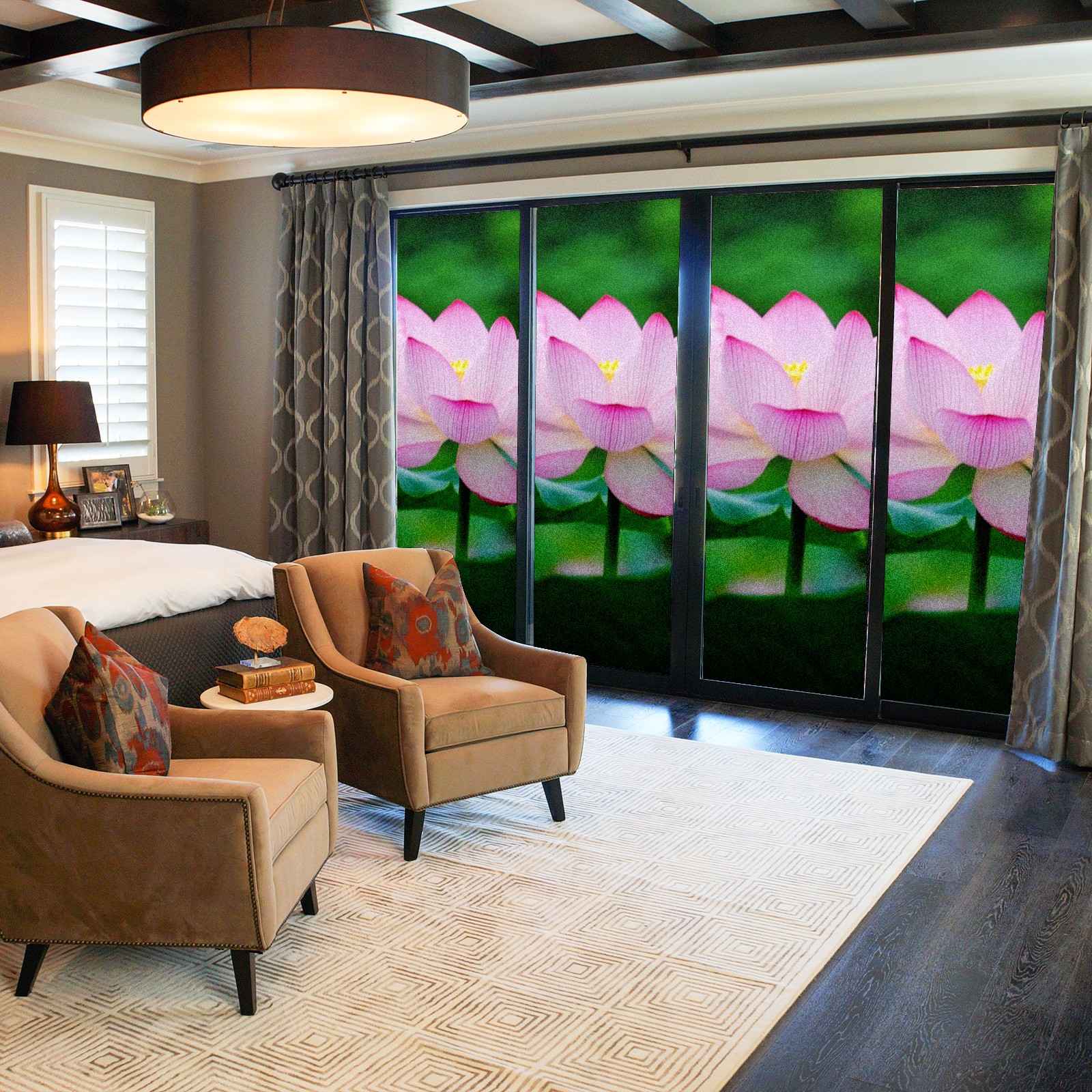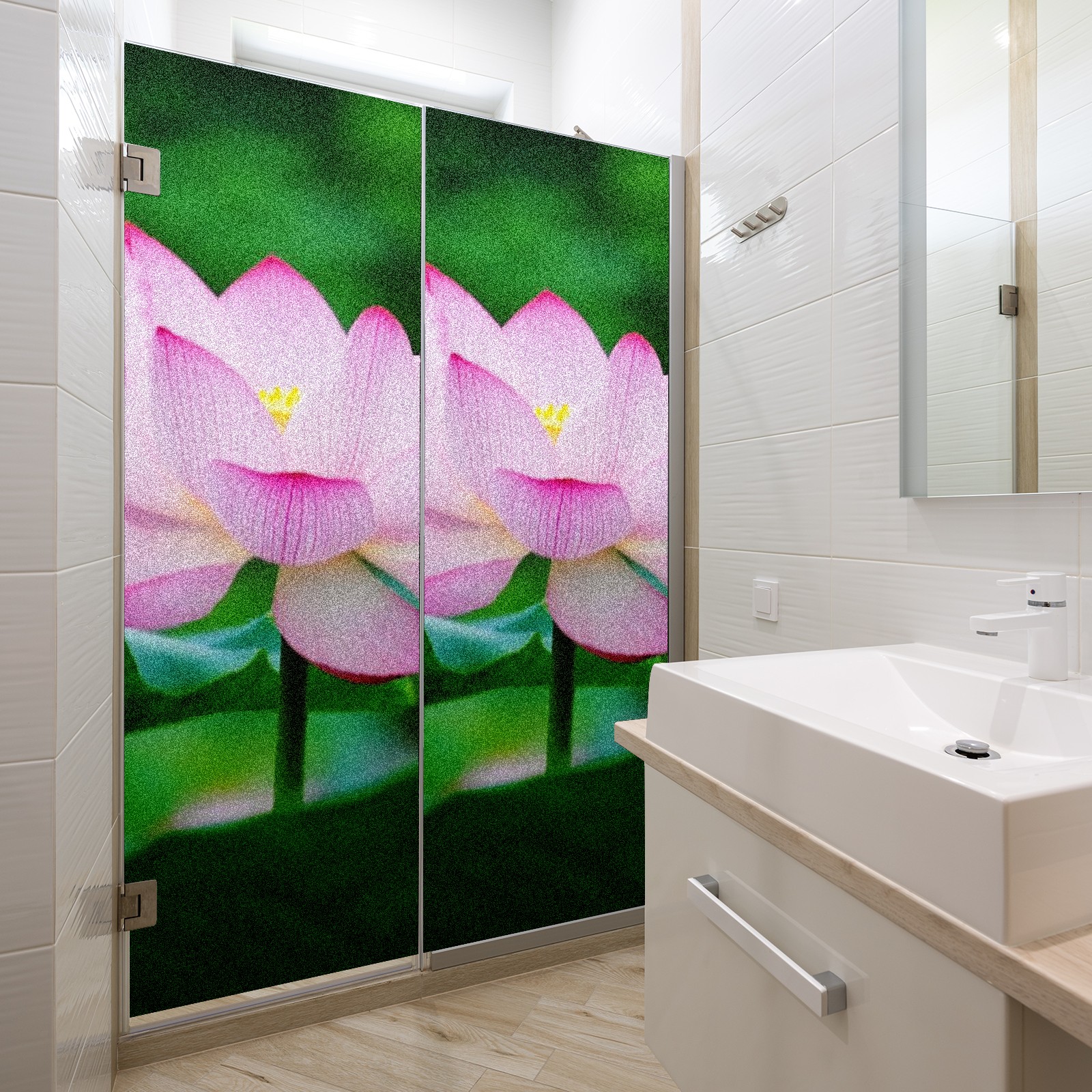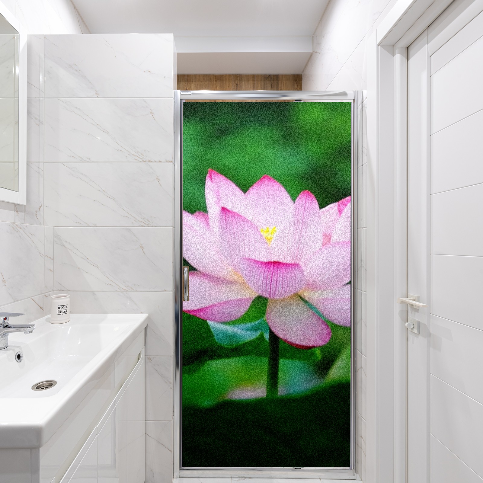 MSINMKOK Window Privacy Film Lotus Flower Decorative Frosted Glass Window Film for Glass Door Bathroom Window 17.7'' x 23.6'' Non-Adhesive Window Decals Stickers